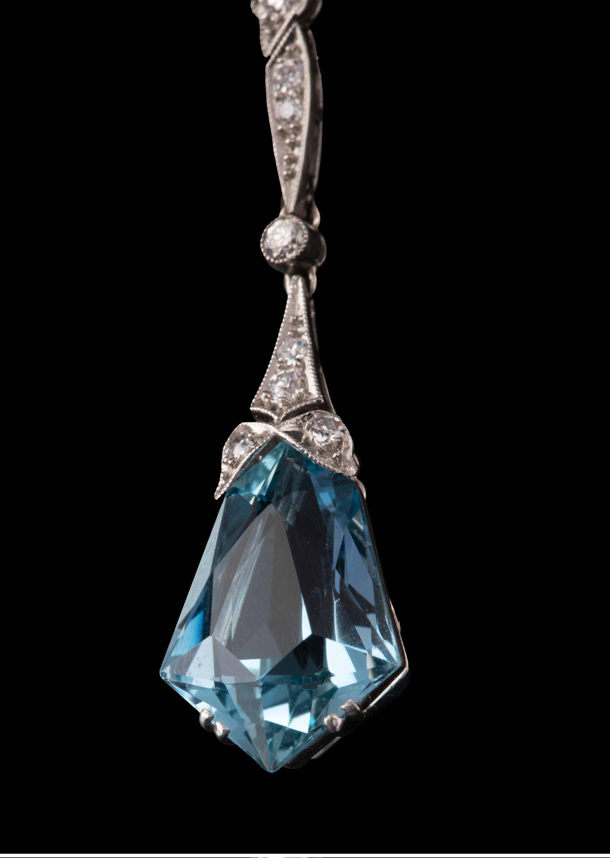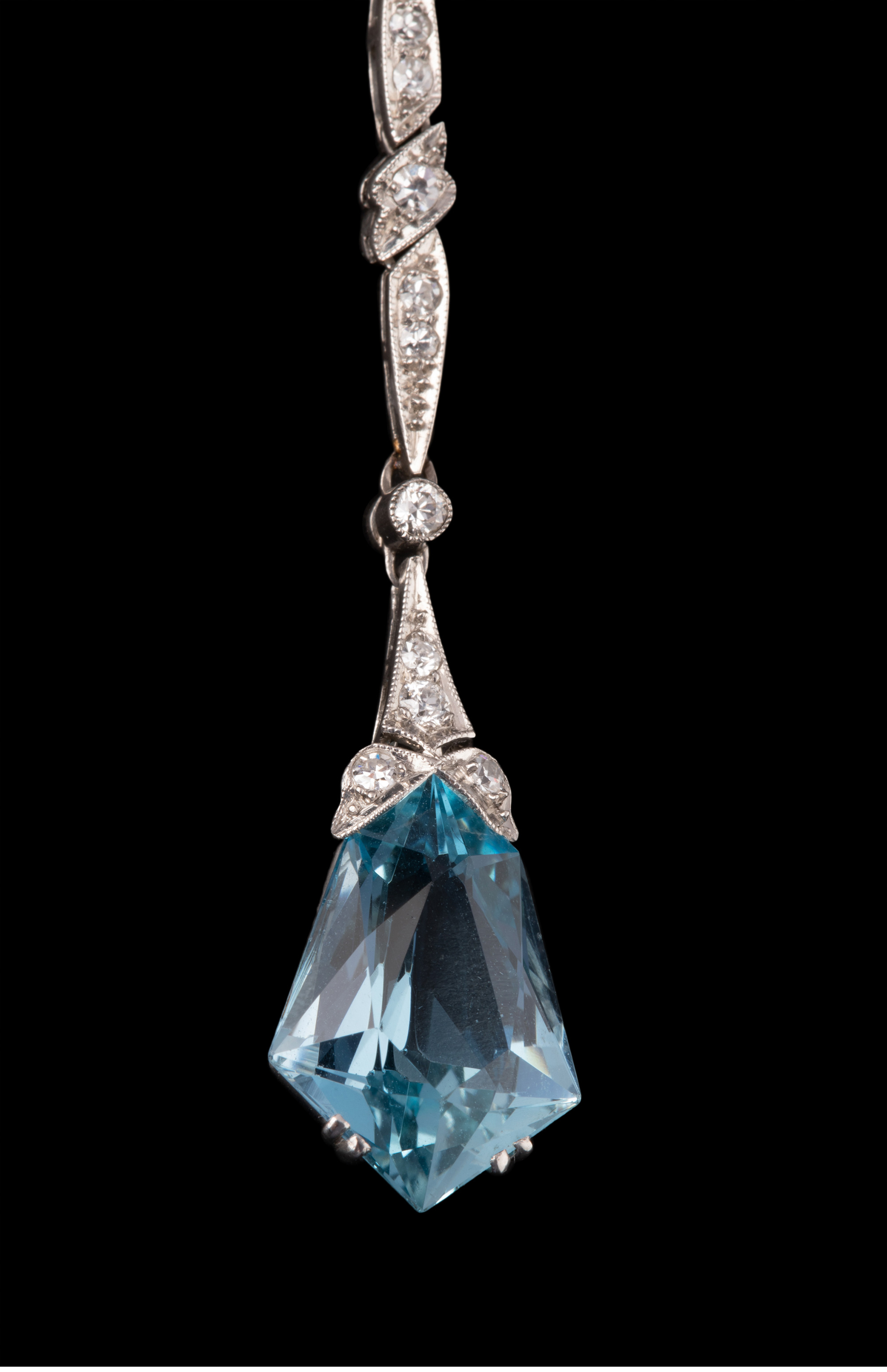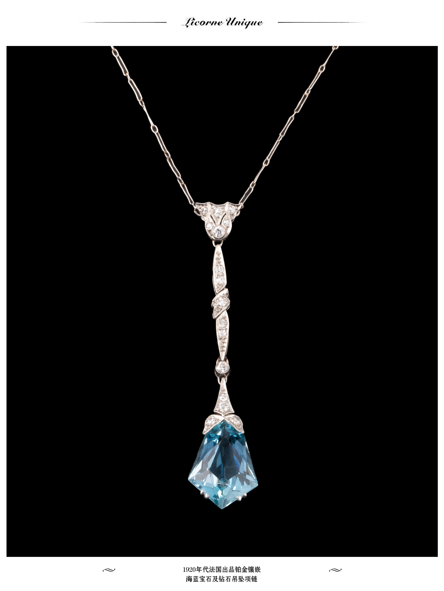 独角鹿西洋古董珠宝1920年代法国铂金镶嵌海蓝宝石及钻石吊坠