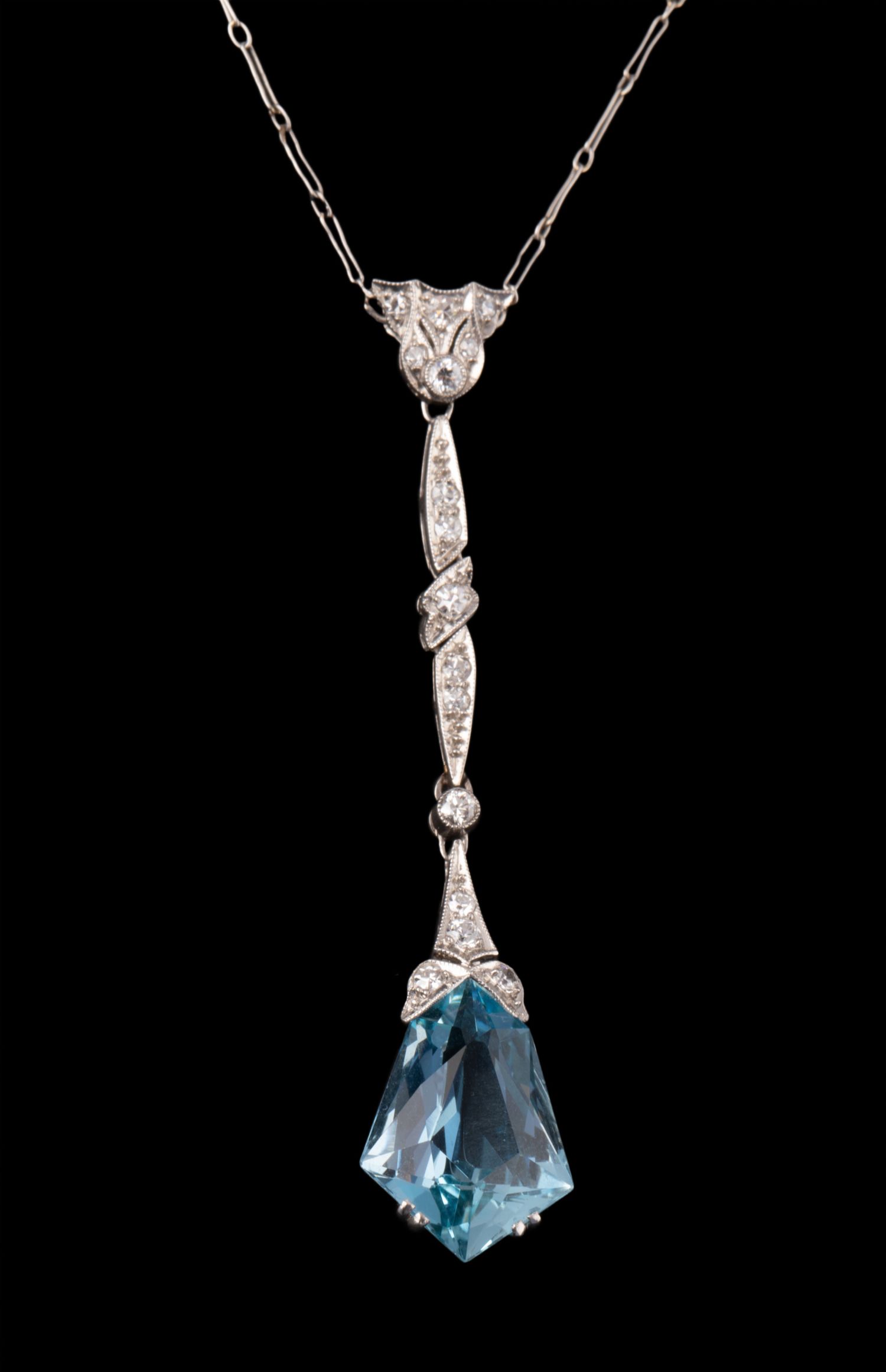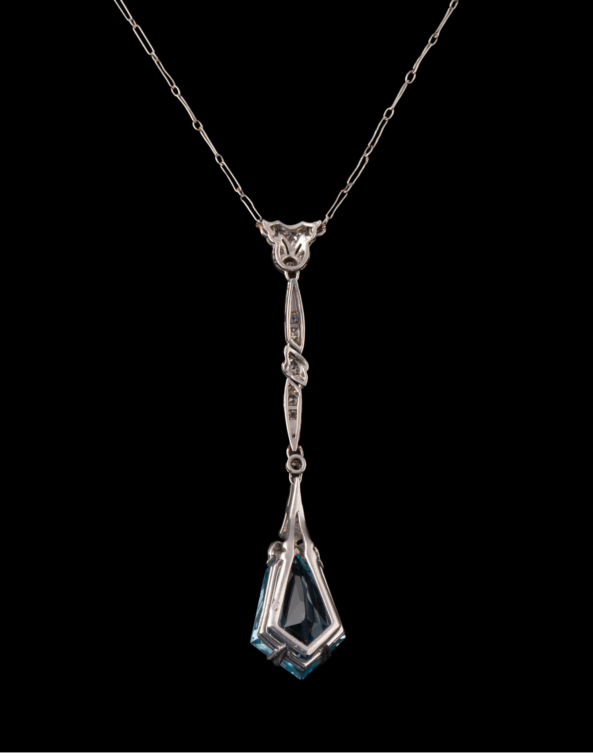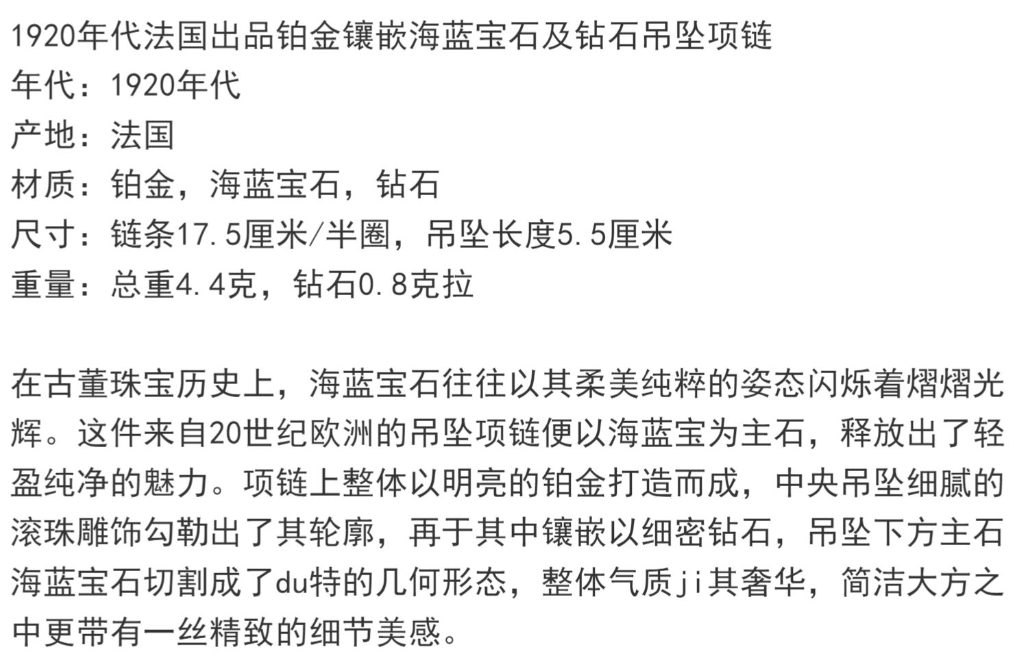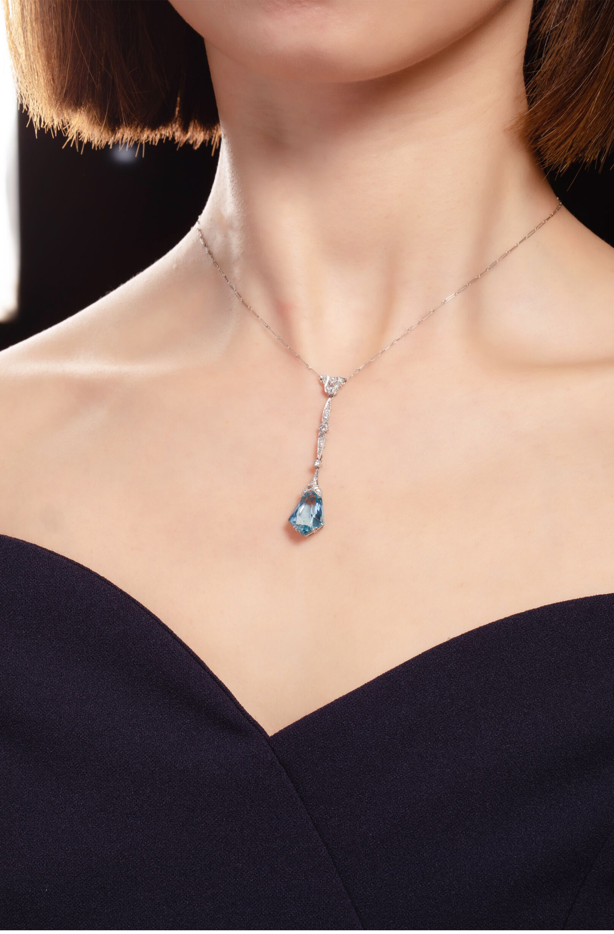 独角鹿西洋古董珠宝1920年代法国铂金镶嵌海蓝宝石及钻石吊坠