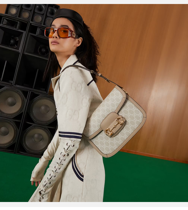 GUCCI 古驰 女士 GG Supreme 帆布 马衔扣1955系列小号手袋单肩包 混色 602204 UULBG 9683