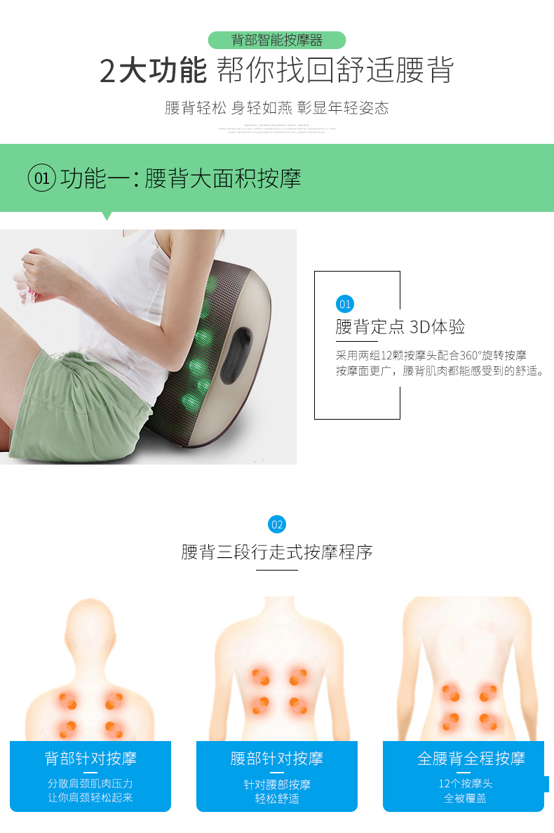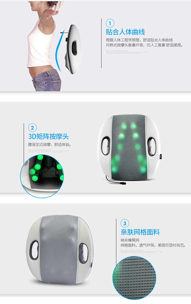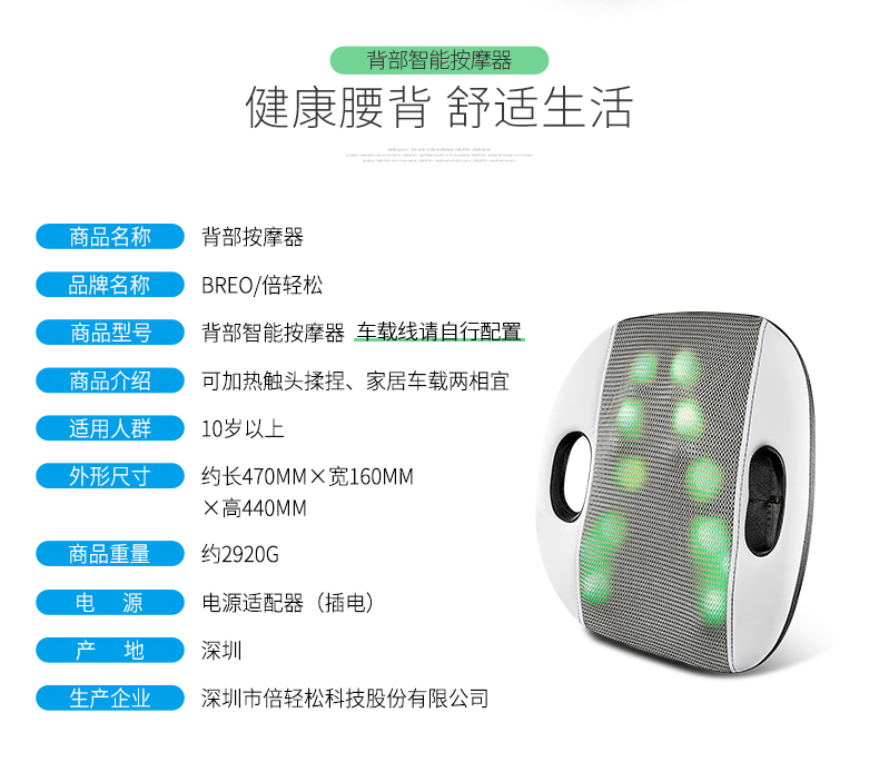 倍轻松(breo)腰部按摩器BM-312按摩垫靠垫 背部按摩器按摩仪 揉捏热敷 新年礼物