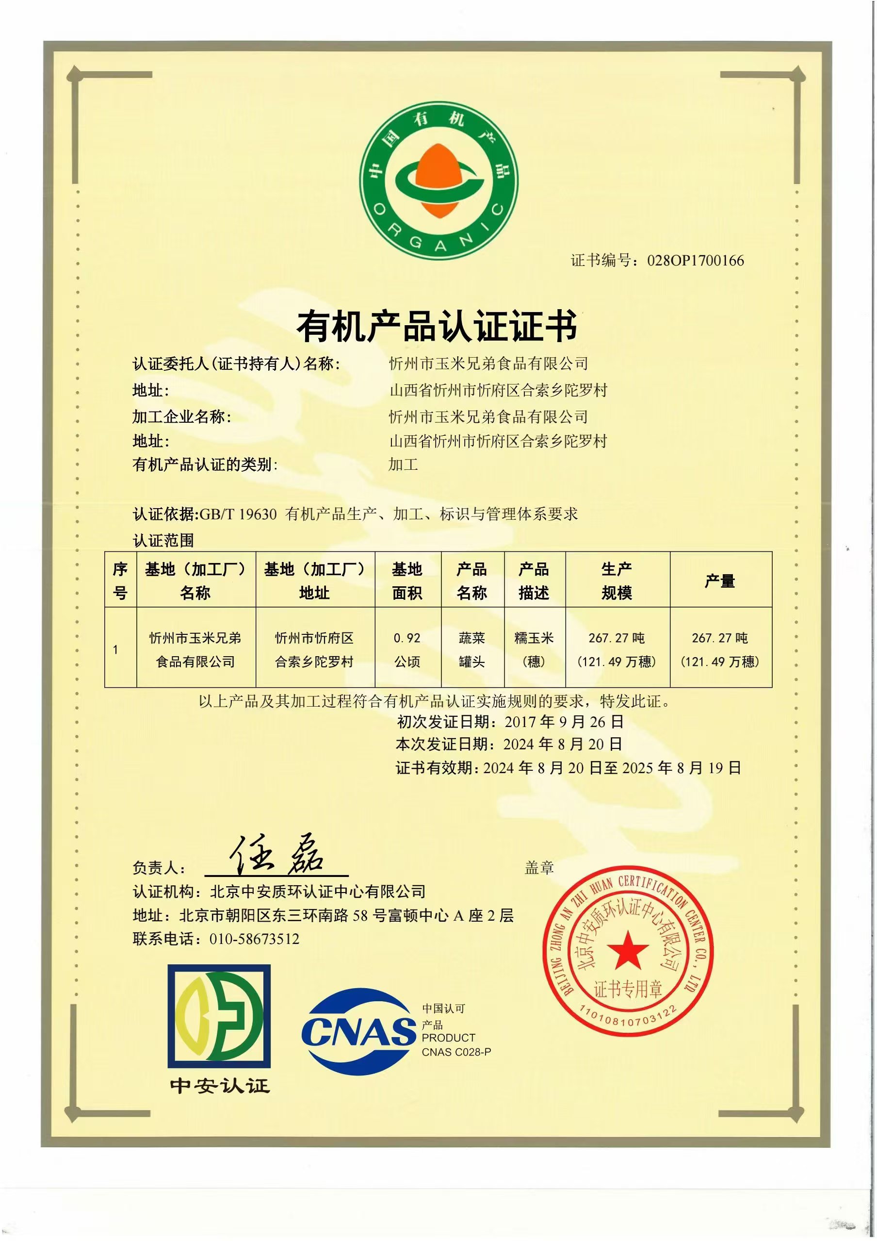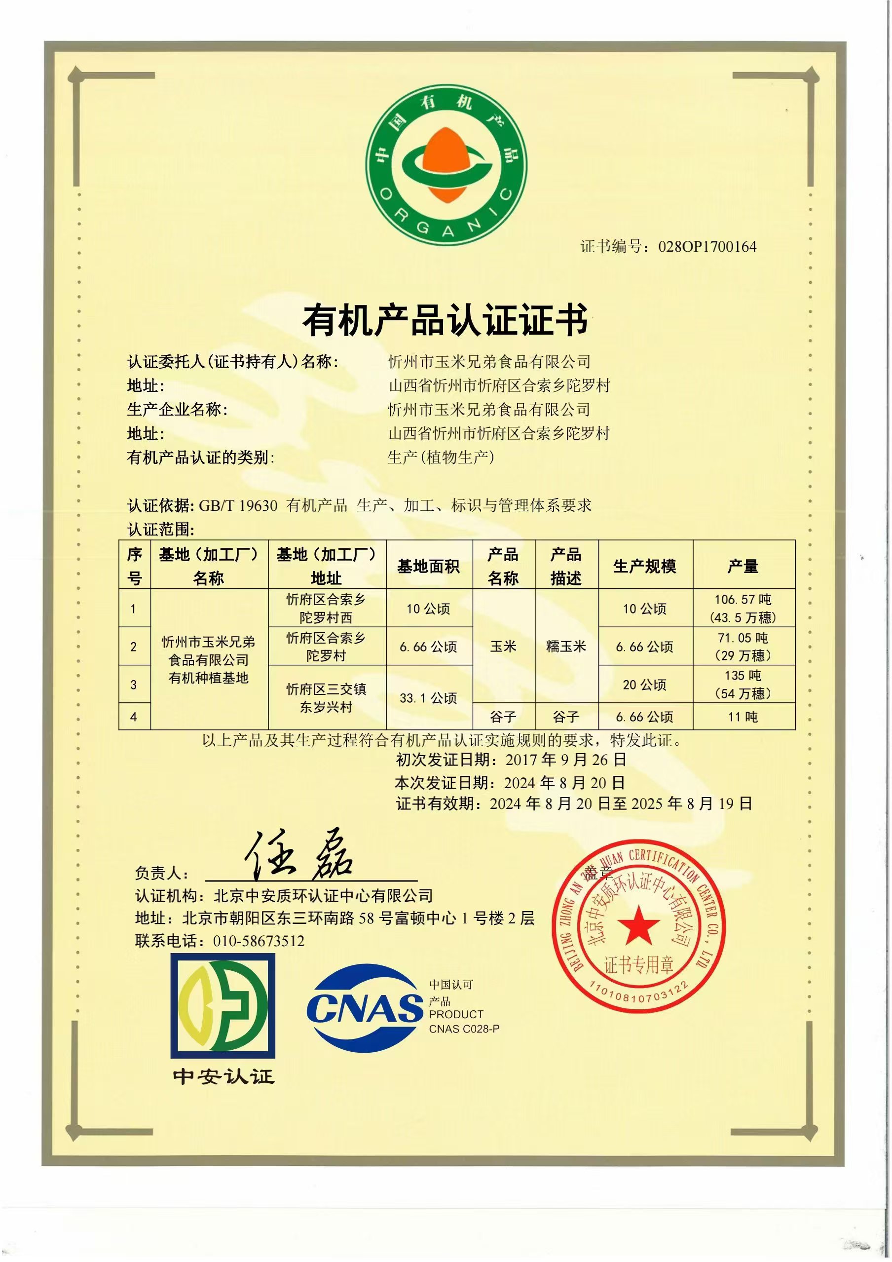 下面是有机种植+有加工认证证书+检测报告