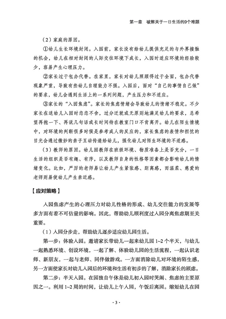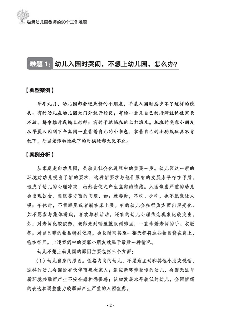 作者从“典型案例”“案例分析”“应对策略”三个方面呈现真实的问题情境,对每个难题进行深入的剖析,探究难题产生的多重原因,结合学前教育的相关政策与文件,提出具有针对性的解决策略,为幼儿园教师提供一些科学的指导方法。