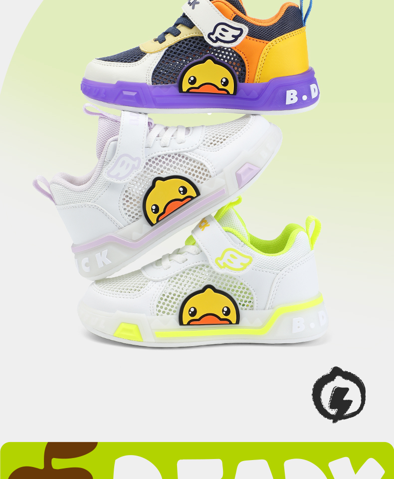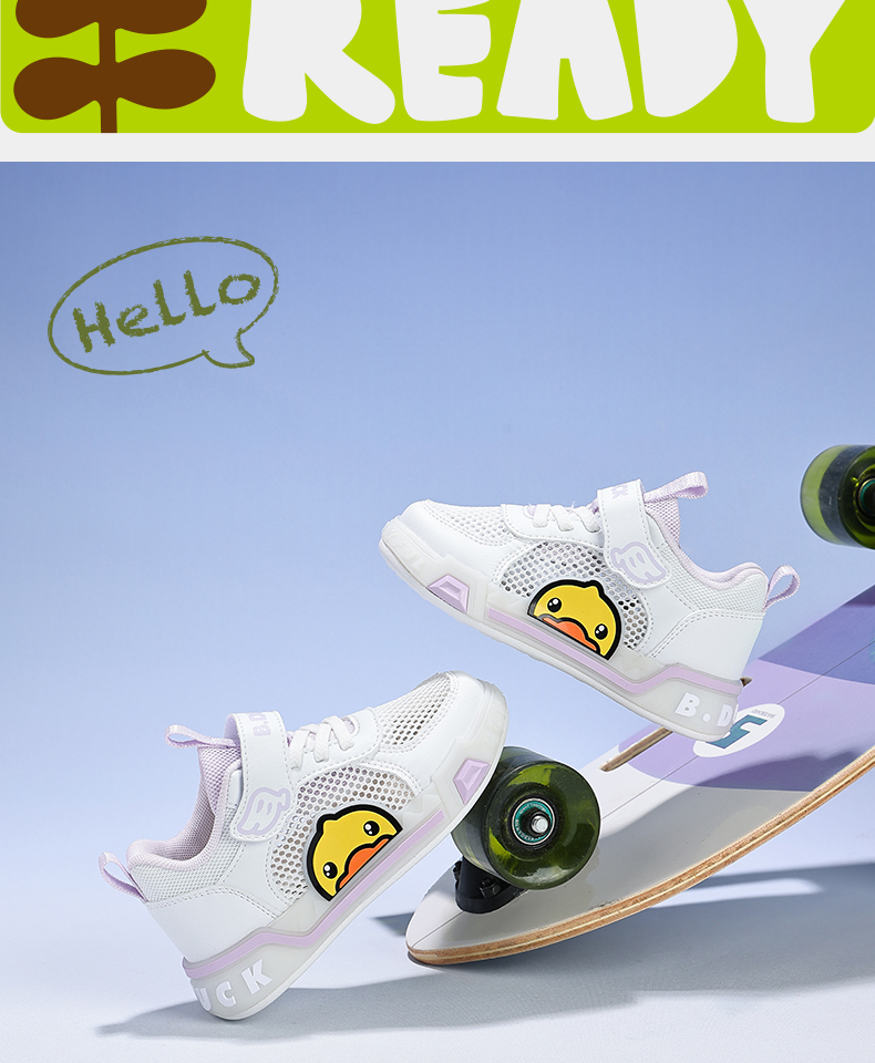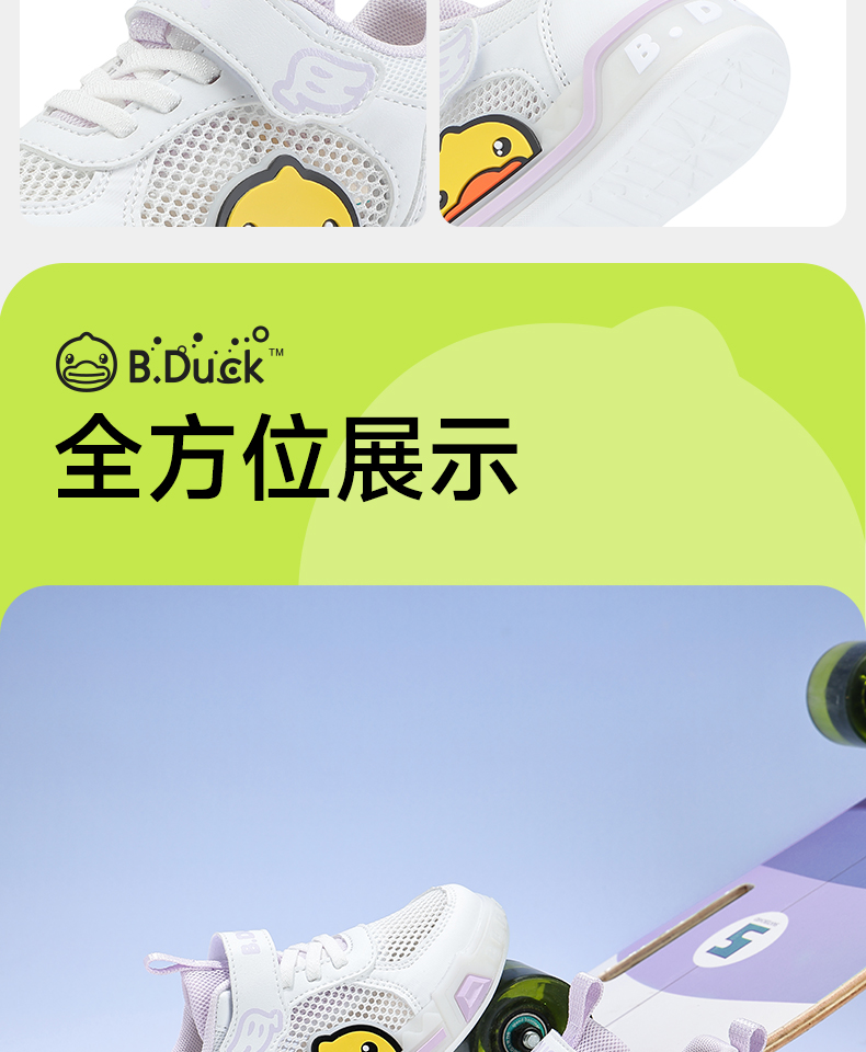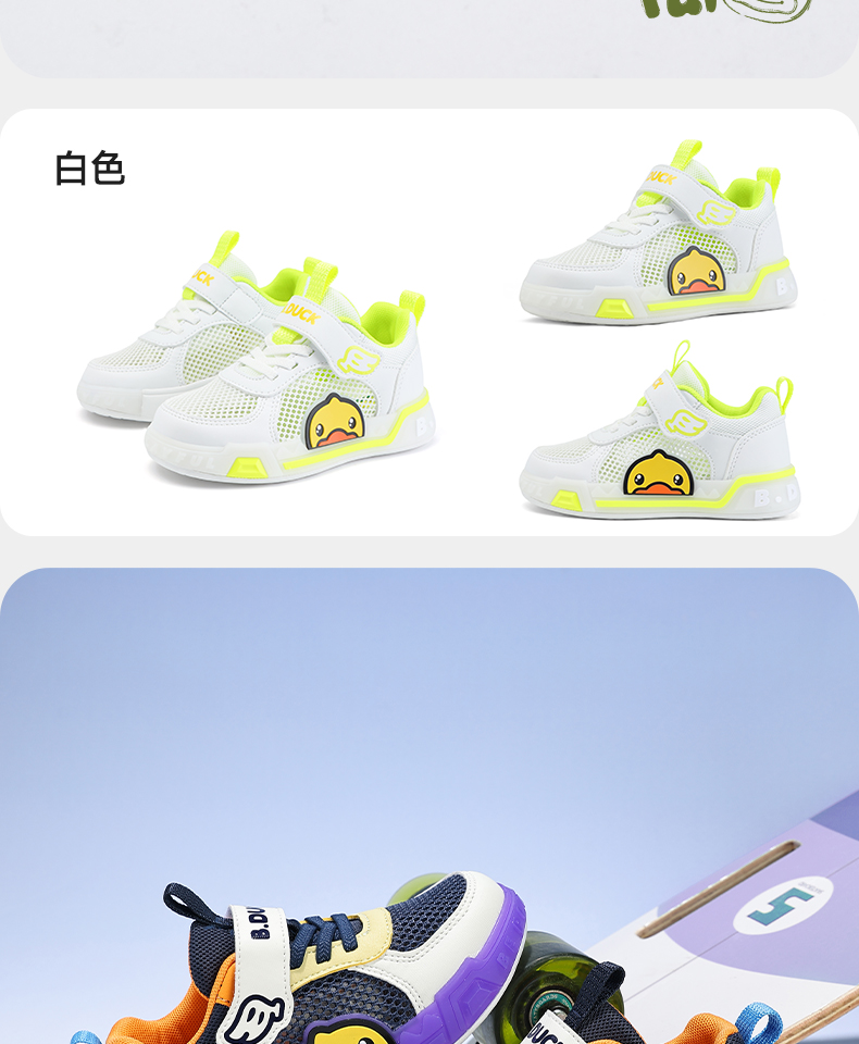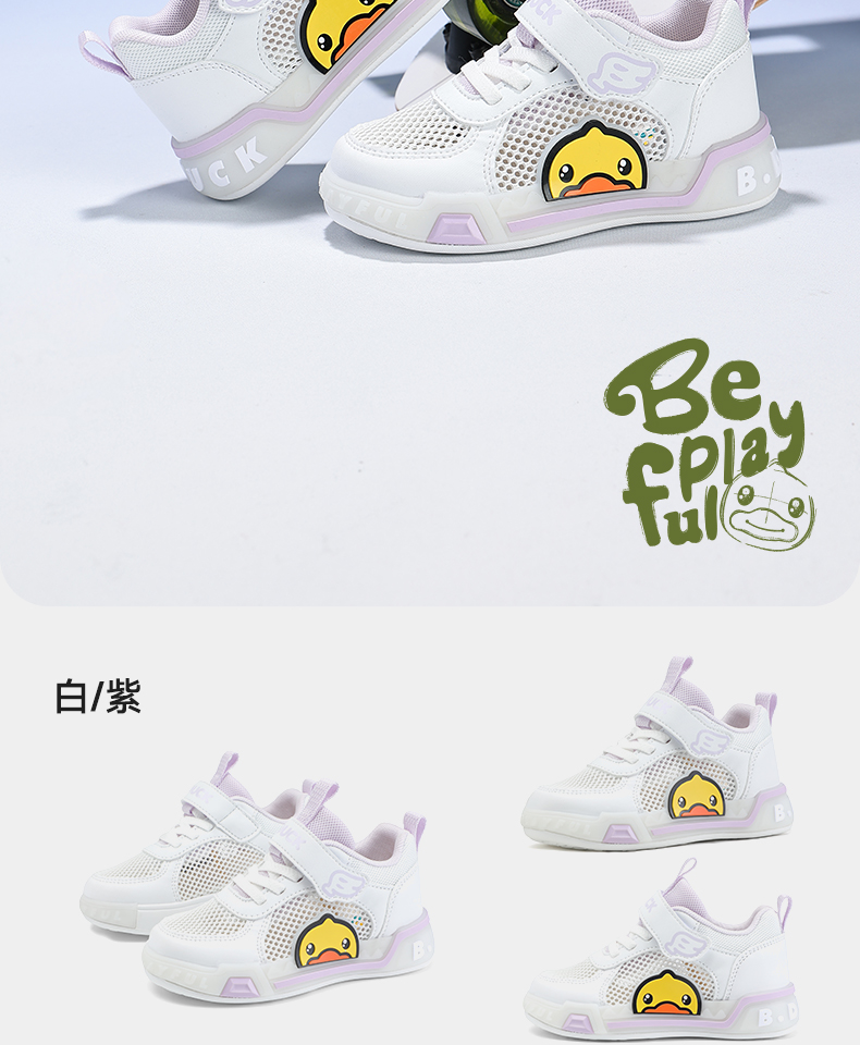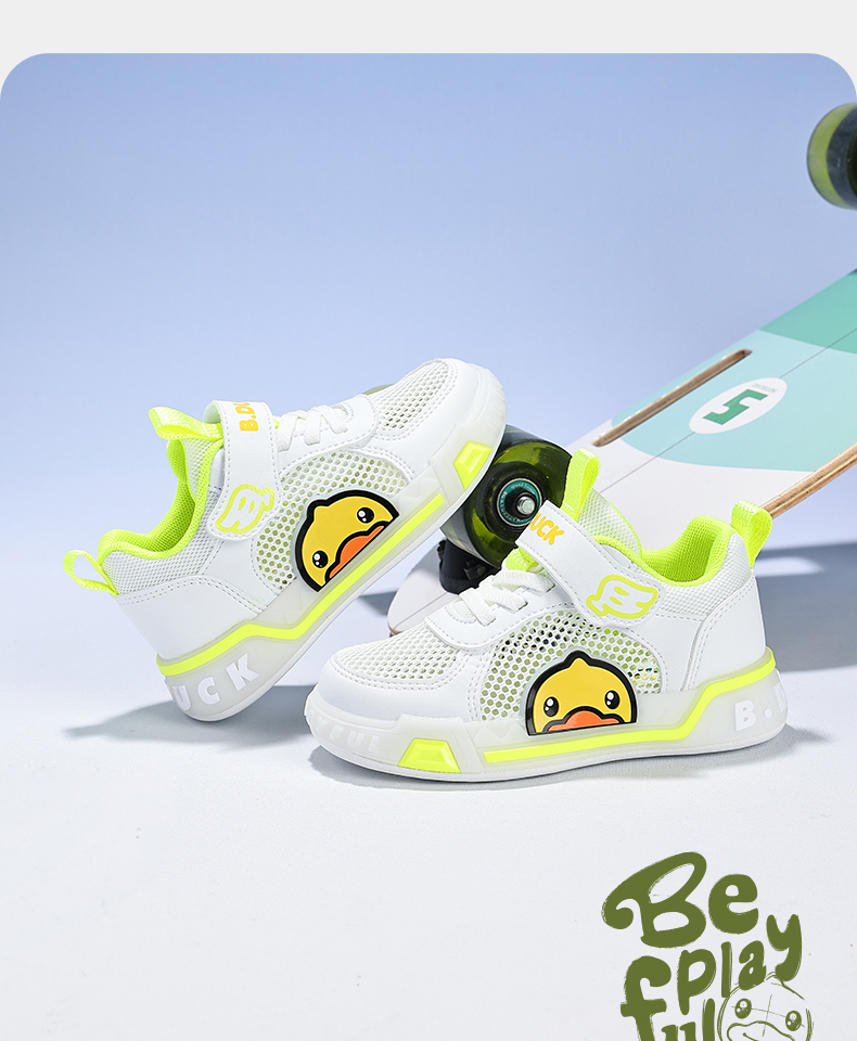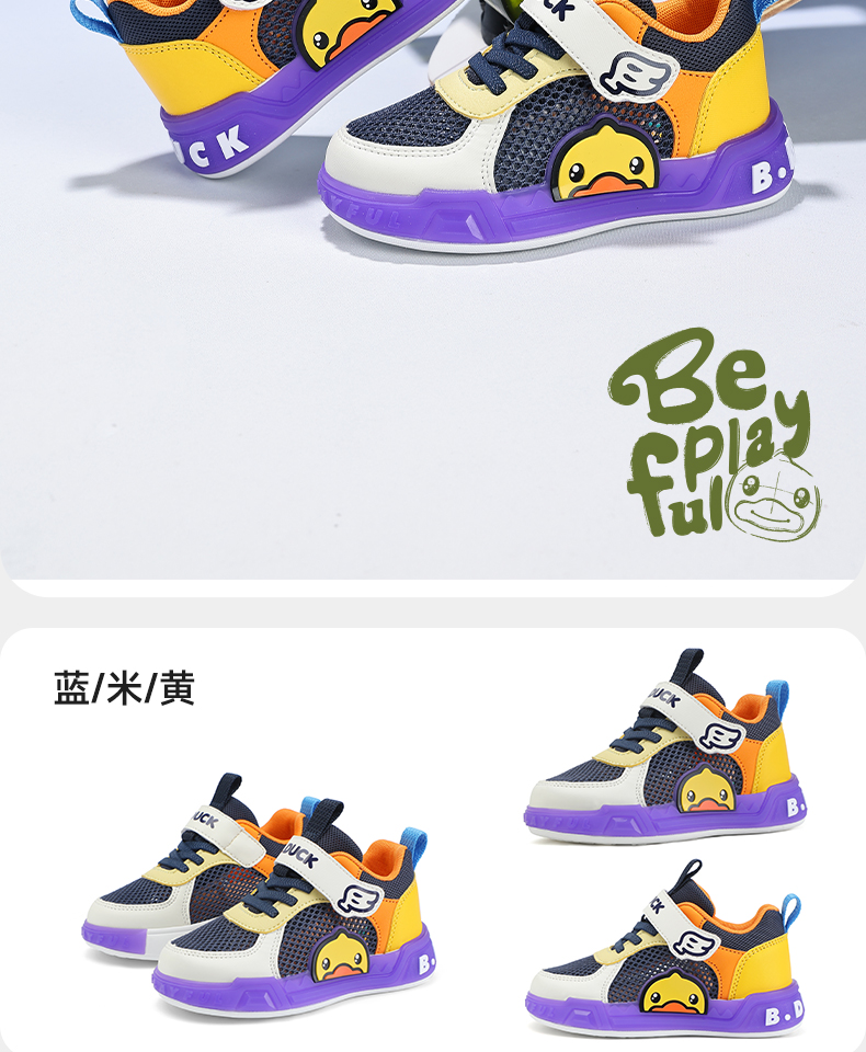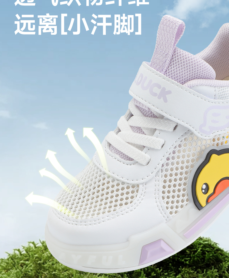 B.Duck小黄鸭女童板鞋网面透气夏季男童鞋学生低帮休闲鞋24-30 B1686915