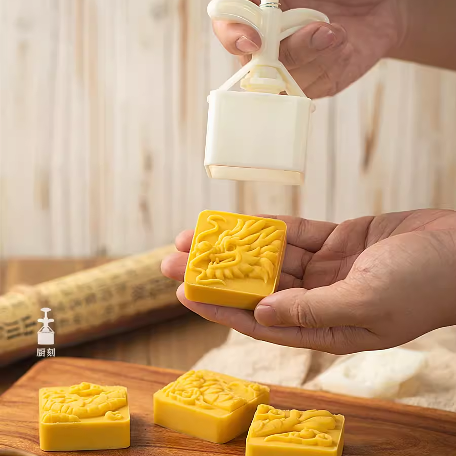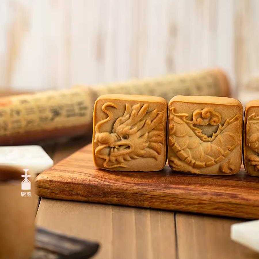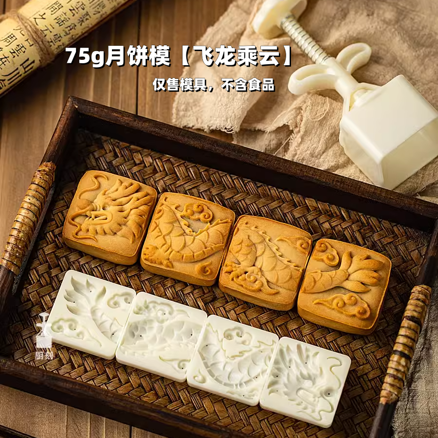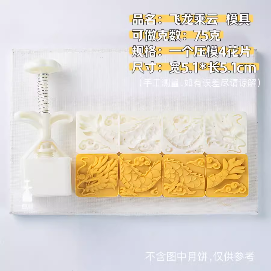 厨刻 手压式月饼模具 75g【飞龙乘云】 1模4花片中国龙 国风月饼模绿豆糕模具