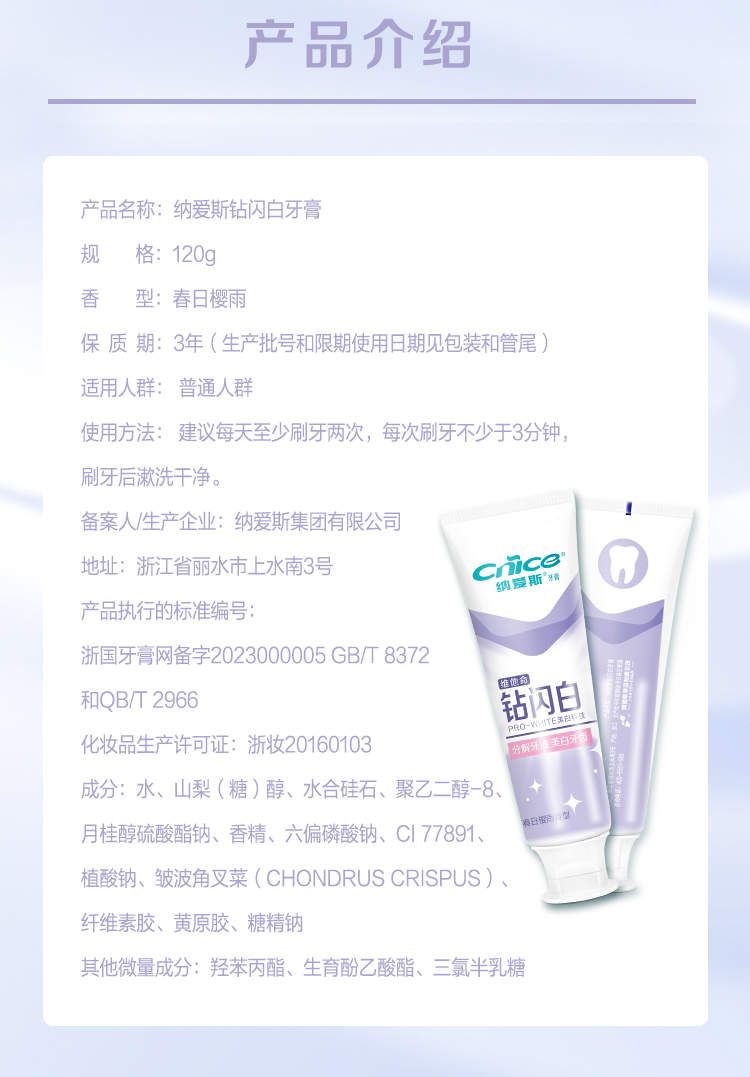 纳爱斯钻闪白牙膏120g+纳爱斯去渍快白牙膏120g/赠牙刷2支