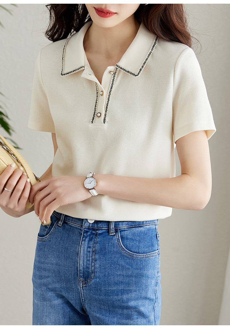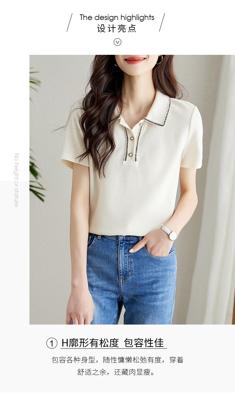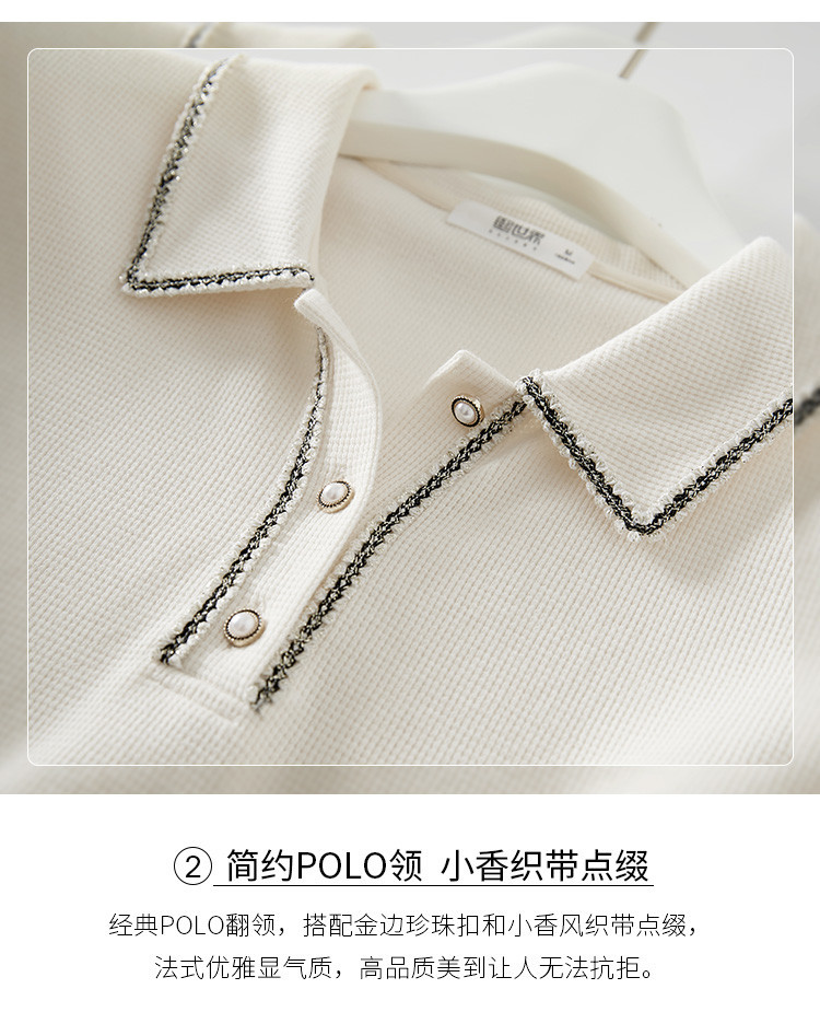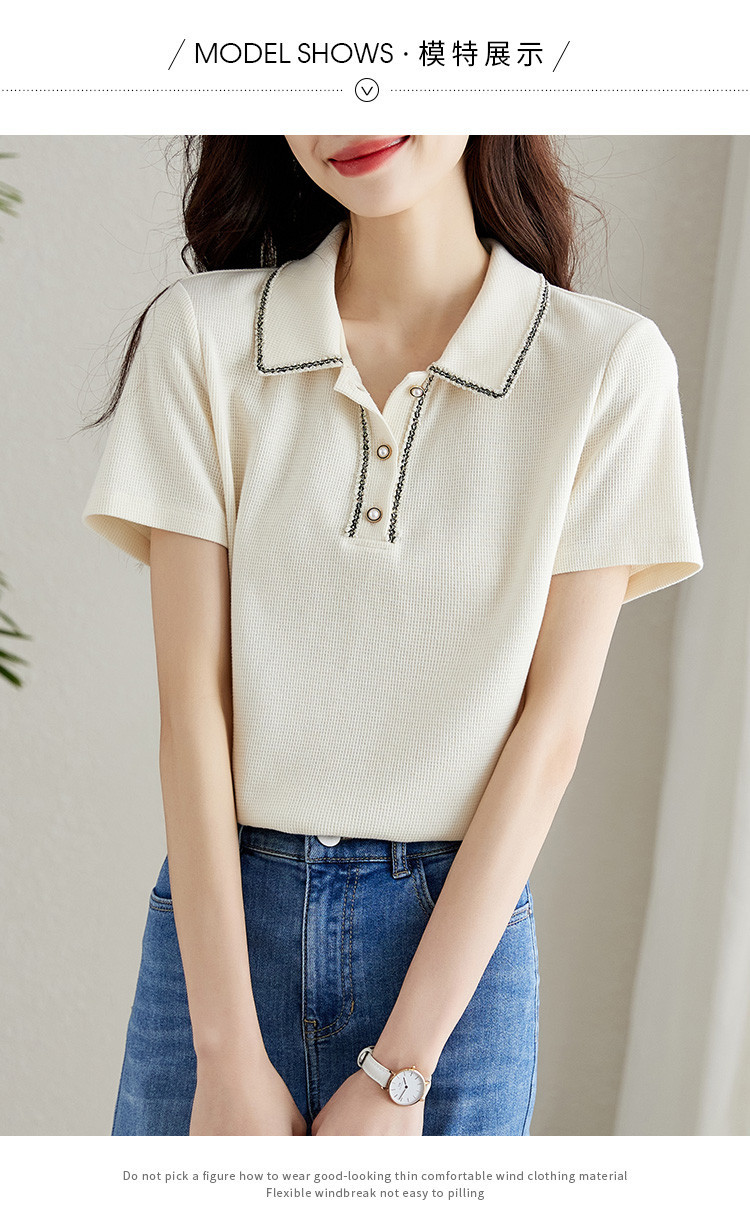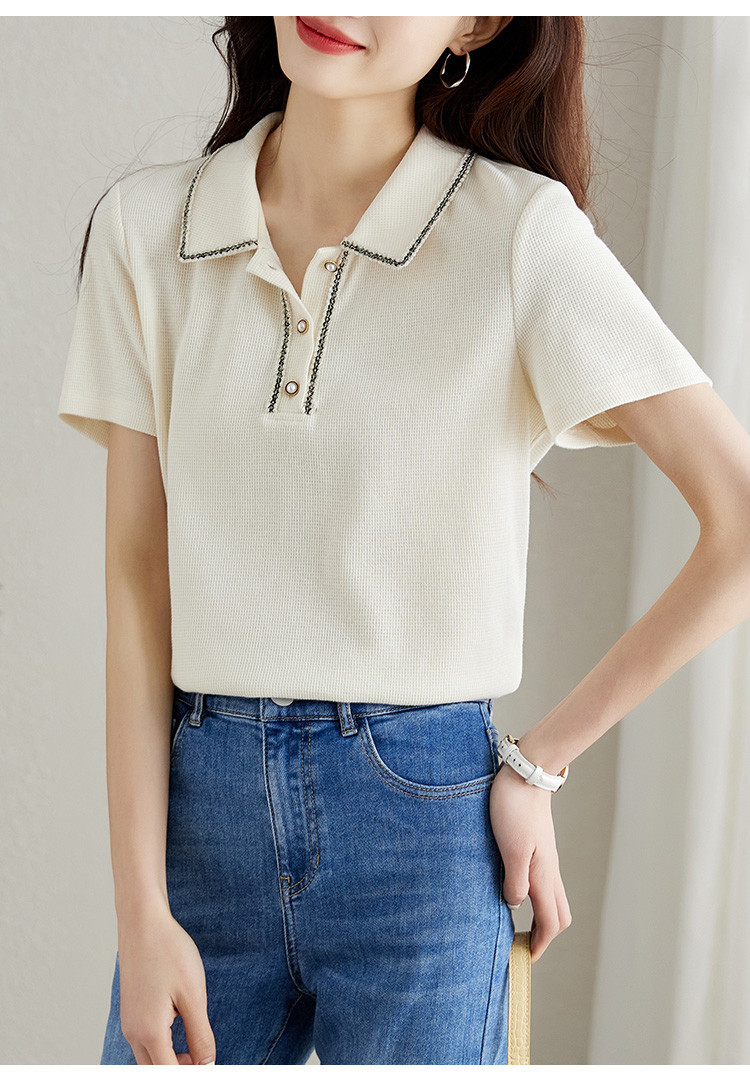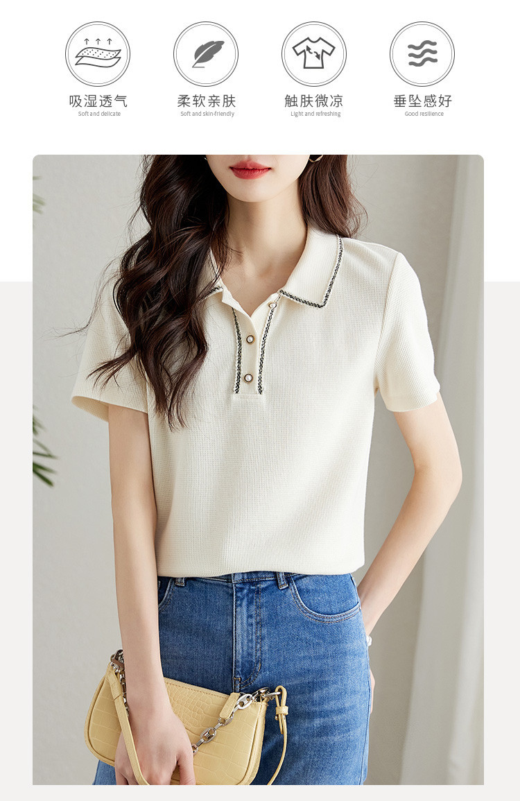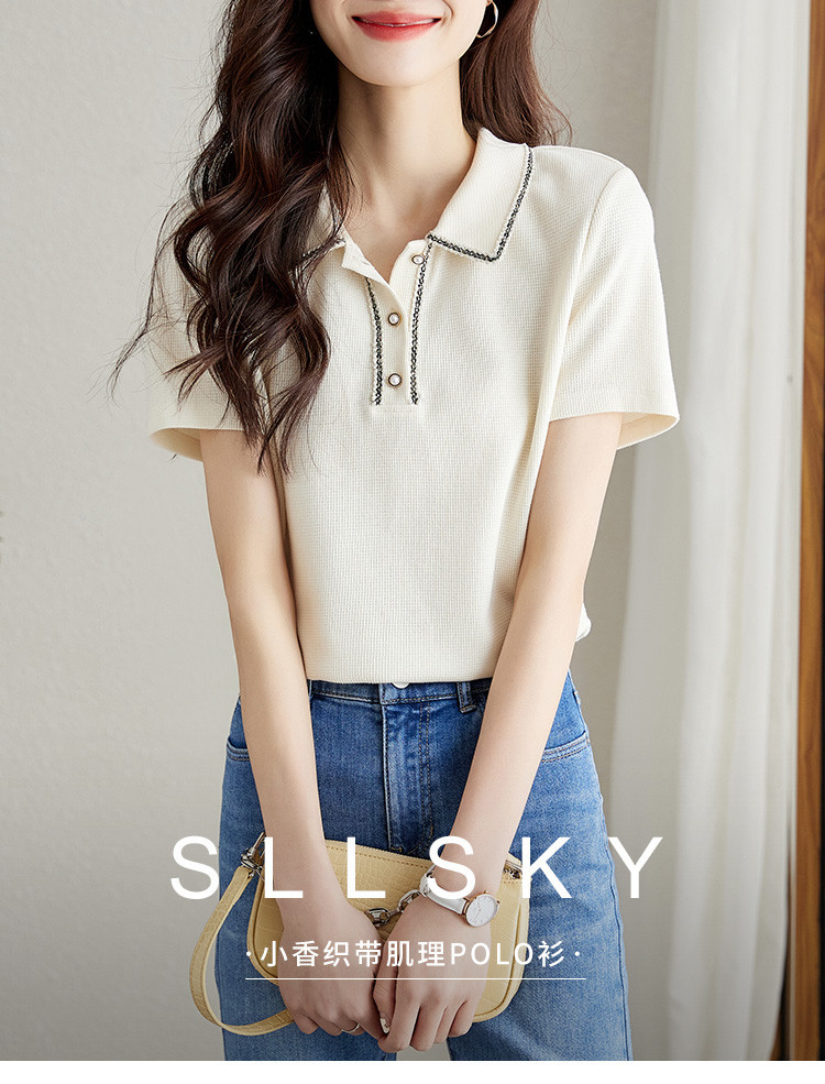 【专属特价】熙世界文艺风肌理感T恤休闲织带POLO衫2025年夏季款短袖上衣女t