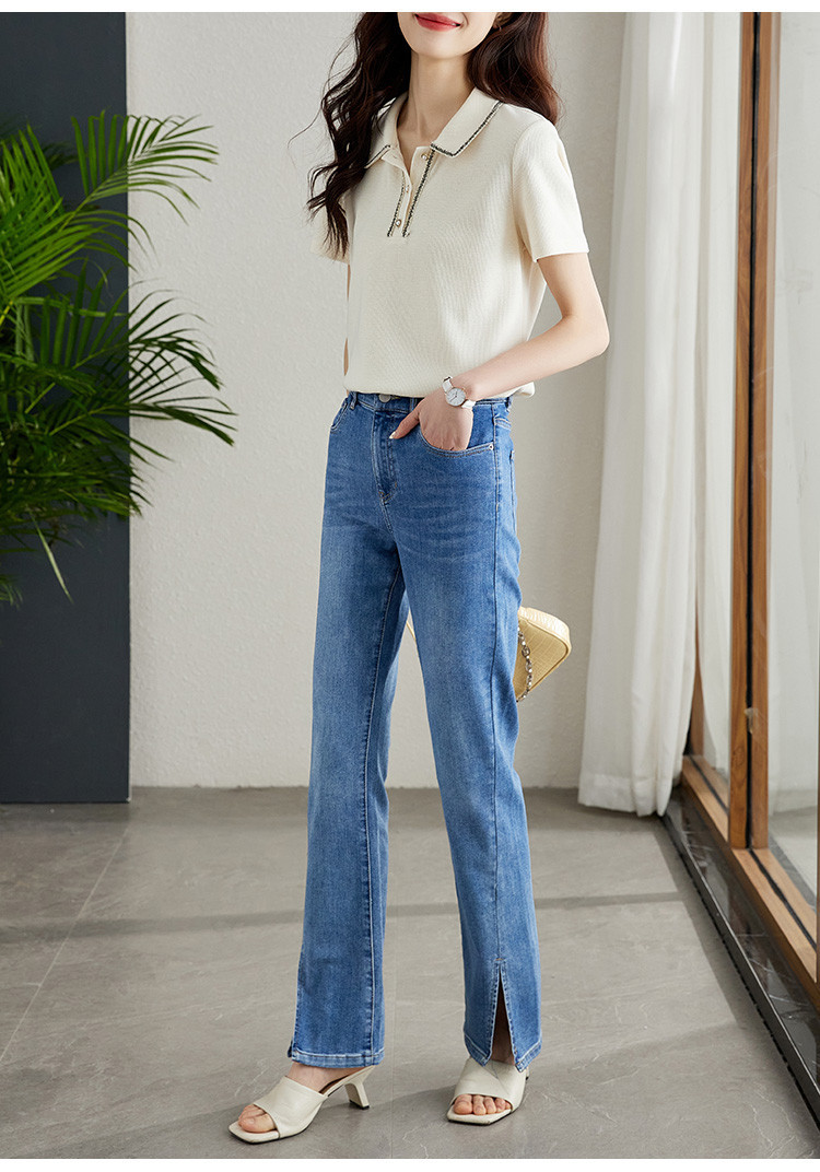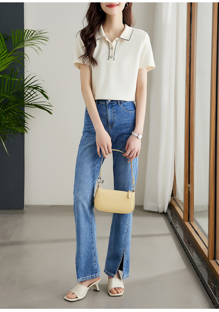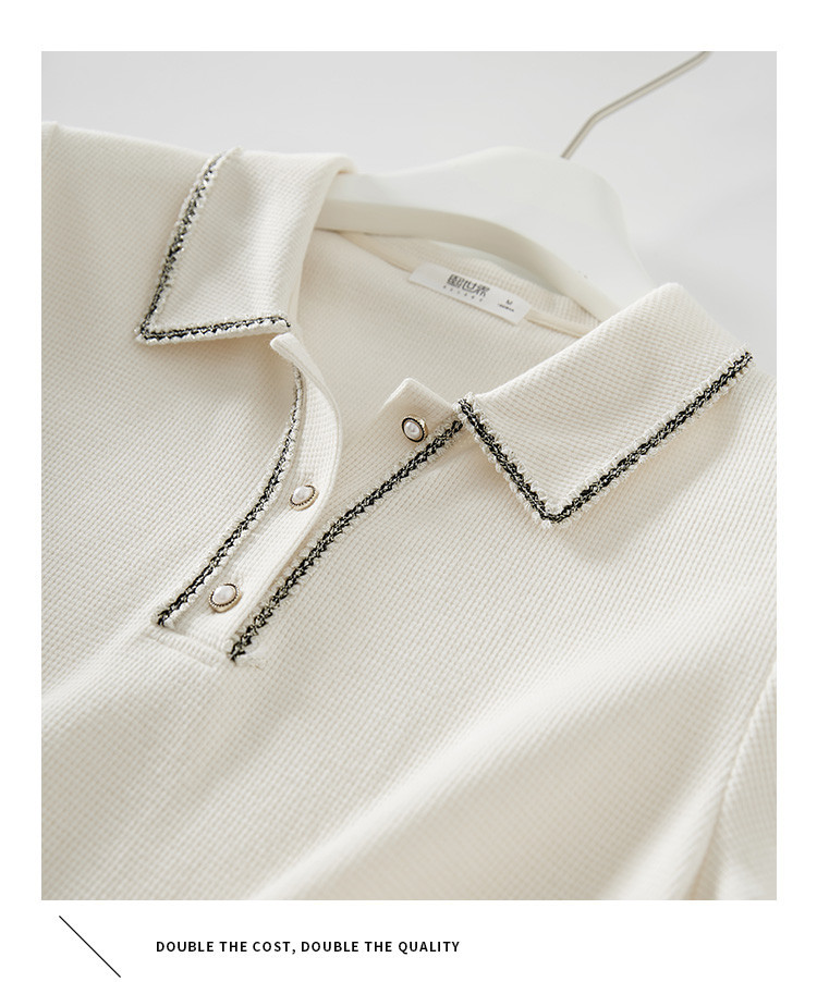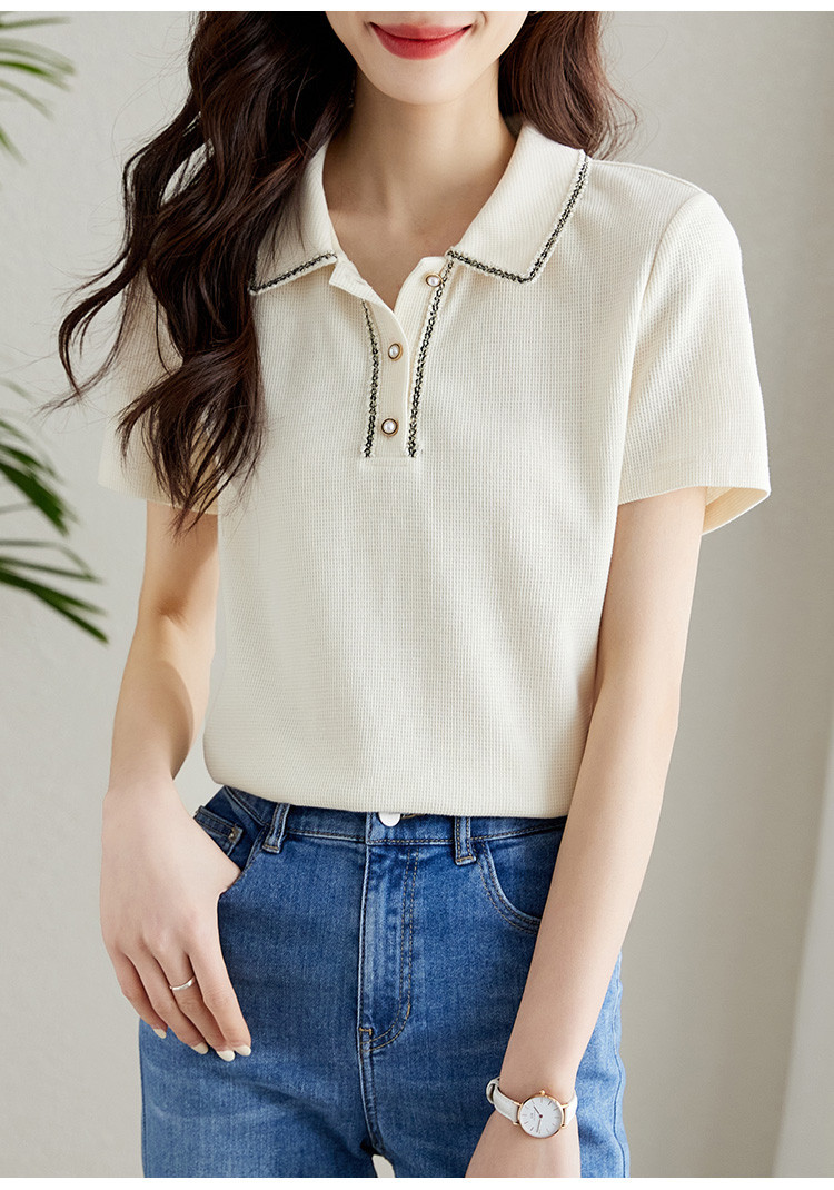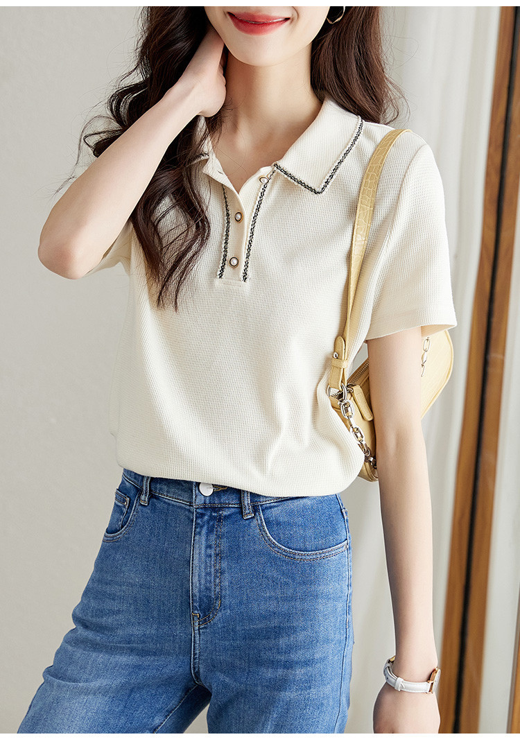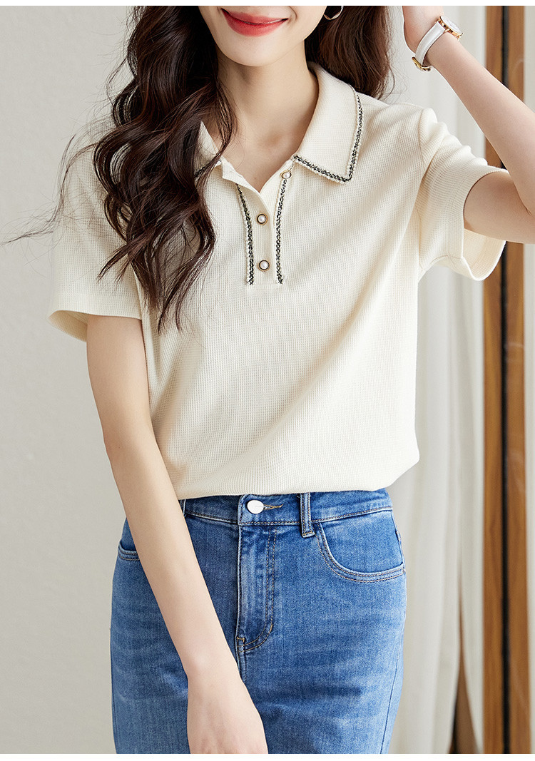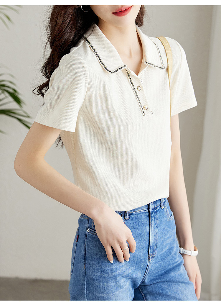 【专属特价】熙世界文艺风肌理感T恤休闲织带POLO衫2025年夏季款短袖上衣女t