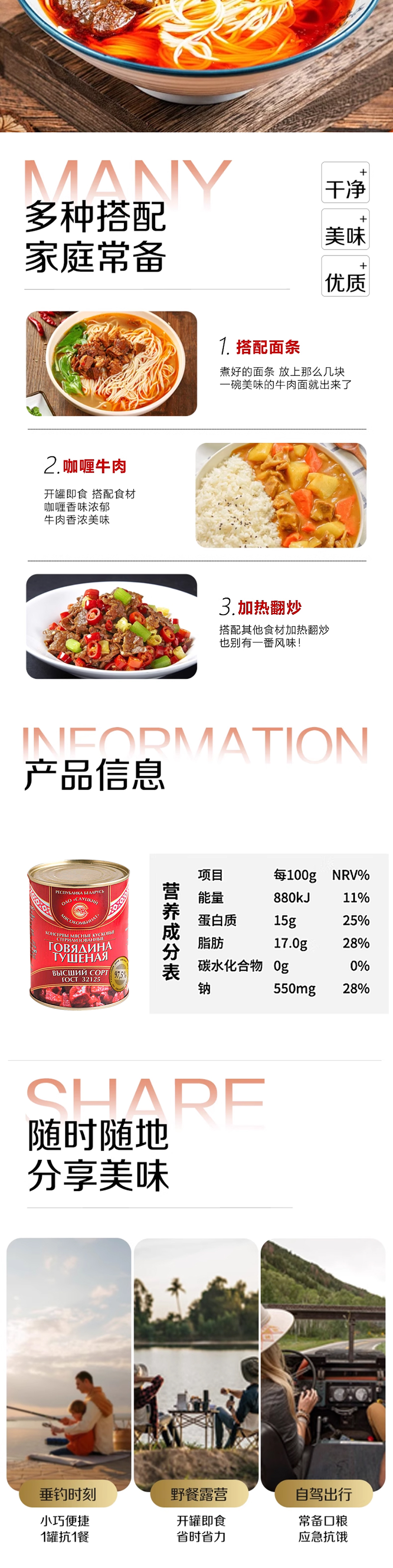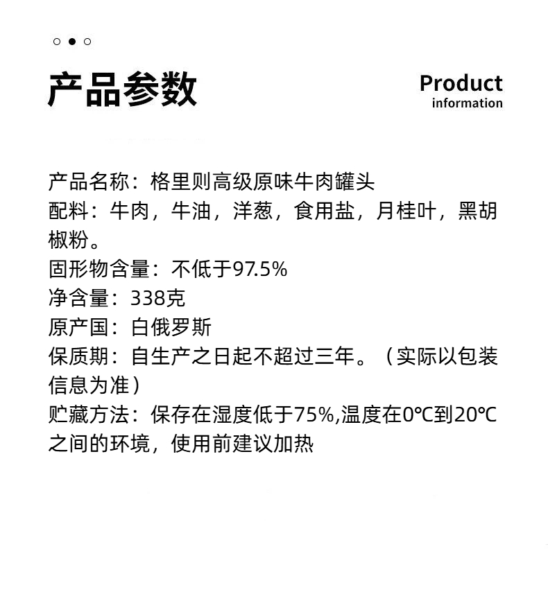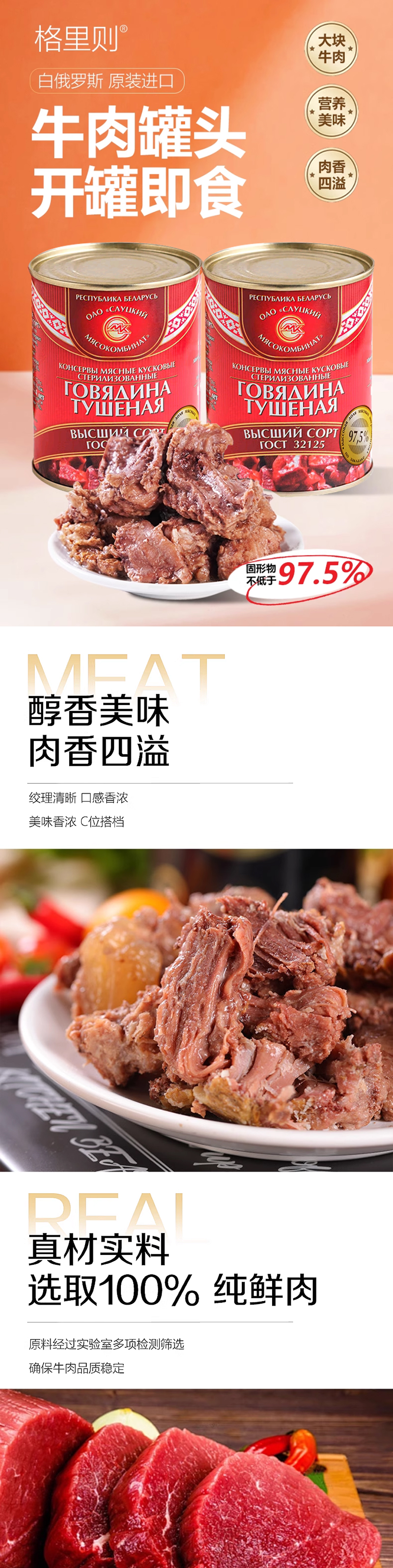 白俄罗斯进口格里则高级原味牛肉罐头338g