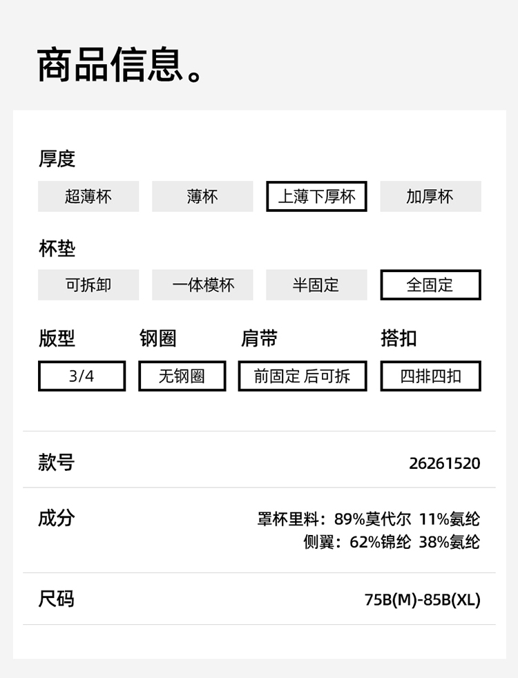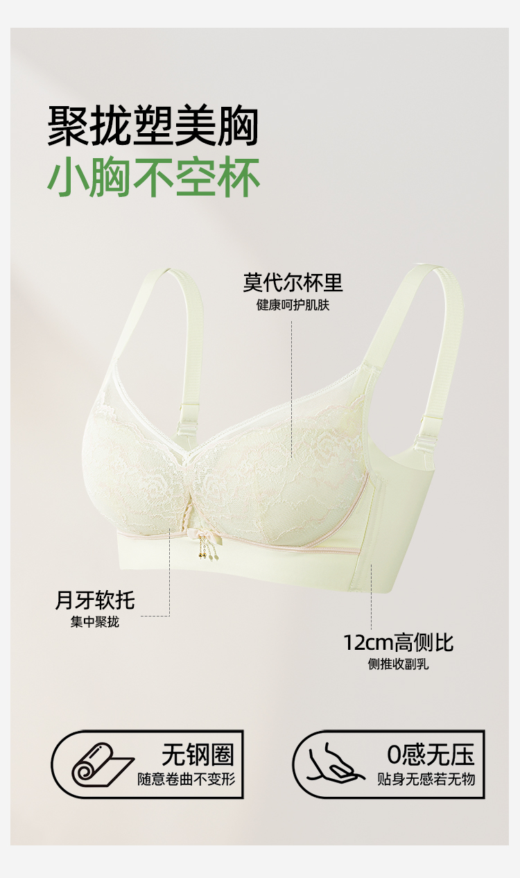 熳洁儿 小胸聚拢文胸中厚莫代尔养护杯蕾丝舒适无侧骨26261520