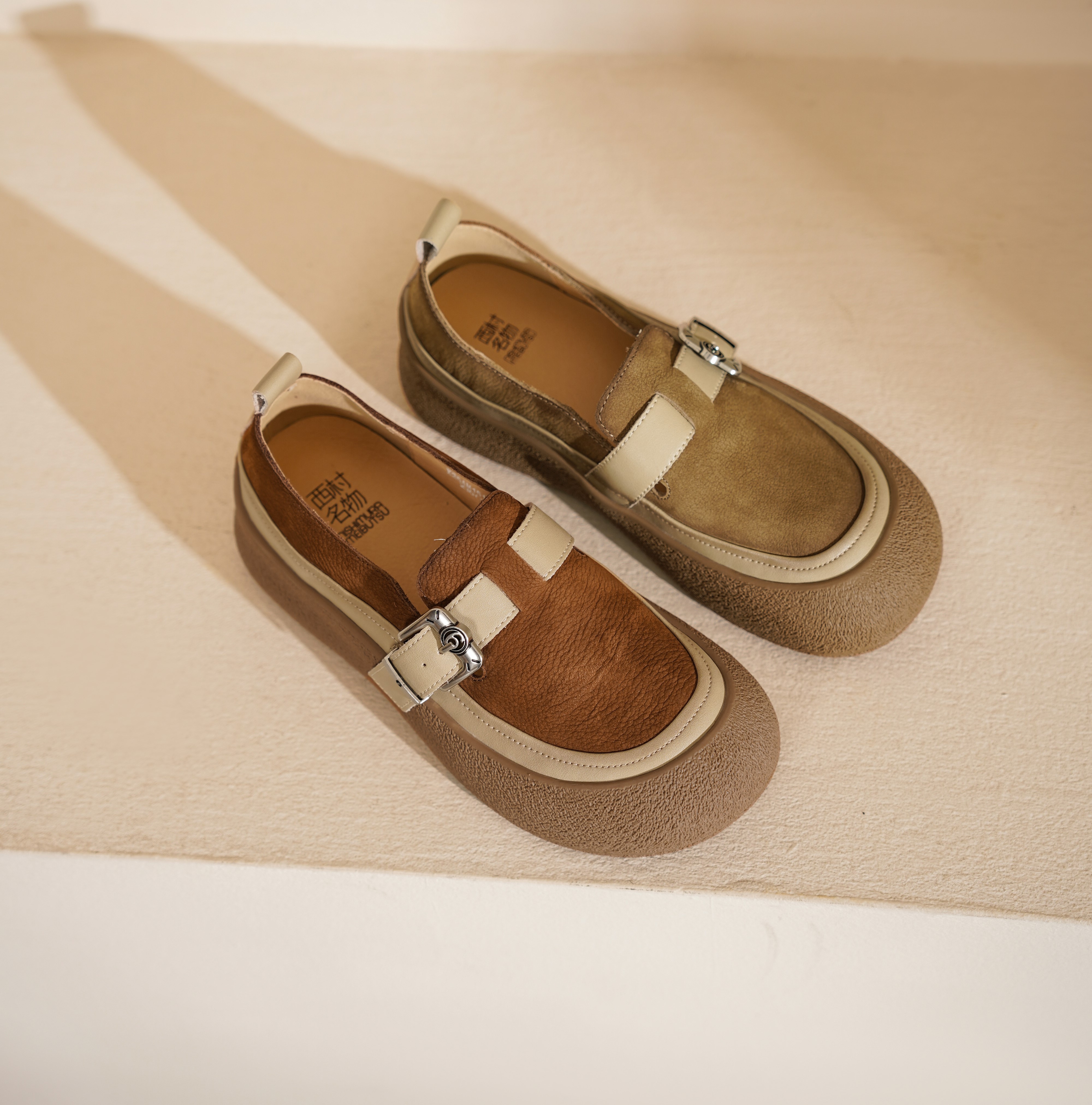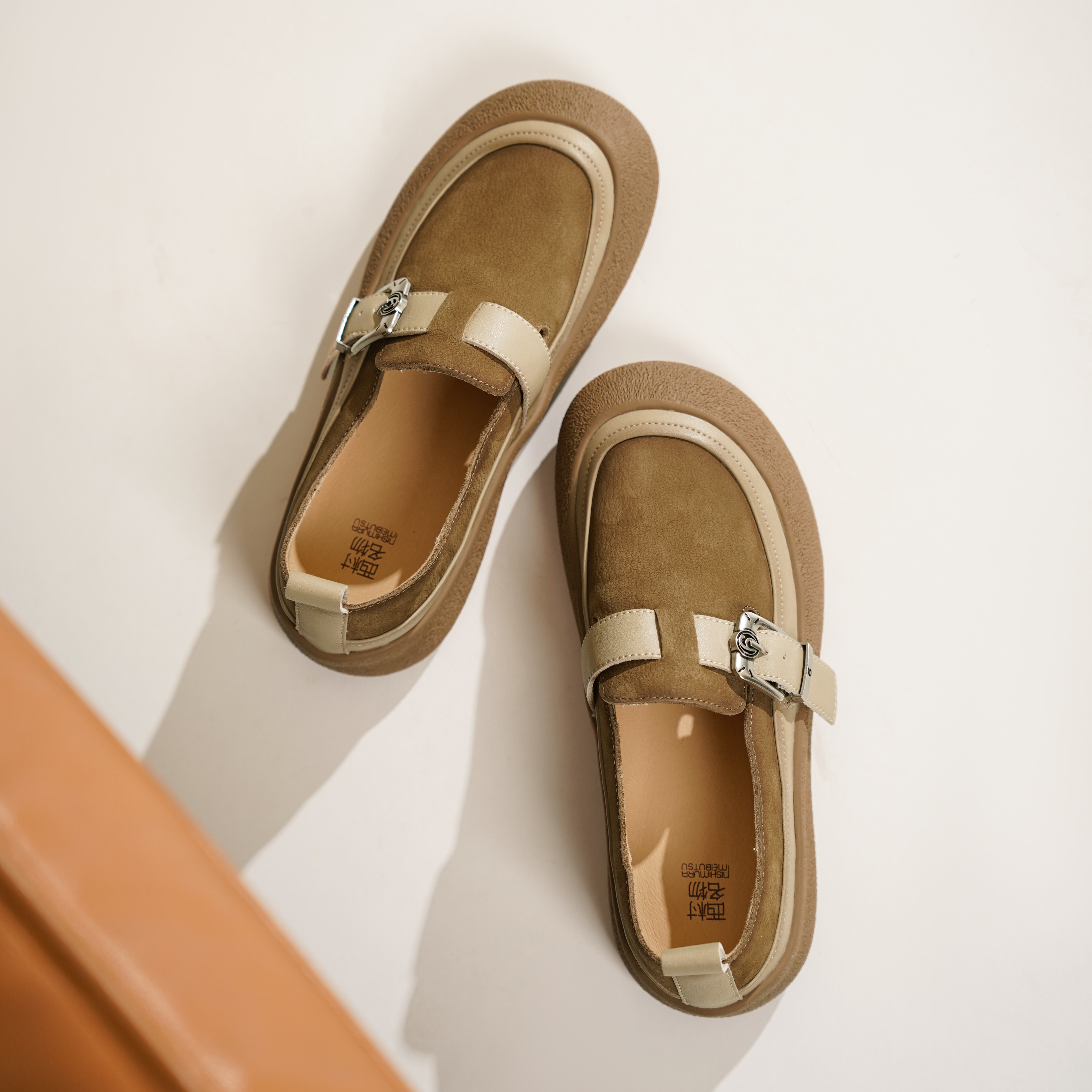 西村名物2025年春季新款圆头厚底平跟防滑大底舒适乐福鞋玛丽珍单鞋X25AM15161