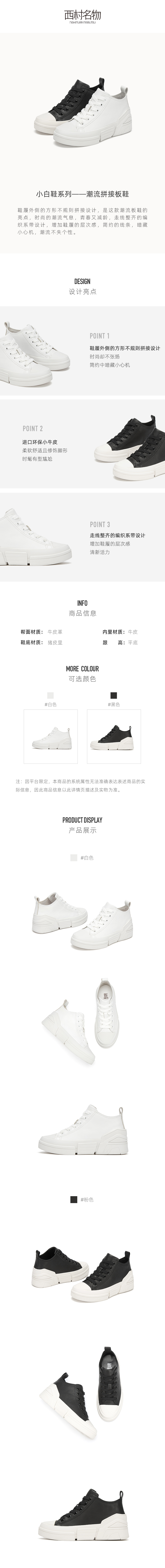 西村名物2020秋季新款小白鞋牛皮革潮流拼接时尚休闲板鞋X20CM32681
