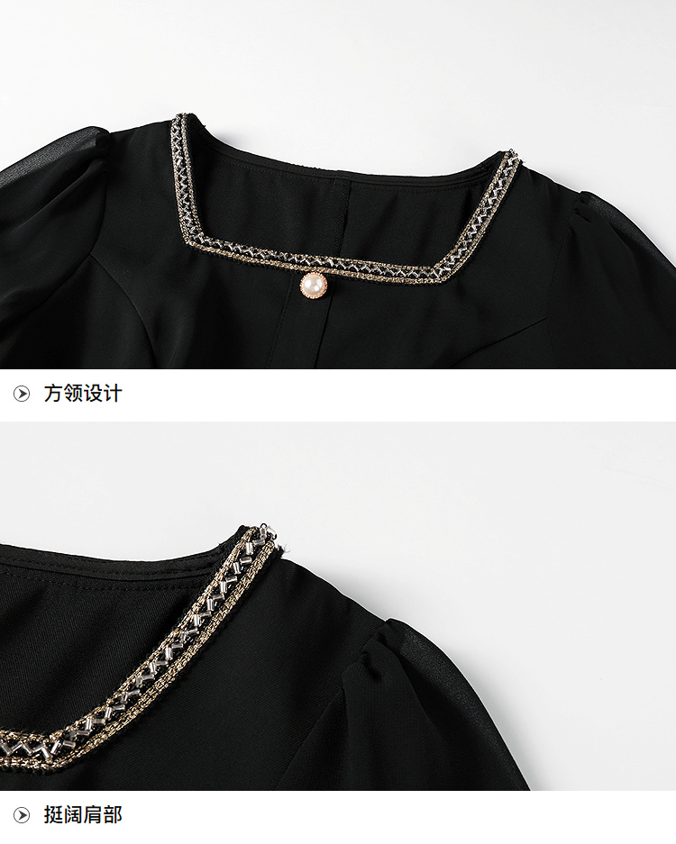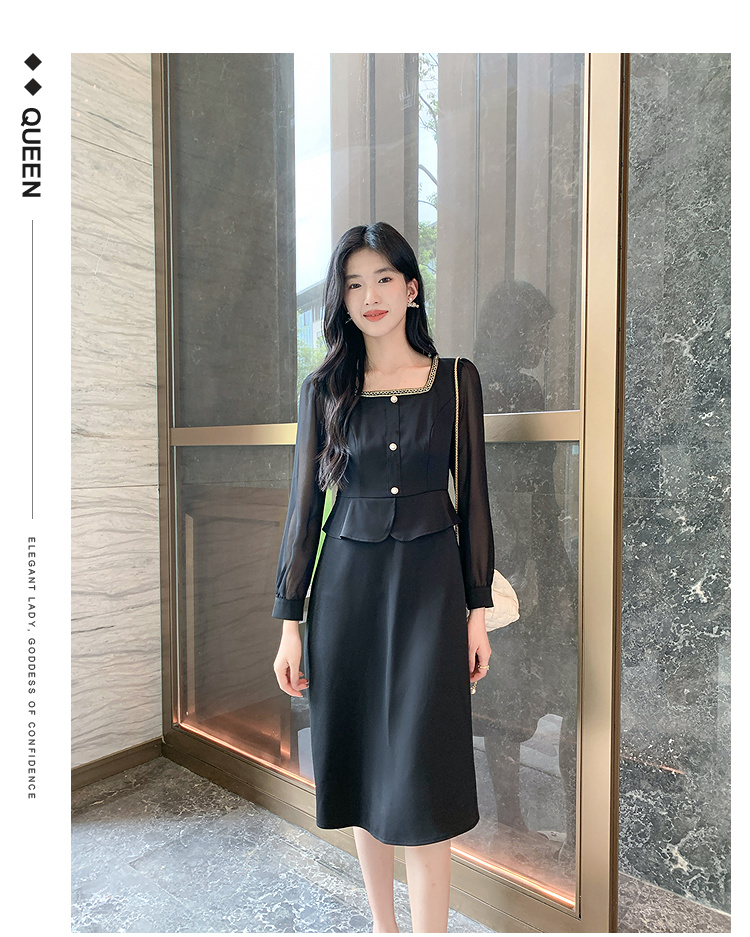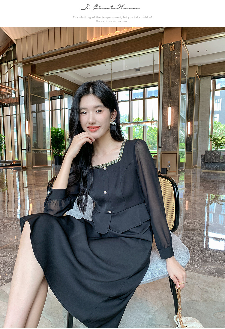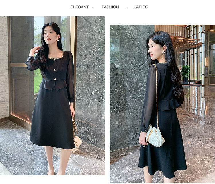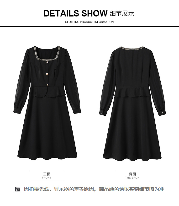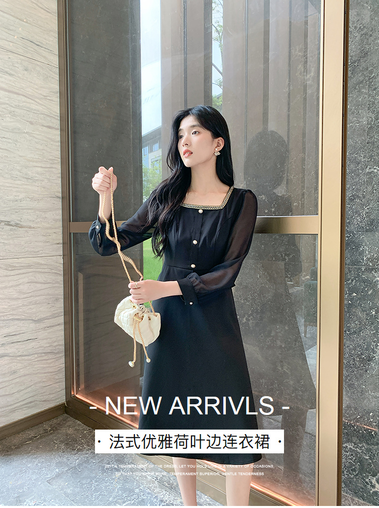 奢姿大码女装2025秋季新款胖妹妹轻奢法式连衣裙优雅方领荷叶边裙9953890564