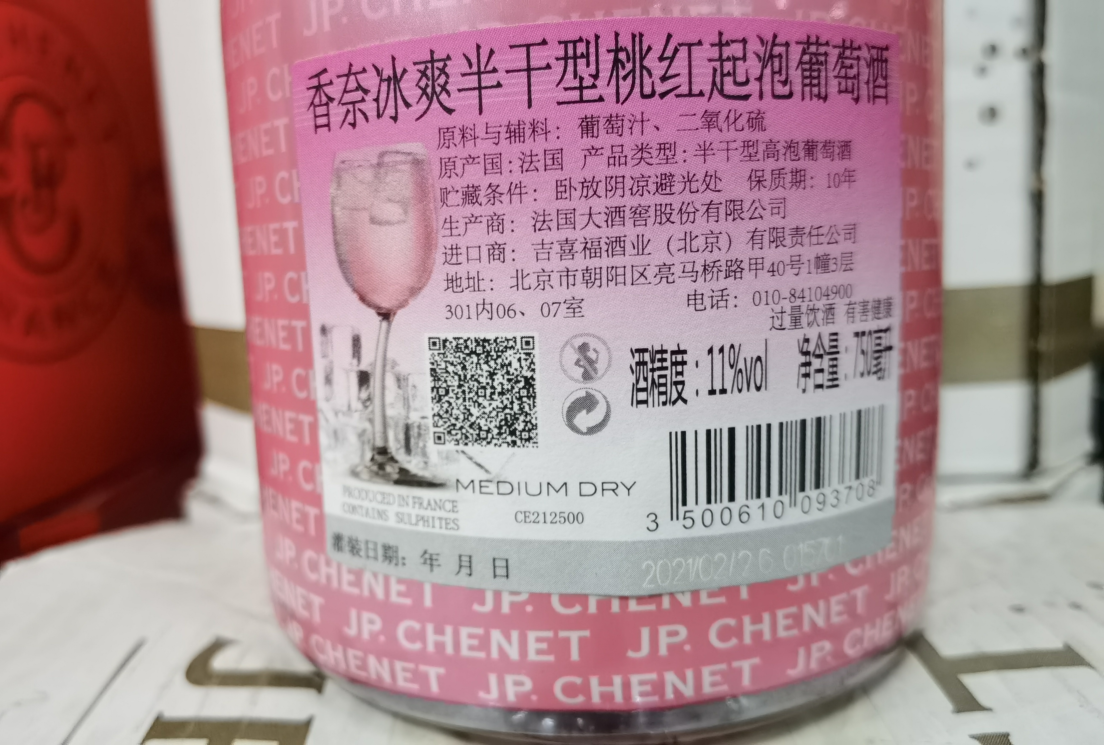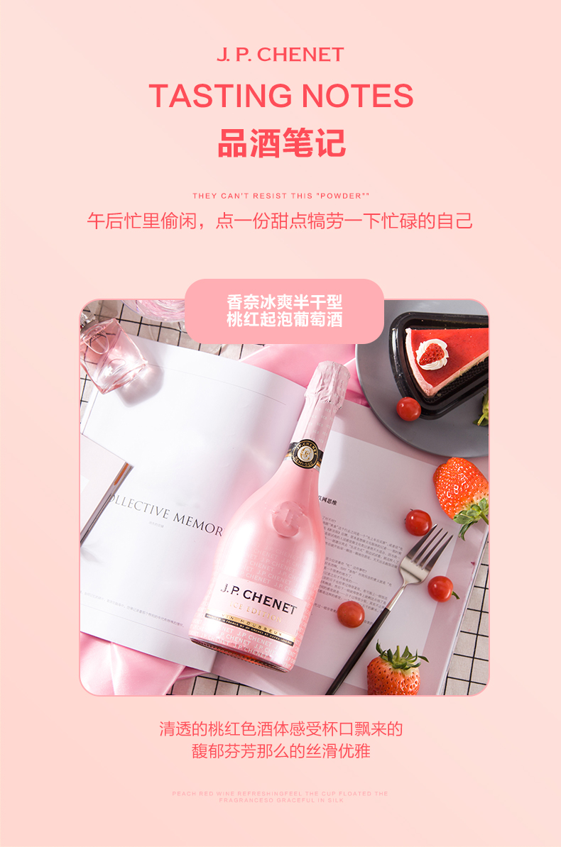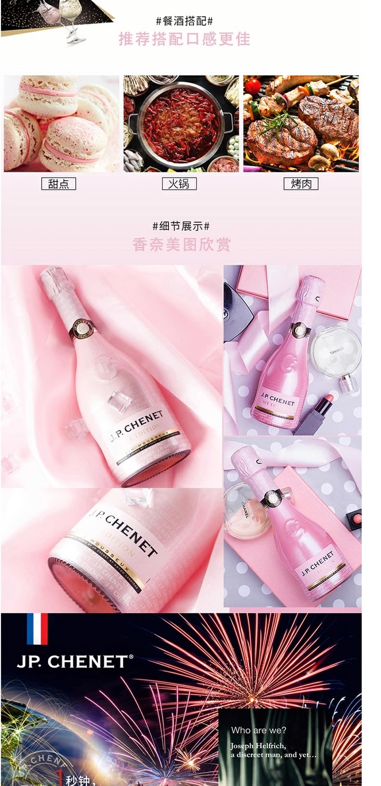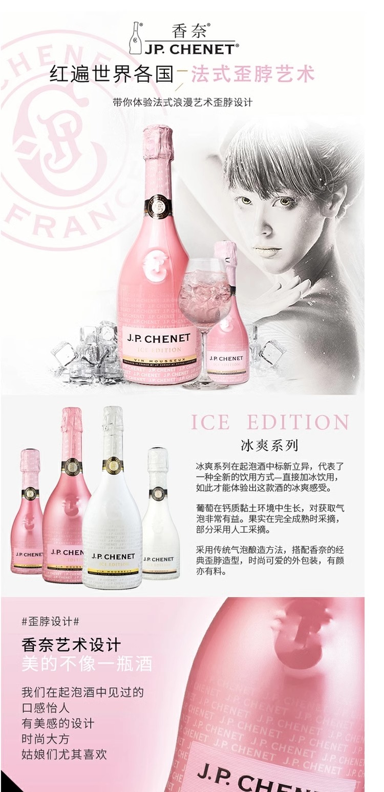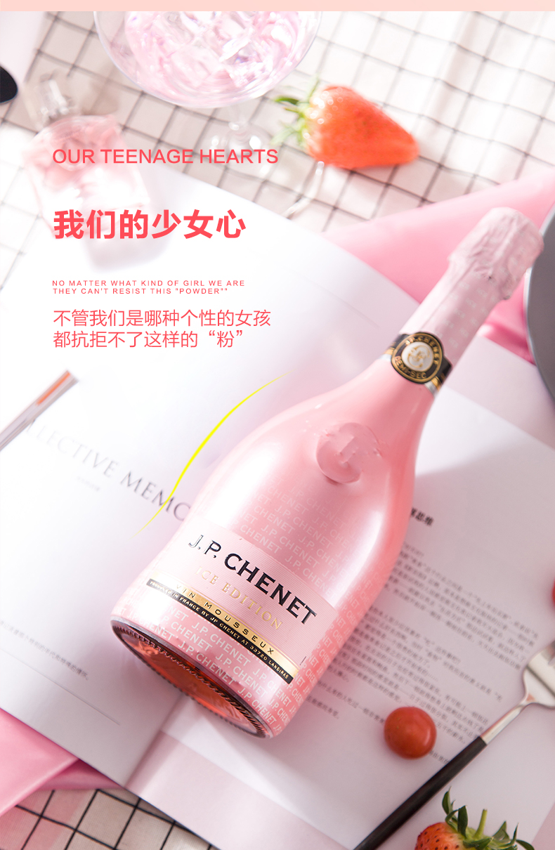 JP.CHENET香奈冰爽桃红起泡酒 时尚香槟气泡酒 法国进口葡萄酒 750ml 节日礼赠 亲朋聚会 72小时发货
