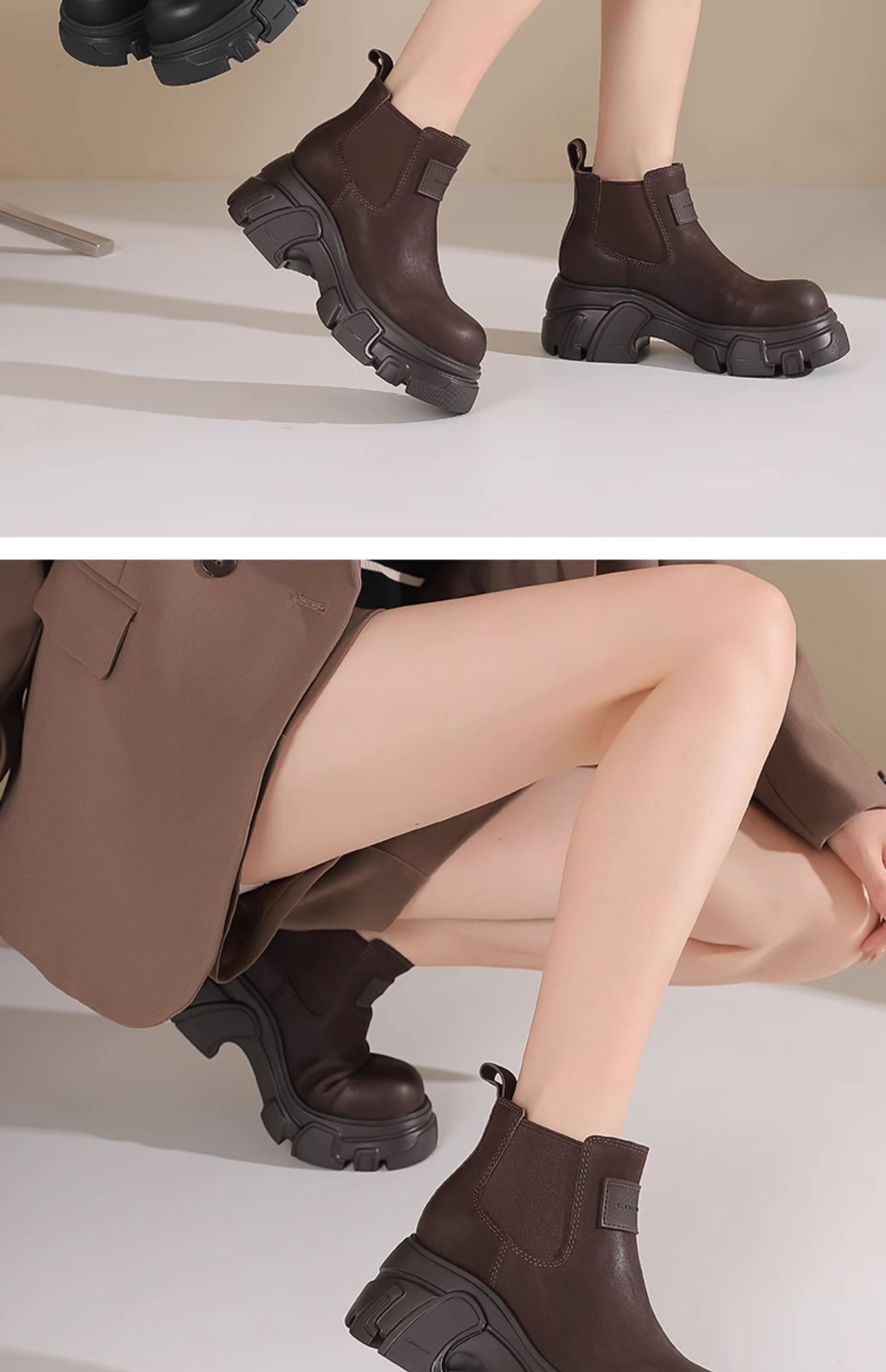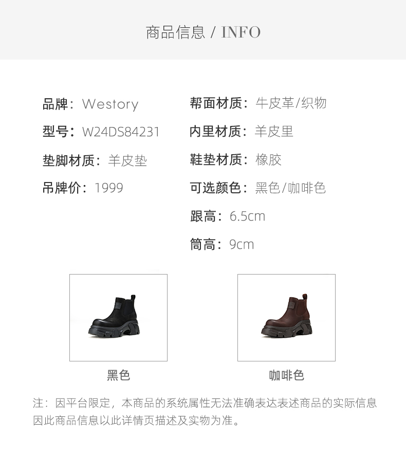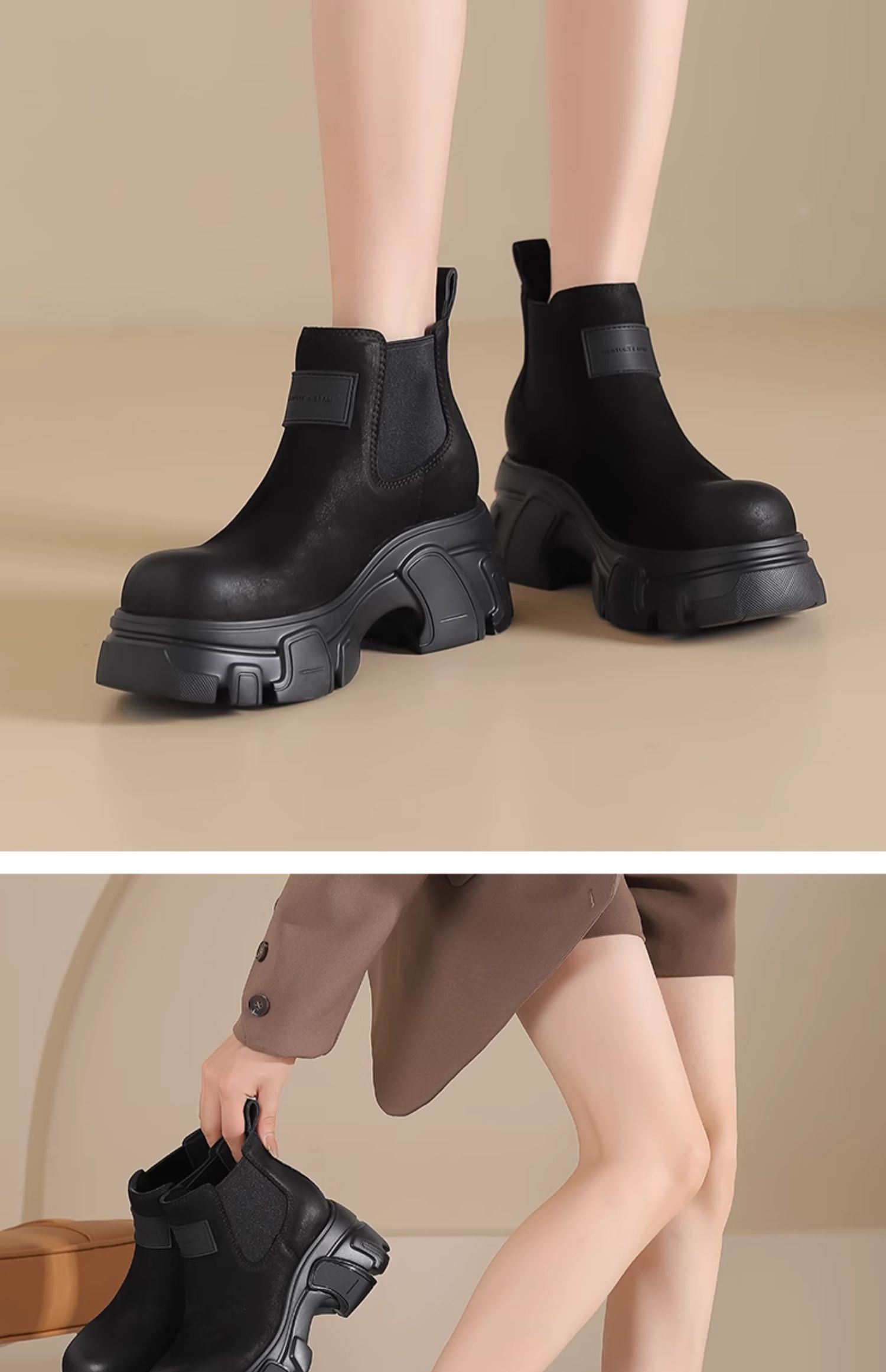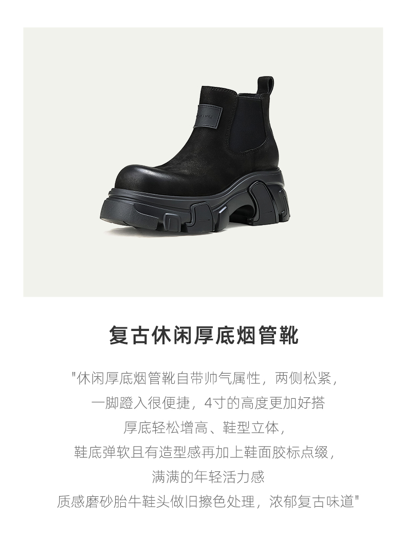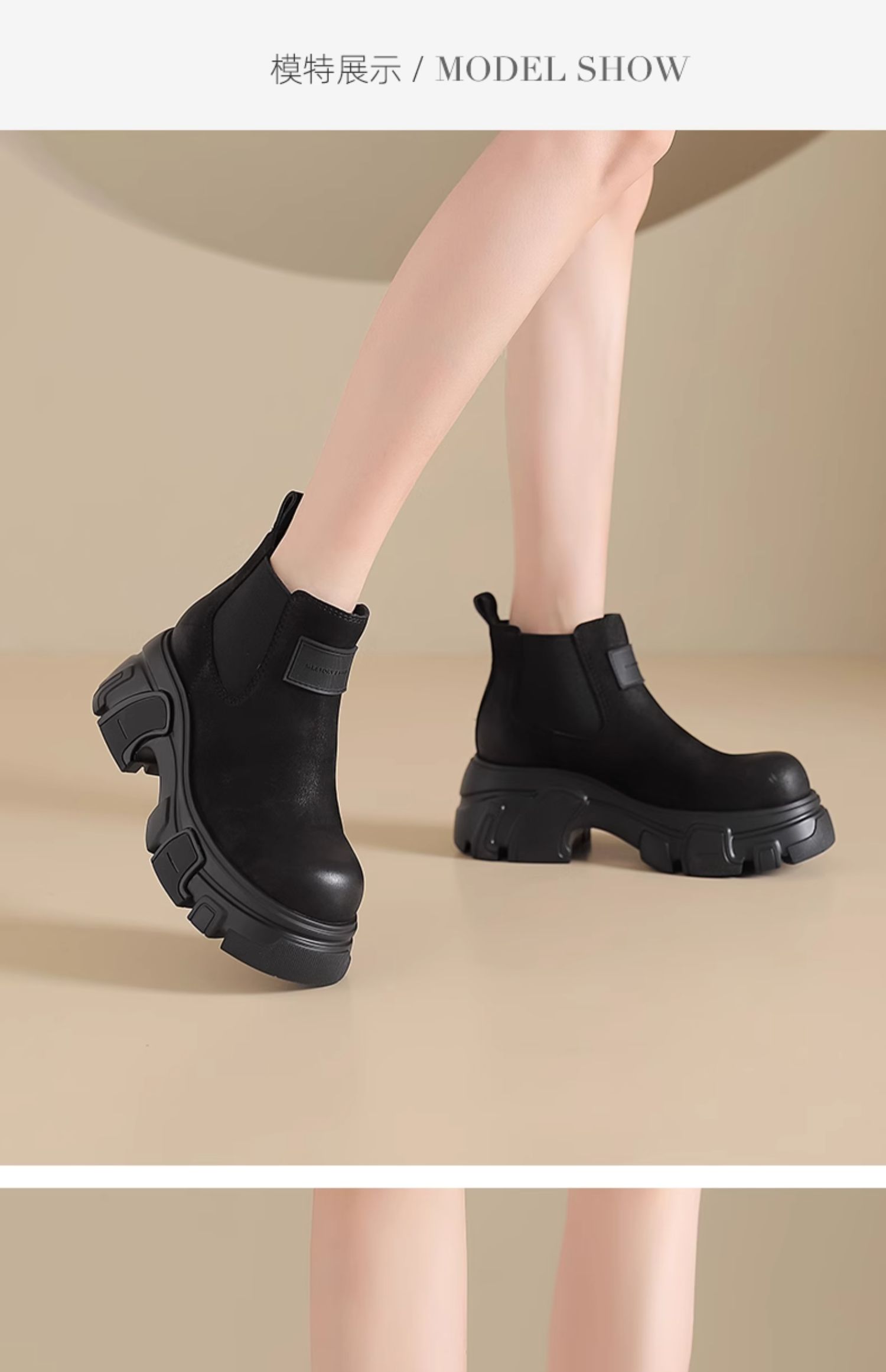 westory2024秋冬新款复古休闲简约百搭厚底圆头马丁靴女W24DS84231