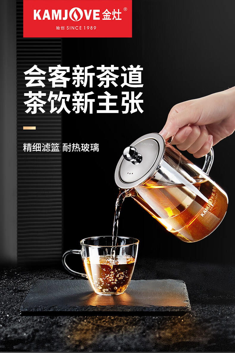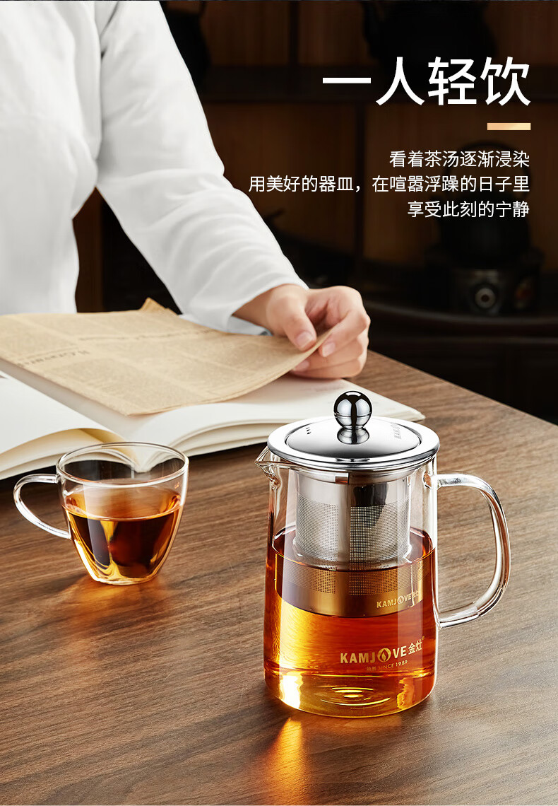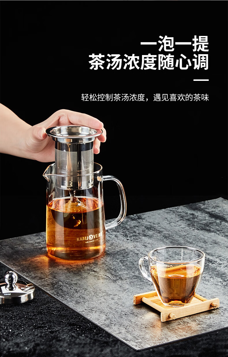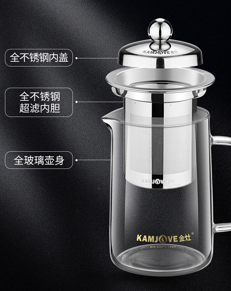 金灶A-01飘逸杯加厚玻璃泡茶壶茶壶不锈钢过滤内胆茶壶办公室茶具花茶壶A-03