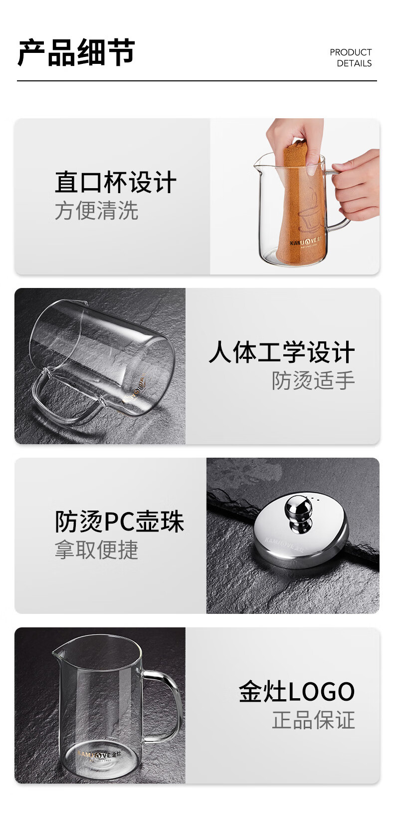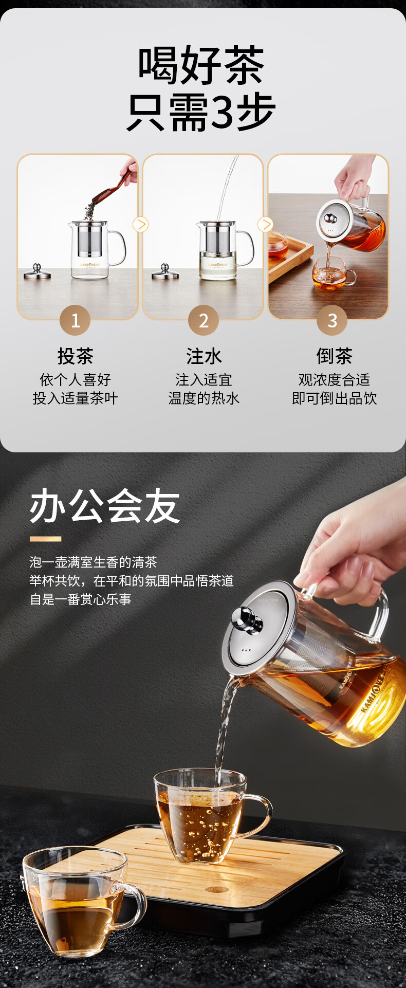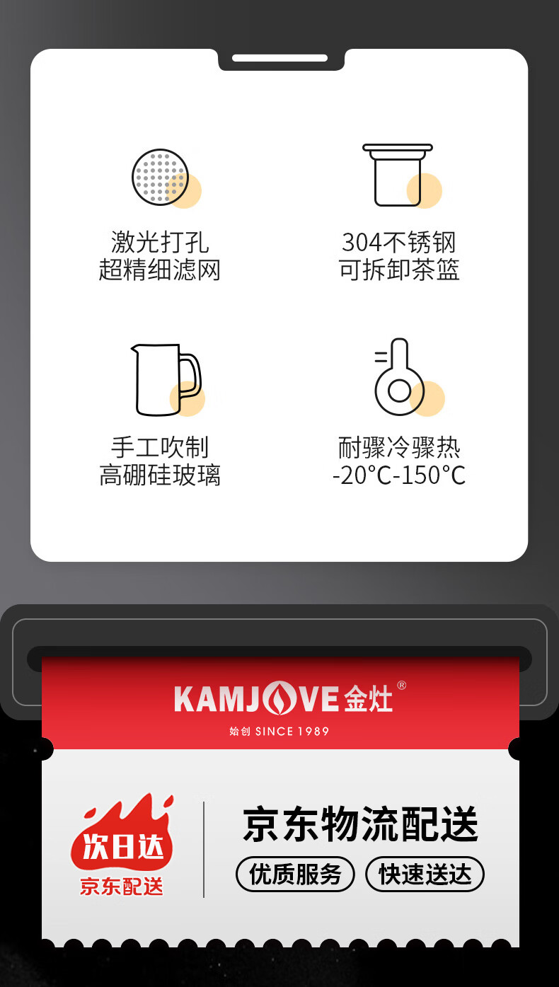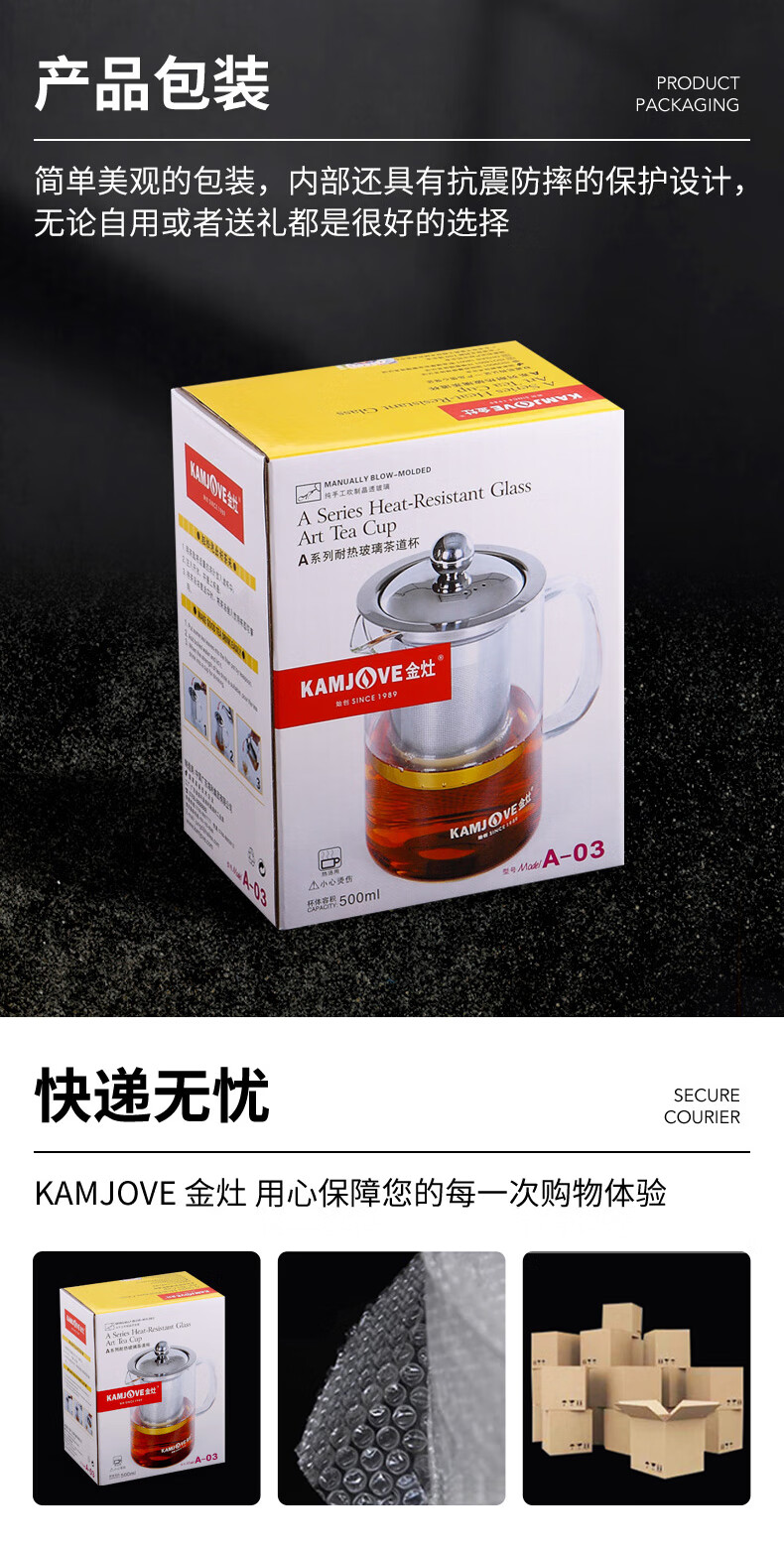 金灶A-01飘逸杯加厚玻璃泡茶壶茶壶不锈钢过滤内胆茶壶办公室茶具花茶壶A-03