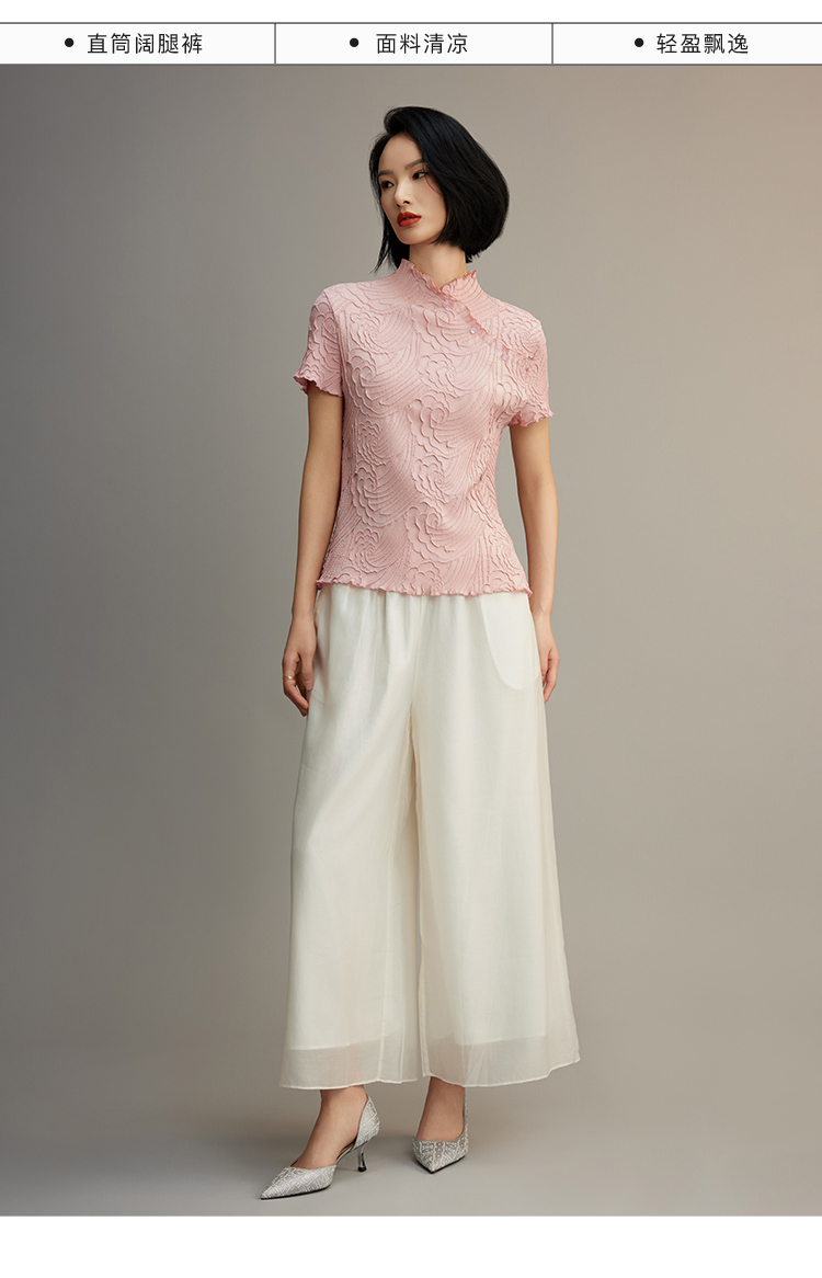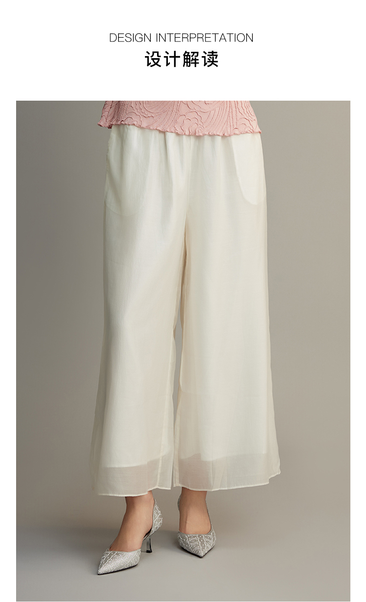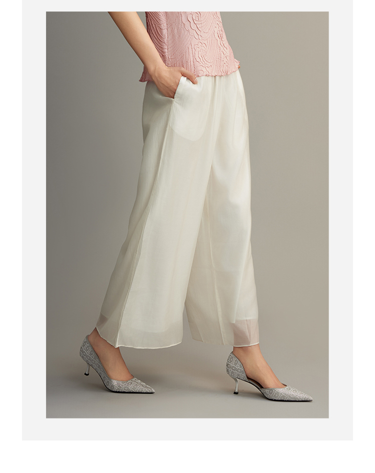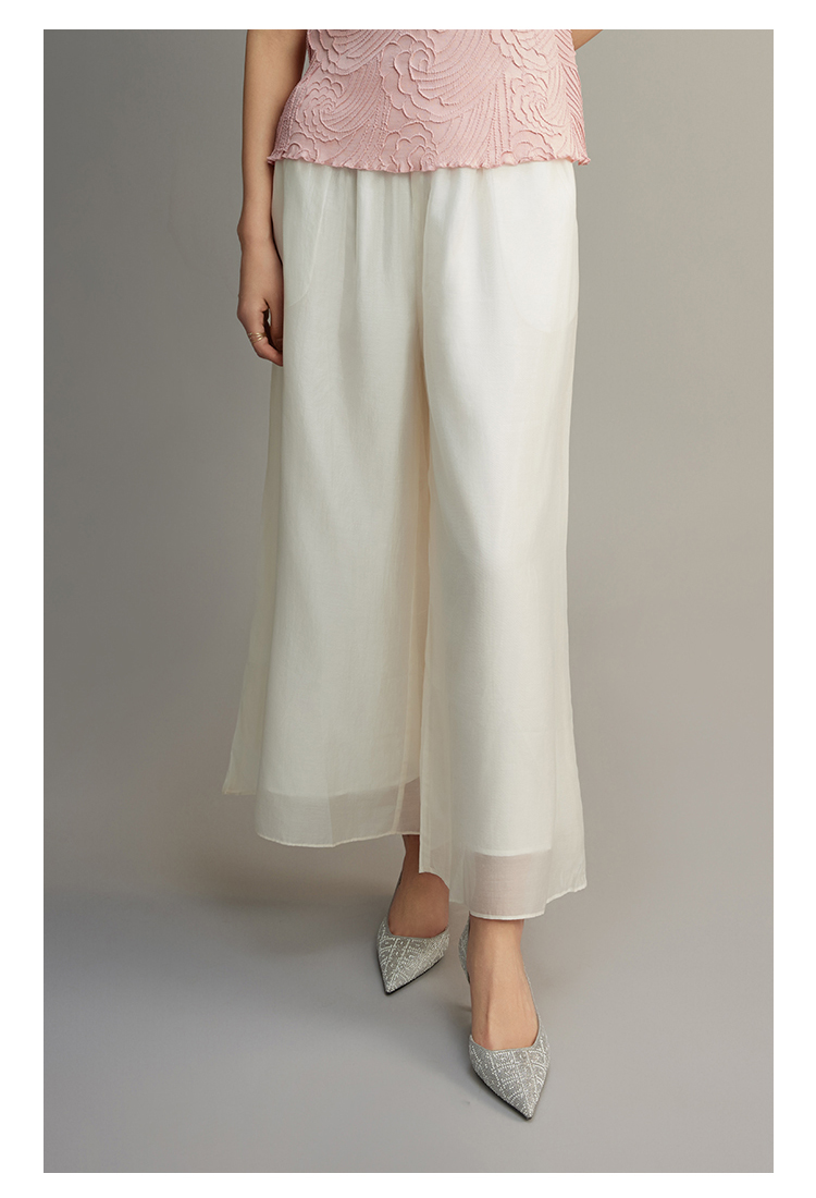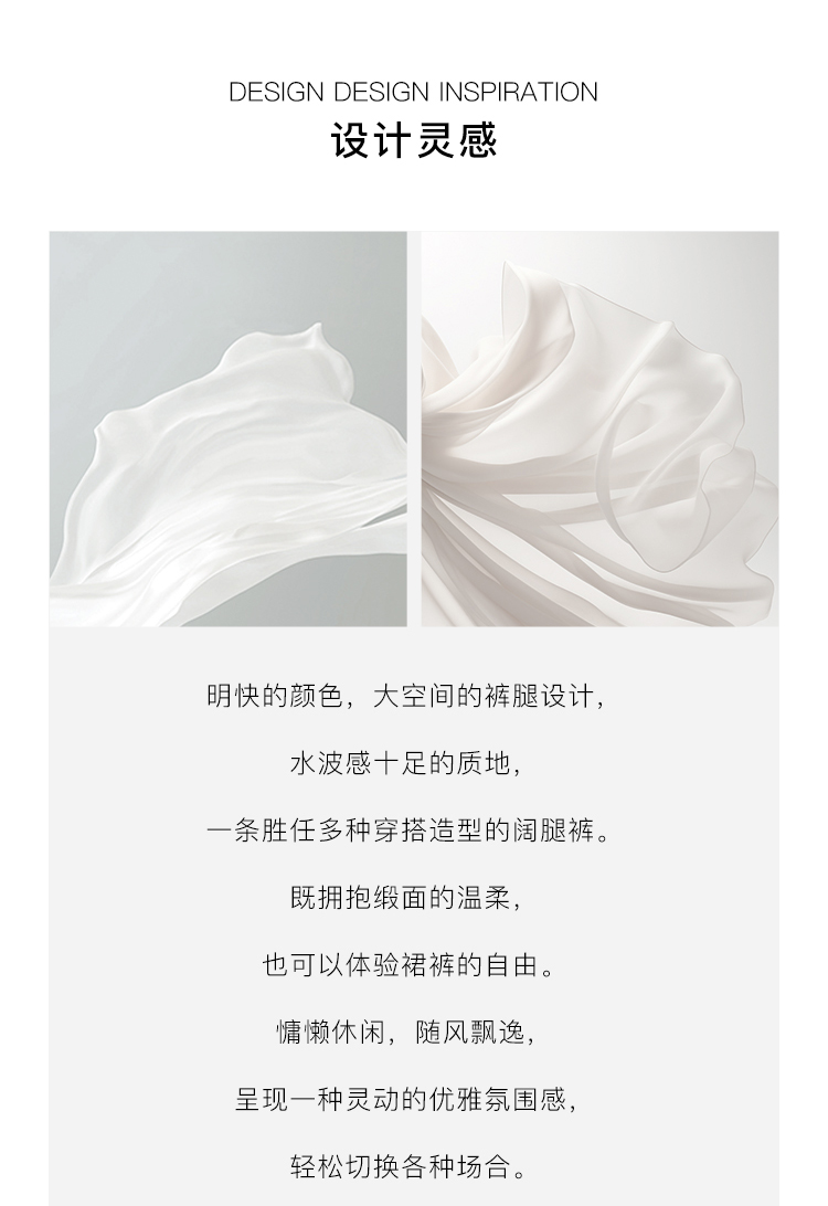 夏季新款休闲裤女高腰垂感直筒阔腿裤白色缎面裤裙