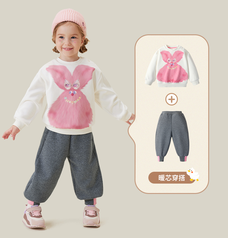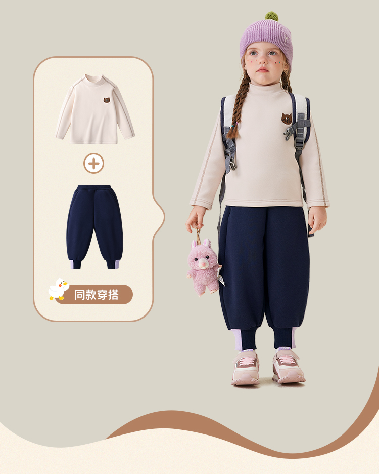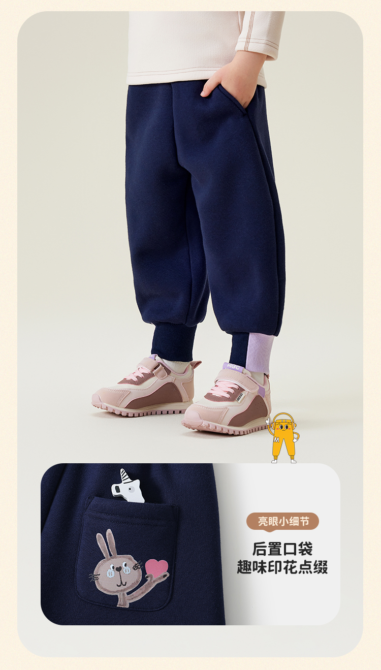 【北极绒】【90-140】【MQDmini】女童加绒保暖卫裤