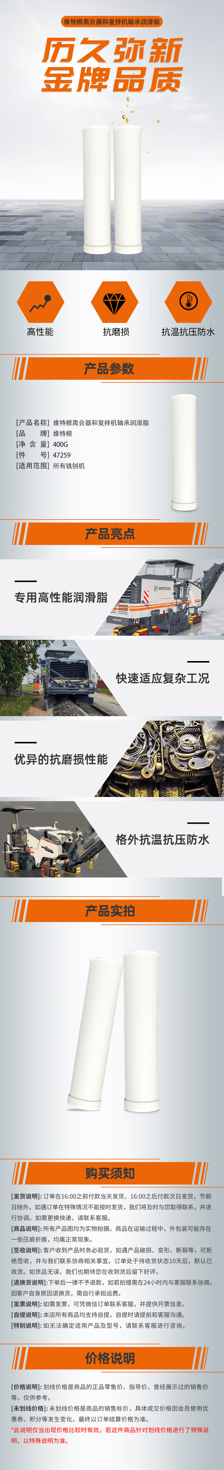 【离合器和复拌机轴承润滑脂 400G WX47259】适用于所有铣刨机