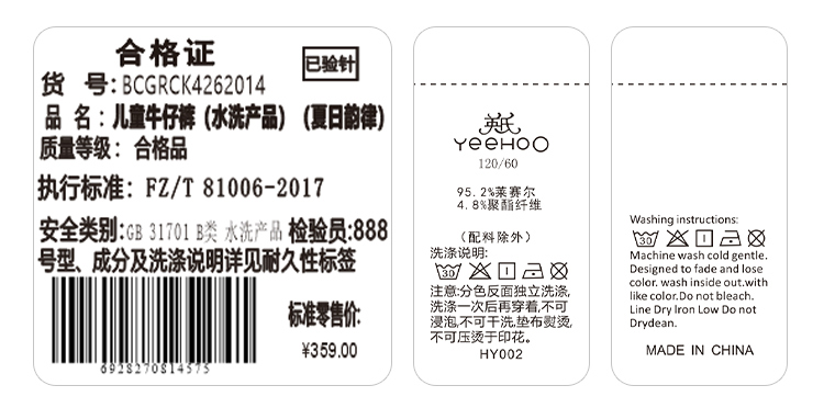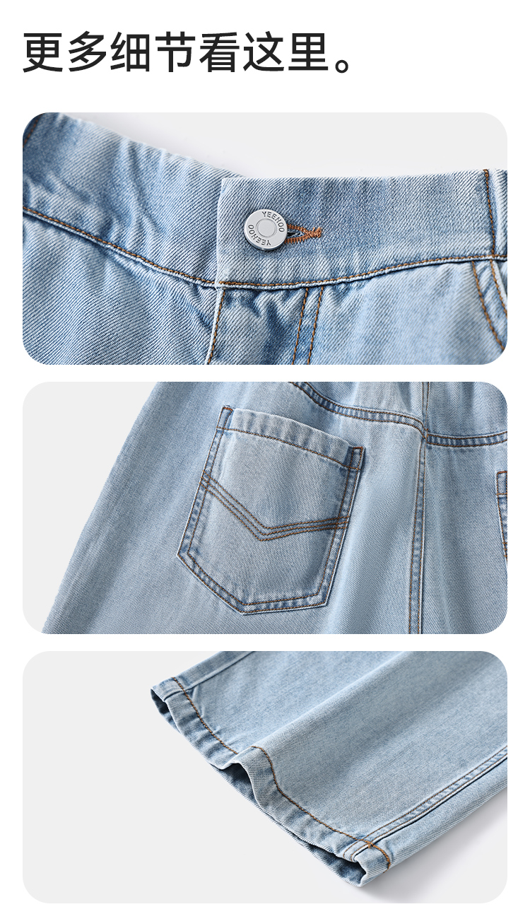 【英氏】【天丝凉感软牛仔】【110-160】男童夏季舒适凉感莱赛尔牛仔裤