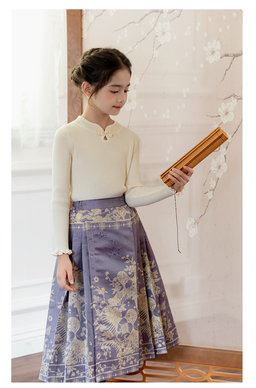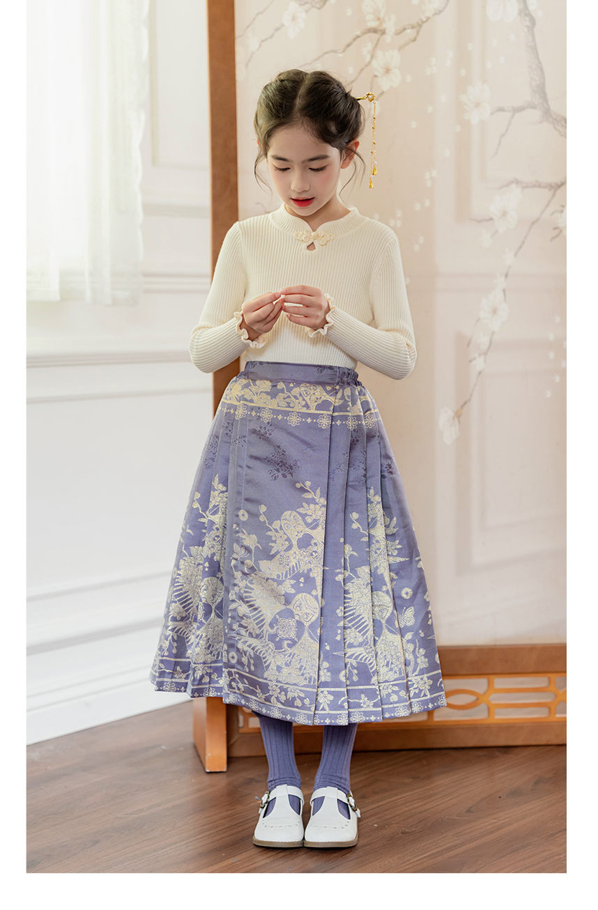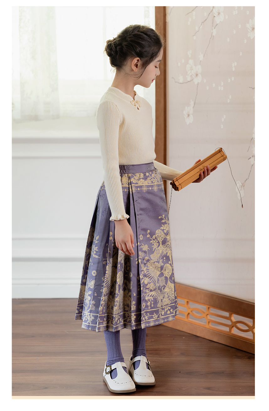 littletime女童汉服裙子秋冬新款紫色中国风纸鸢织锦马面裙半身裙