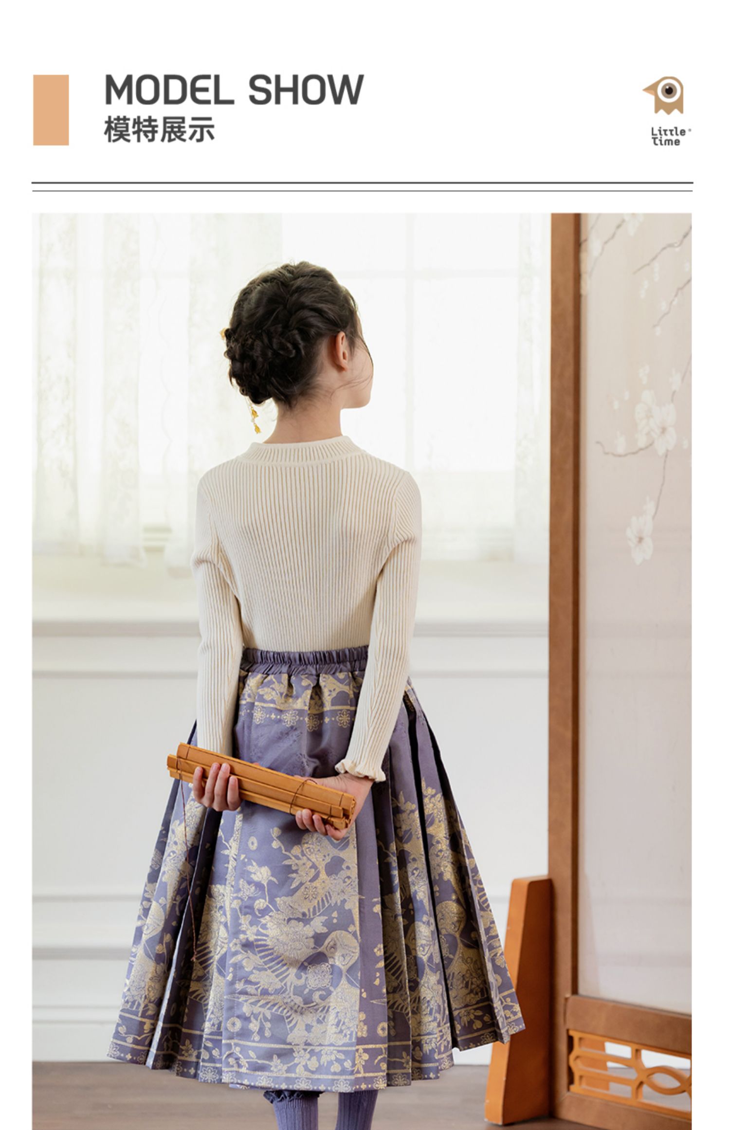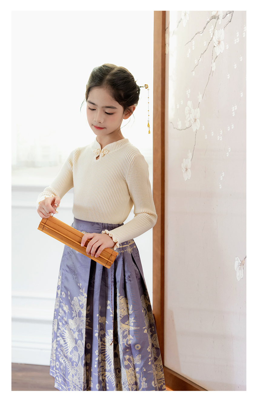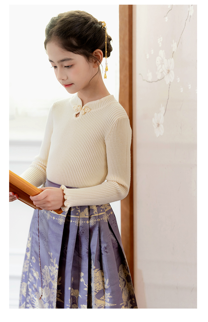 littletime女童汉服裙子秋冬新款紫色中国风纸鸢织锦马面裙半身裙