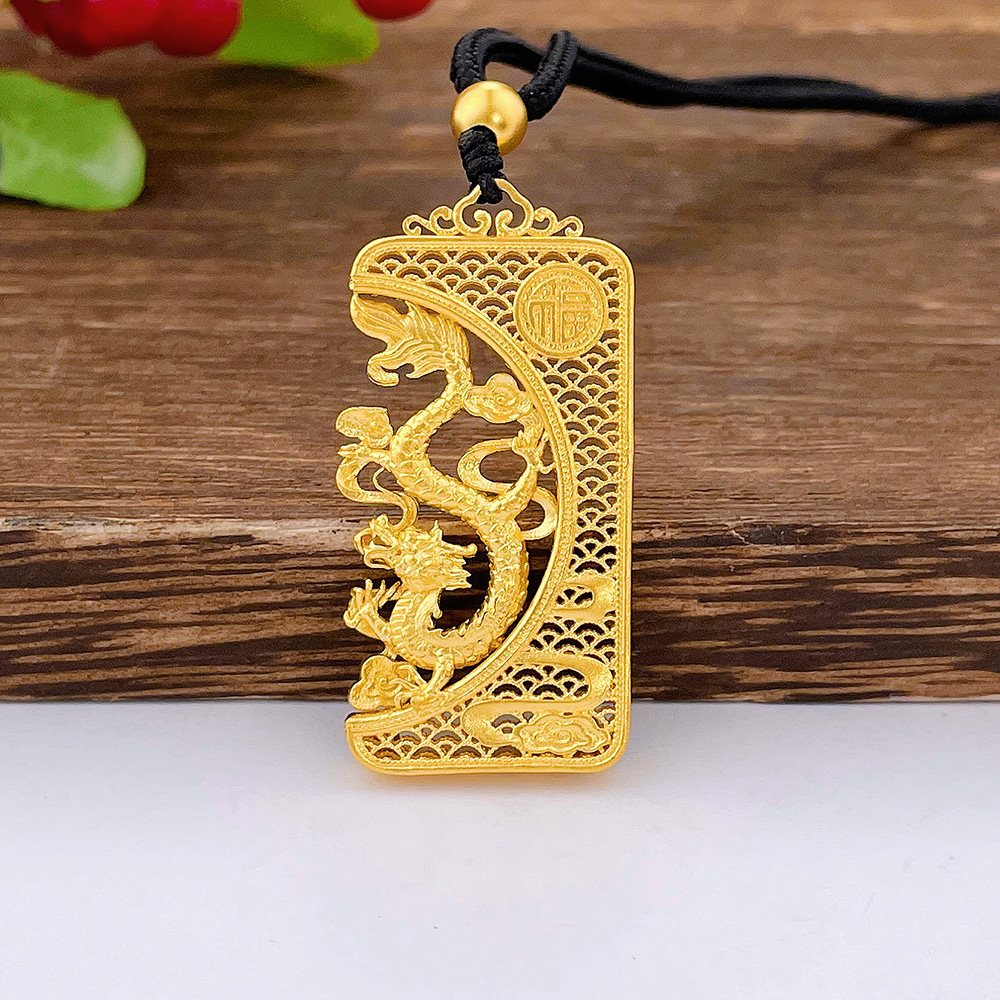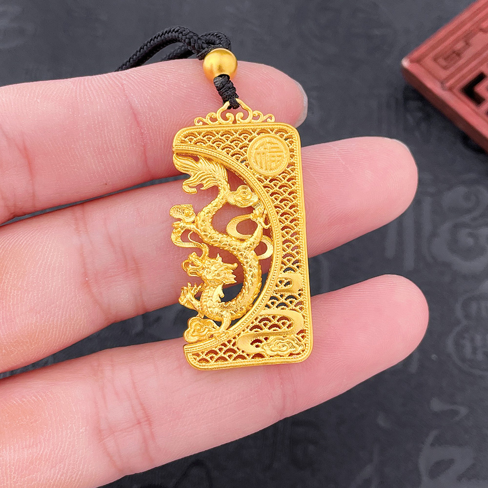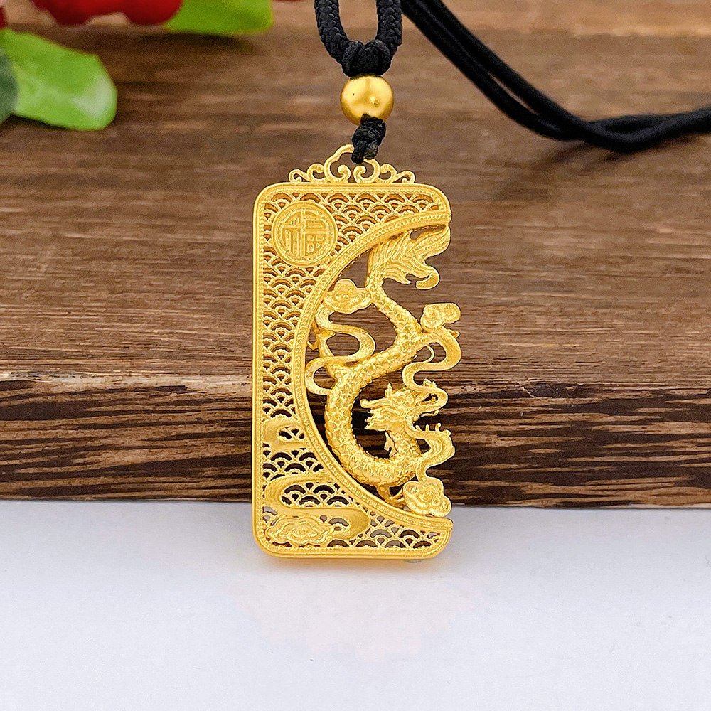 【限时克减150元】足金999 古法挂绳镂空花丝龙凤配龙牌吊坠(含珠子)(YGFDZ00229-A)(预售产品下单后不退款不退货不换货不补差价)