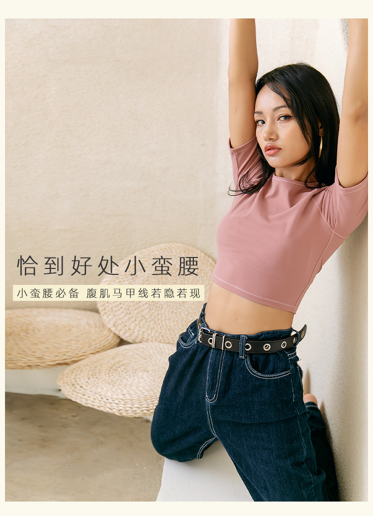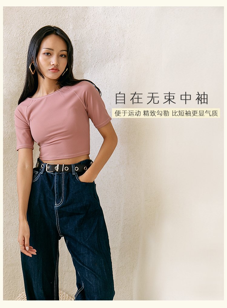 【高弹裸感抗起球】圆领修身长袖 弧形下摆显瘦打底衫 长度到小腹