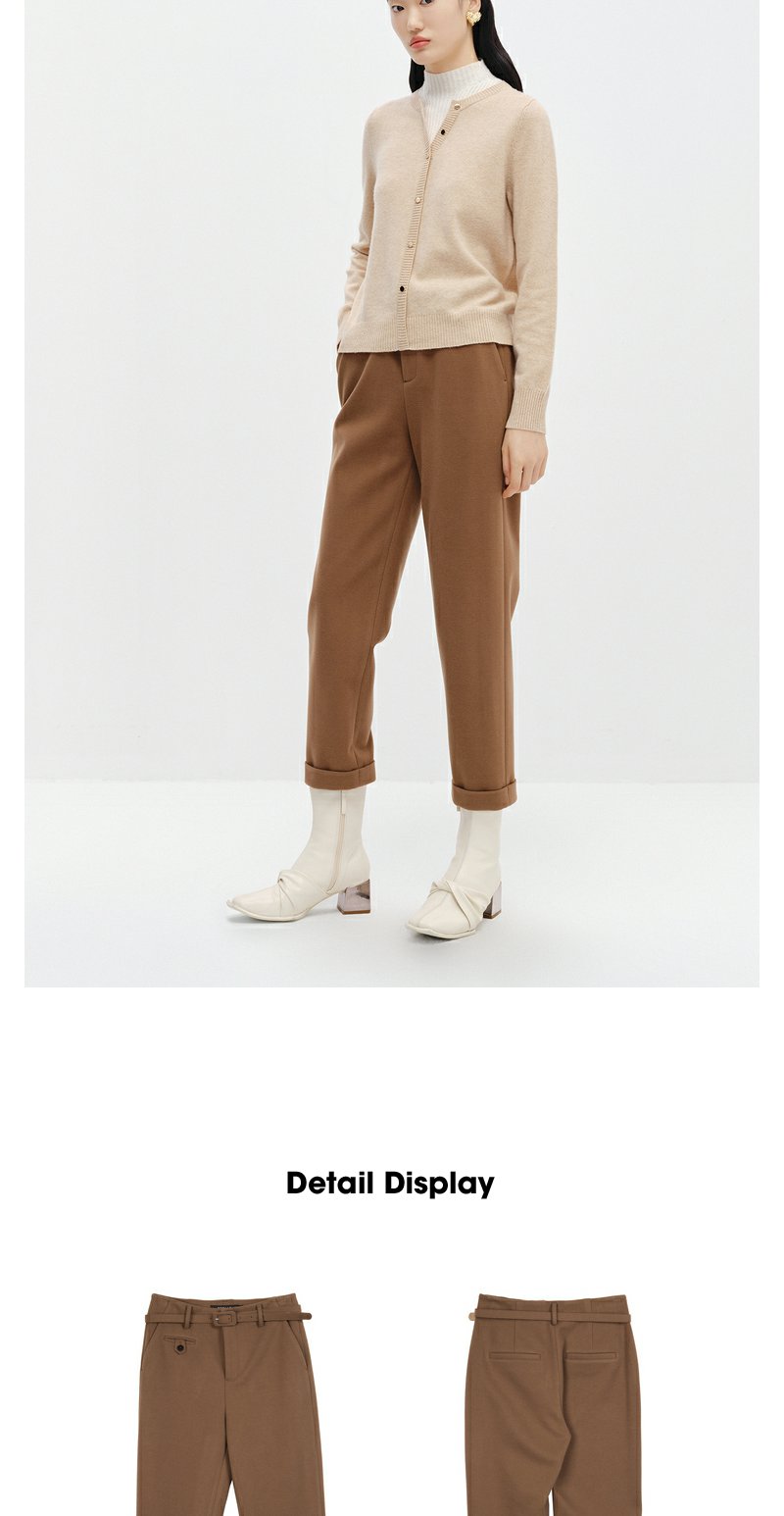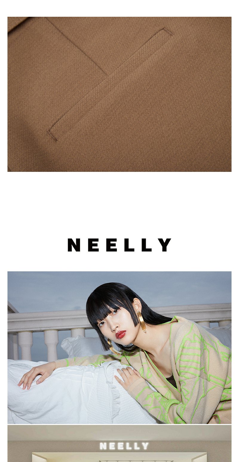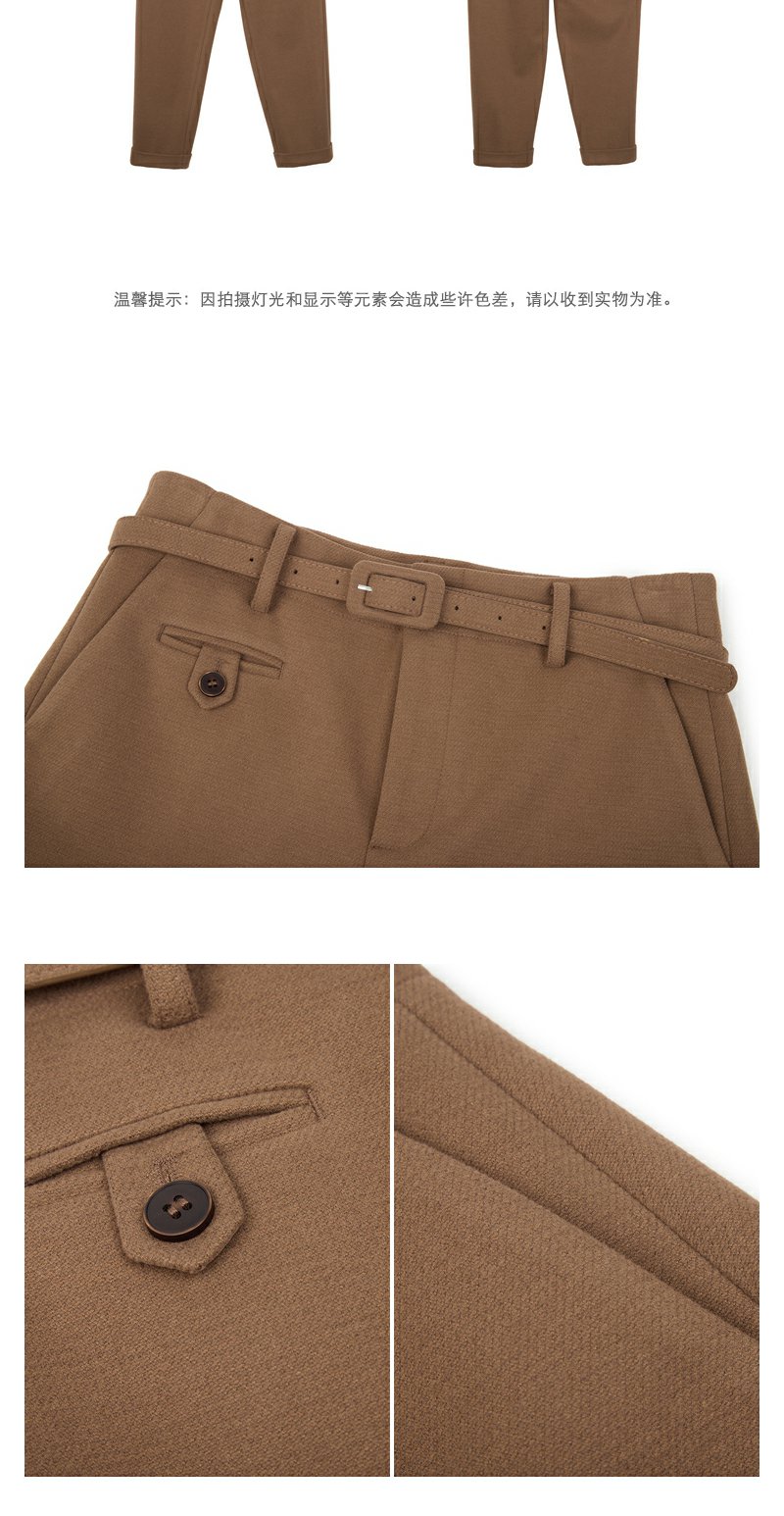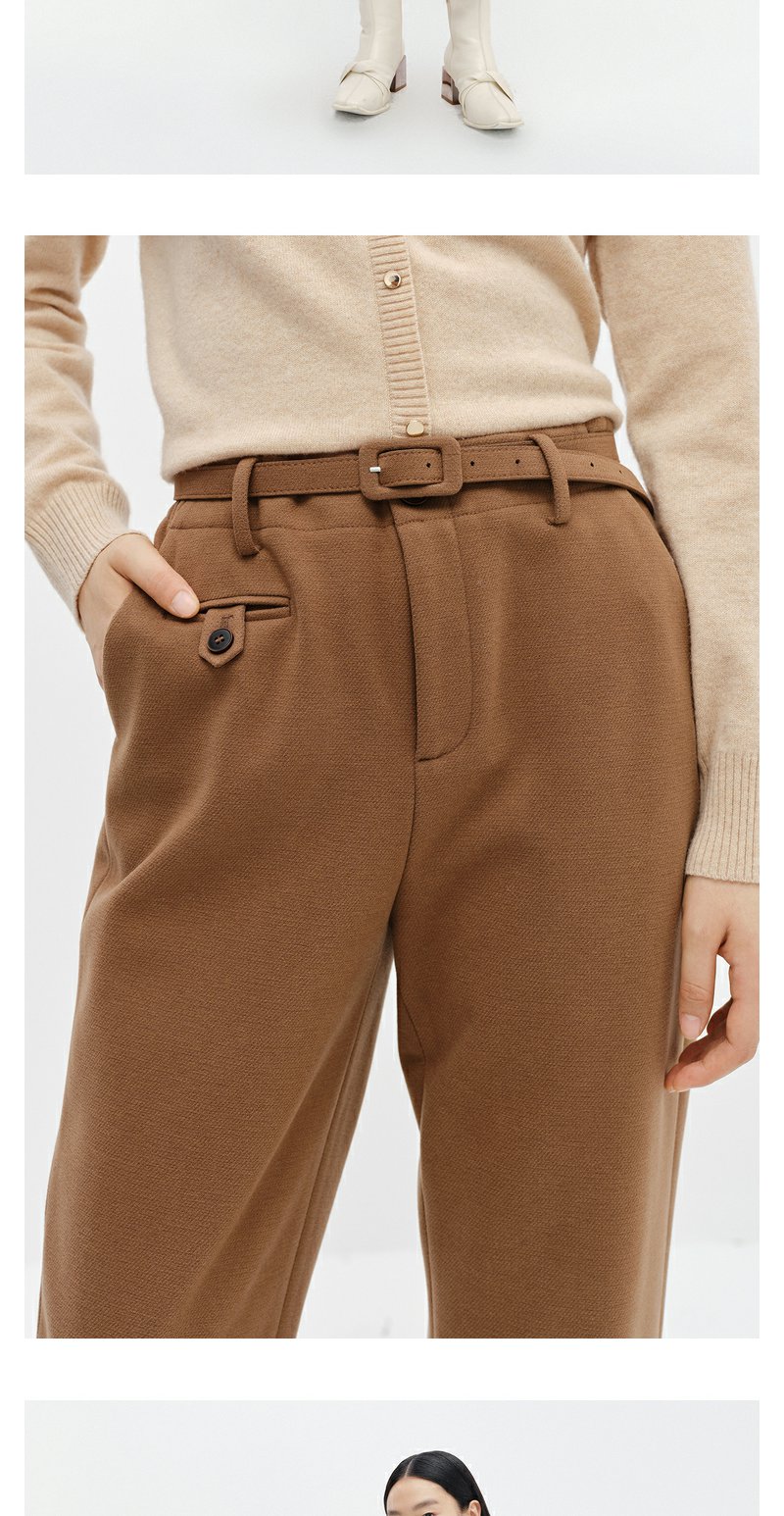 NEELLY纳俪商场同款冬季新款毛呢休闲裤女百搭咖色九分直筒烟管裤N22112H01147