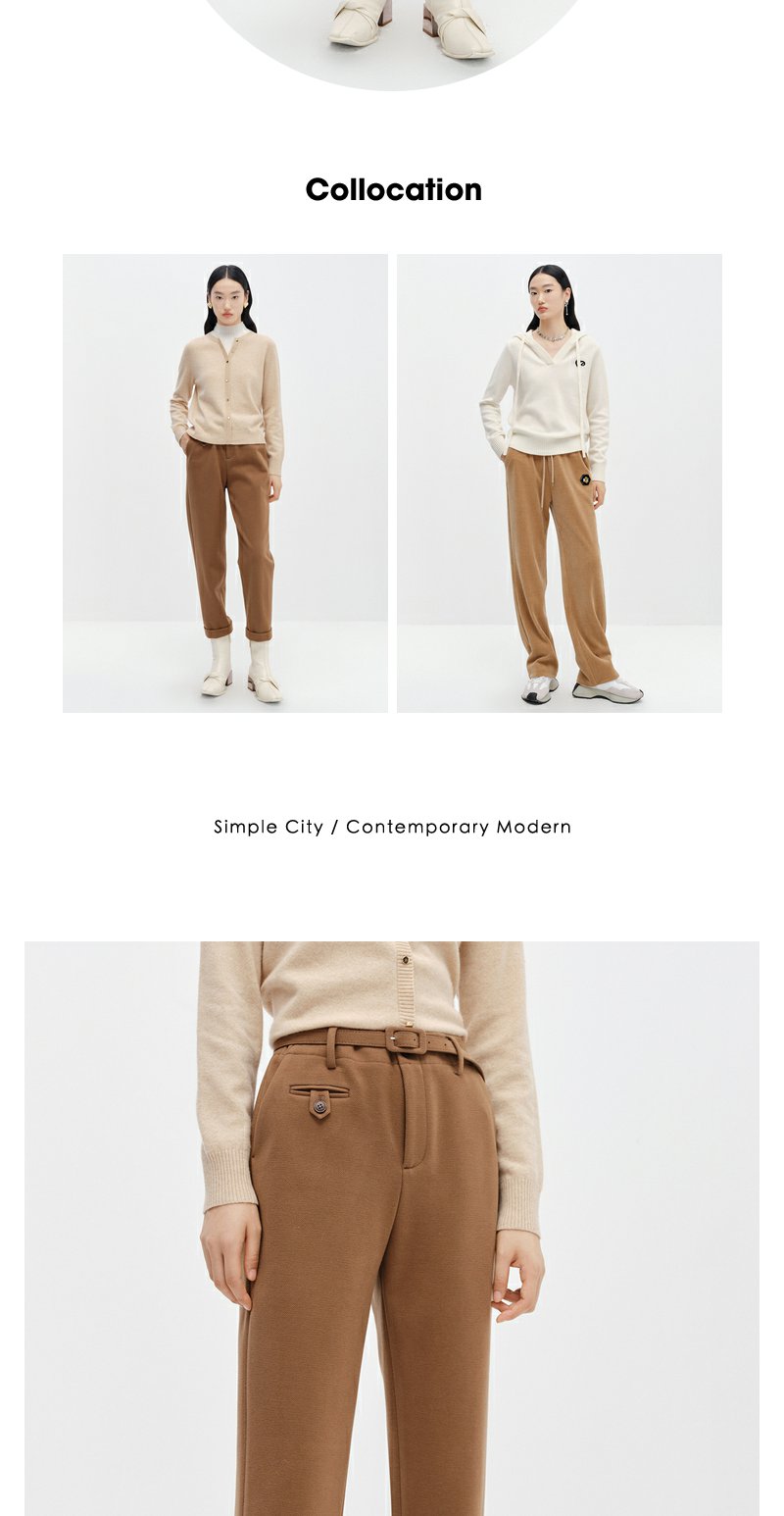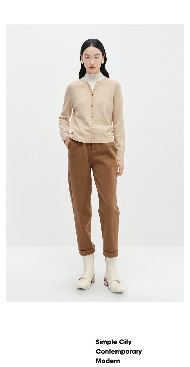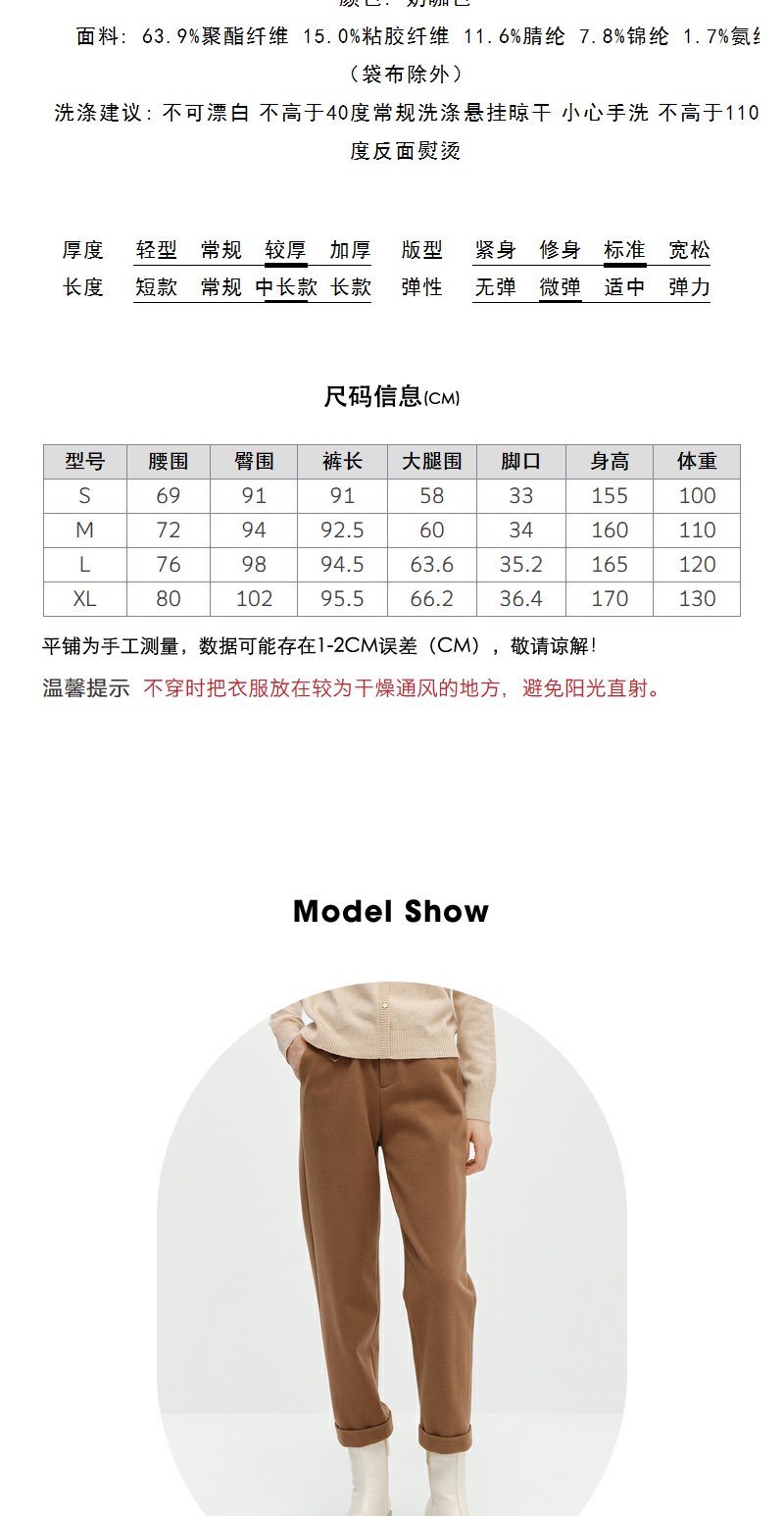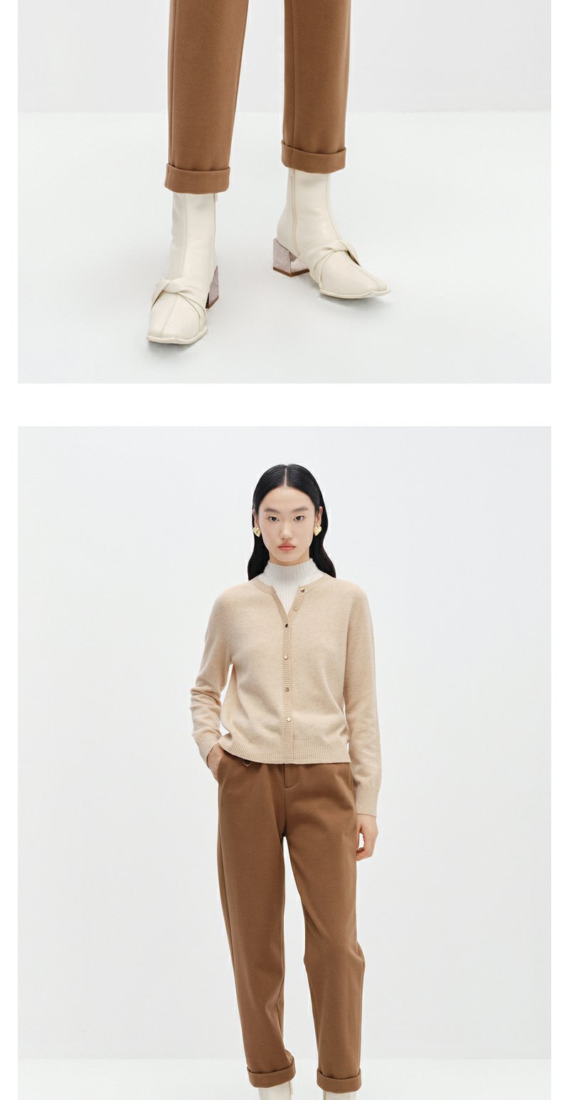 NEELLY纳俪商场同款冬季新款毛呢休闲裤女百搭咖色九分直筒烟管裤N22112H01147