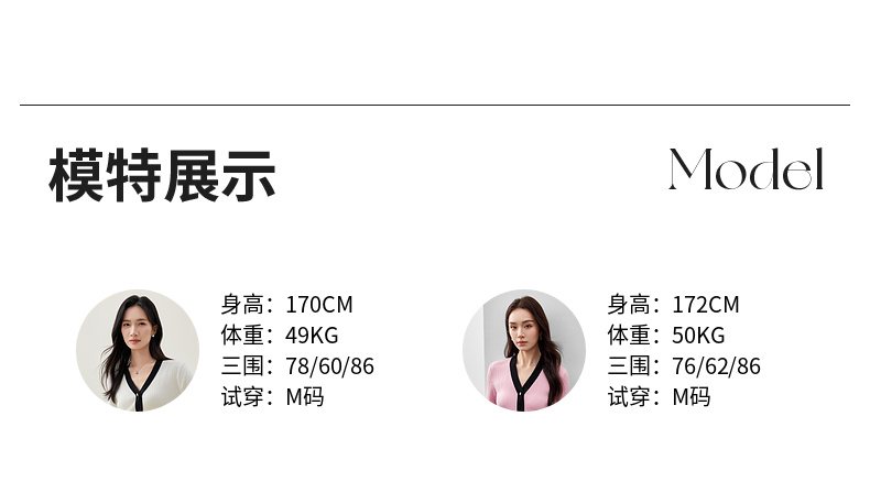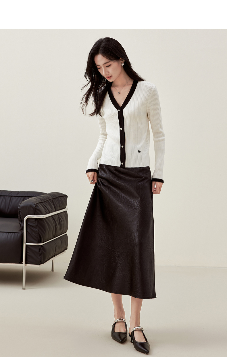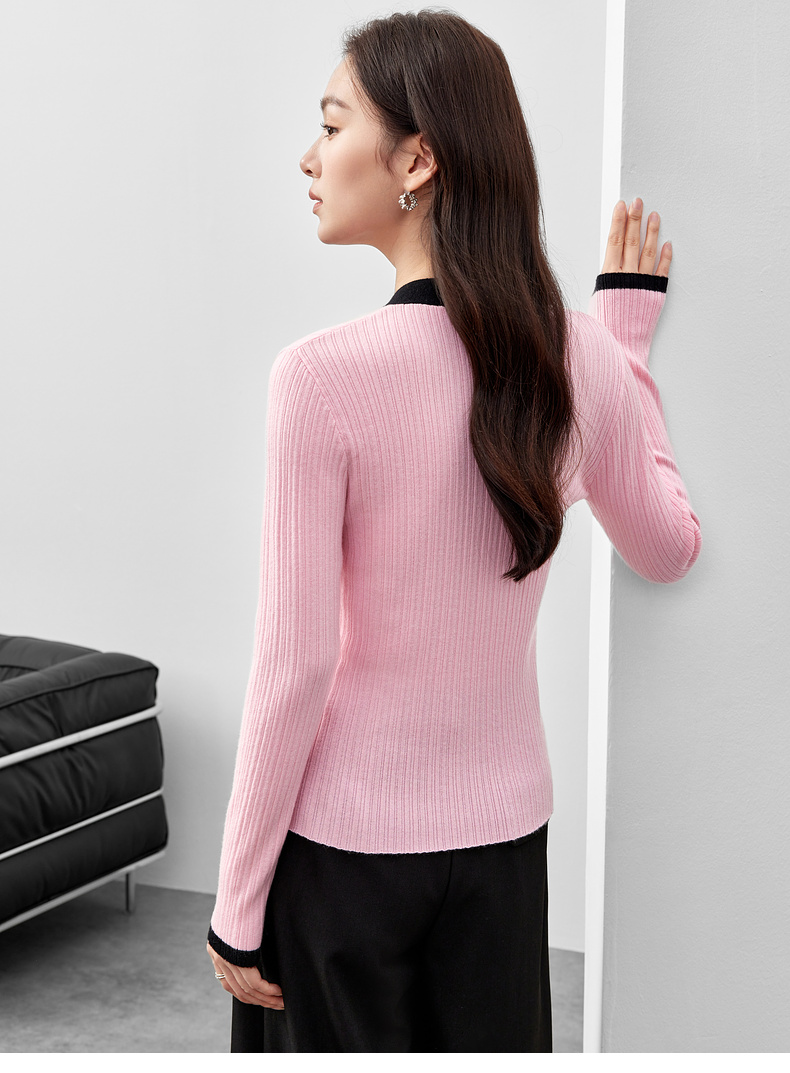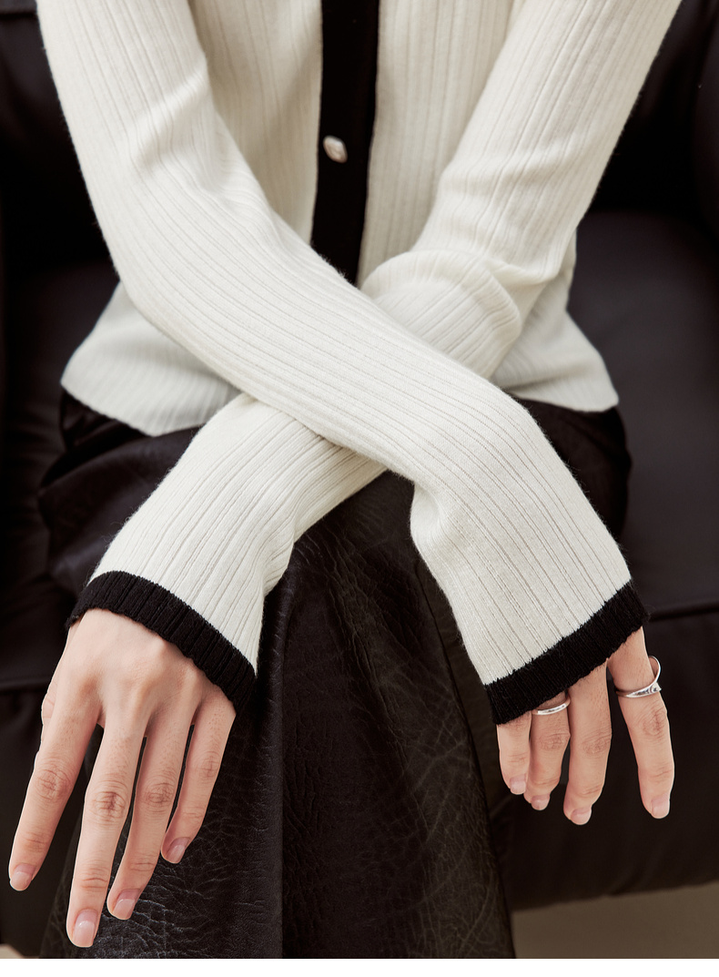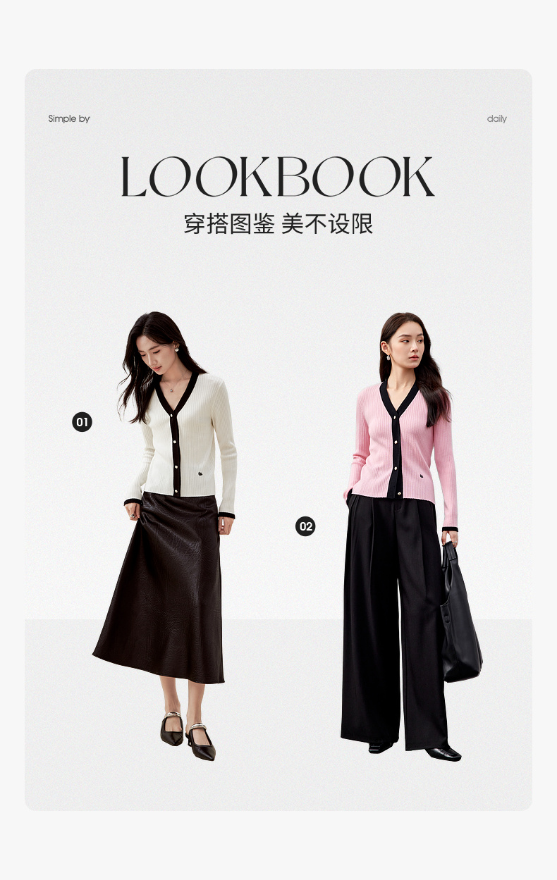 【内购】通勤轻奢撞色V领玫瑰刺绣含45支高原羊毛高弹修身显瘦毛针织开衫-W51H58341