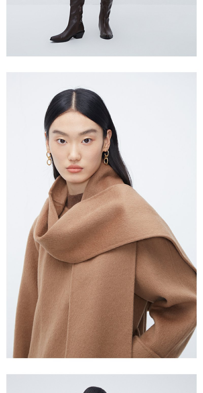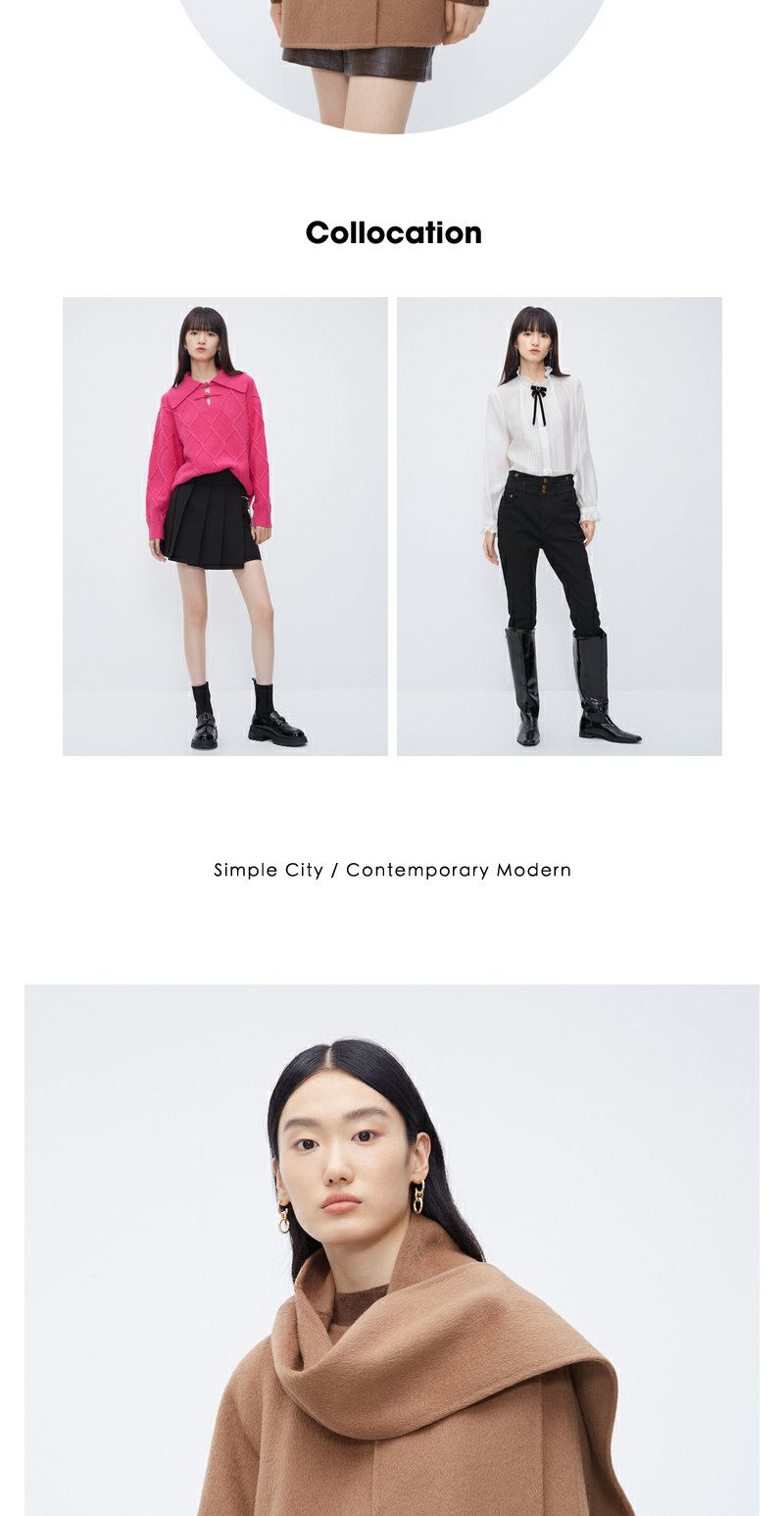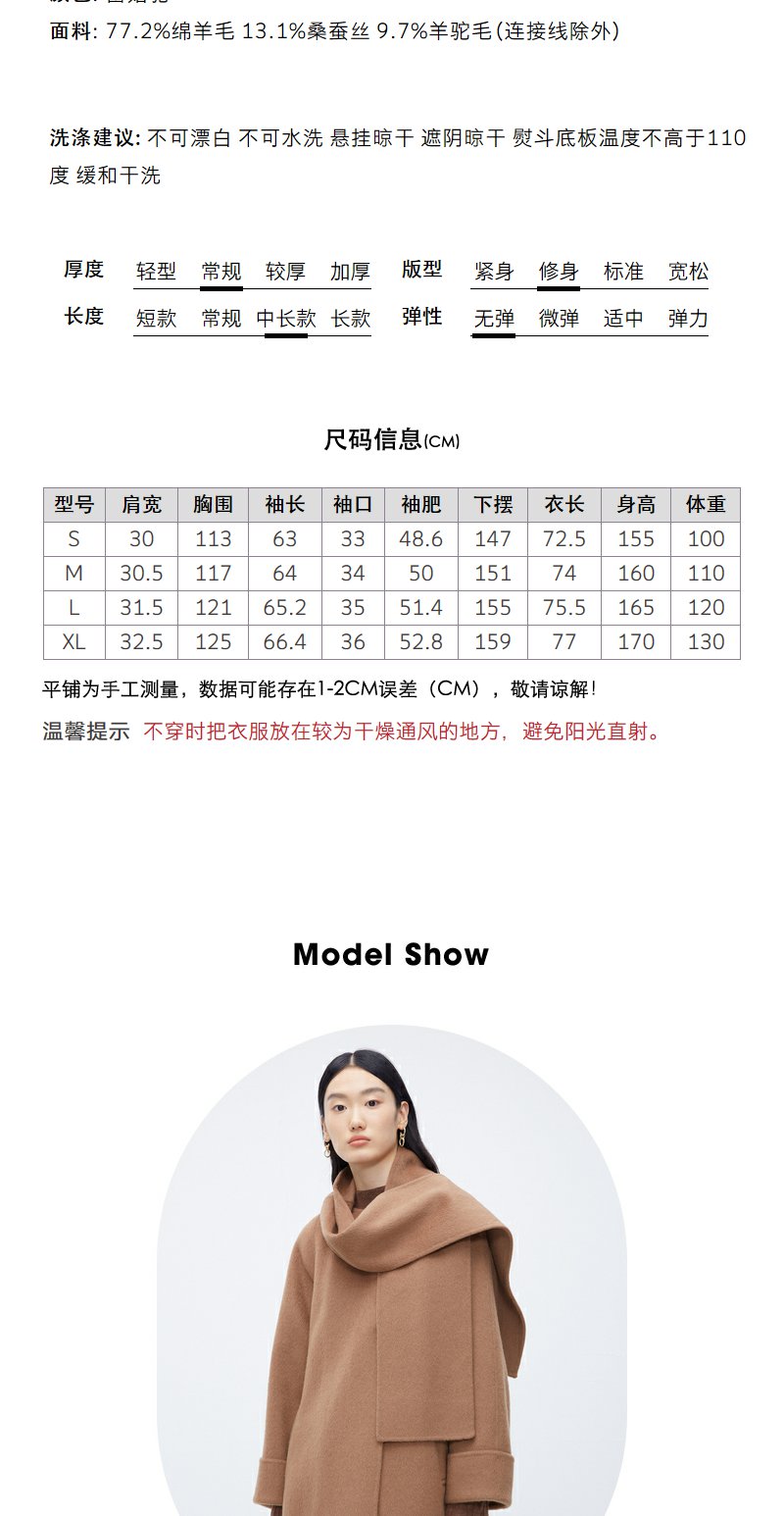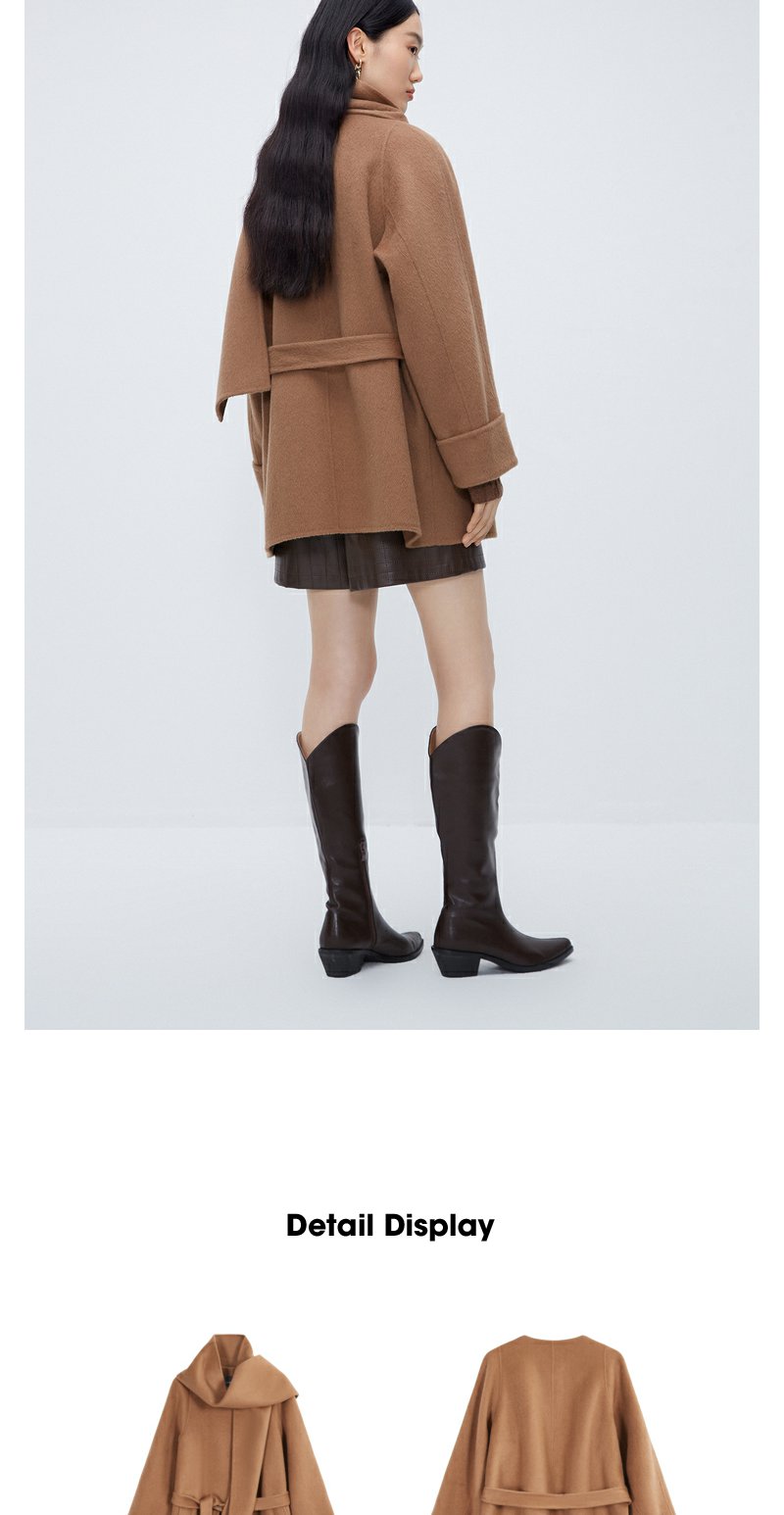 NEELLY纳俪商场同款可拆卸围巾领大衣女冬驼色短款双面呢羊毛外套N23105N01110