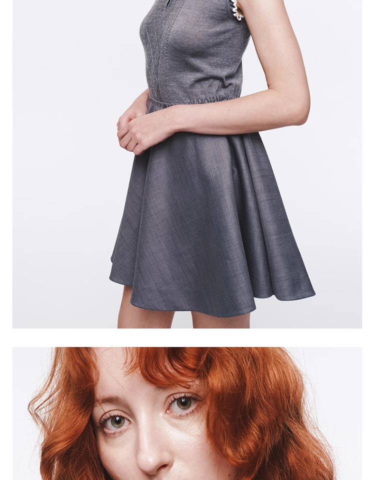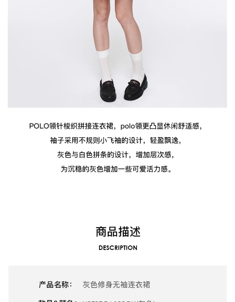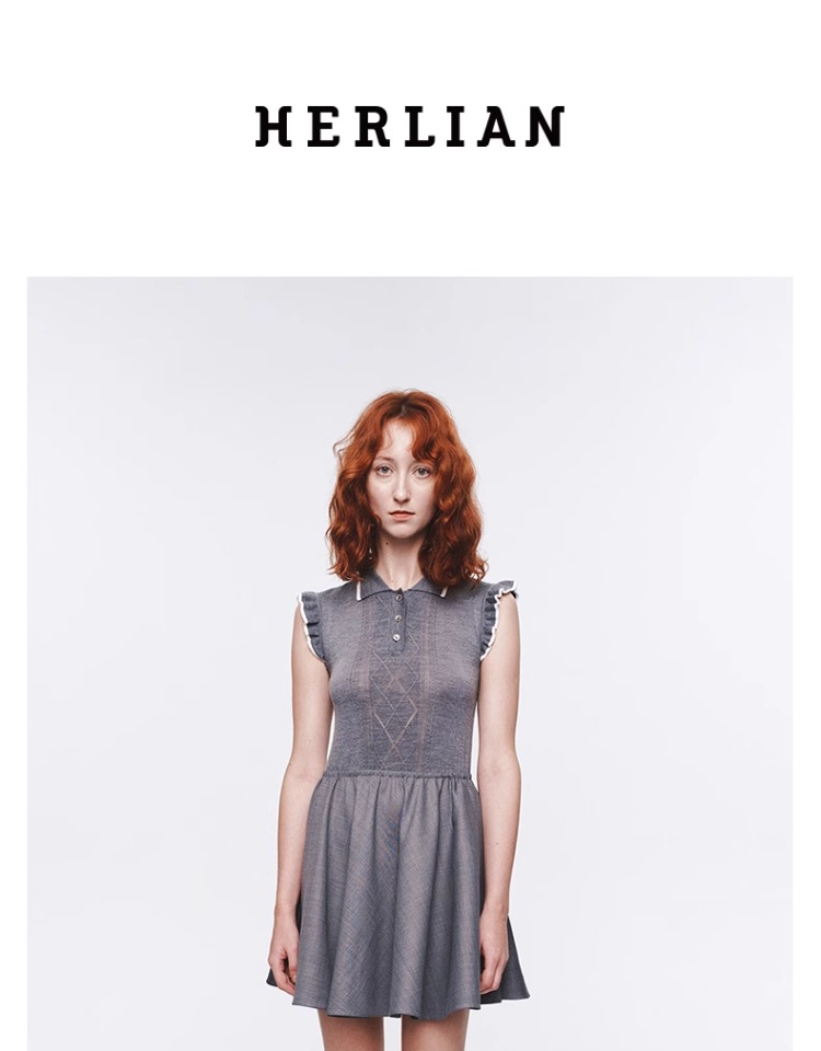 Herlian2025新品女士灰色修身无袖连衣裙Polo领