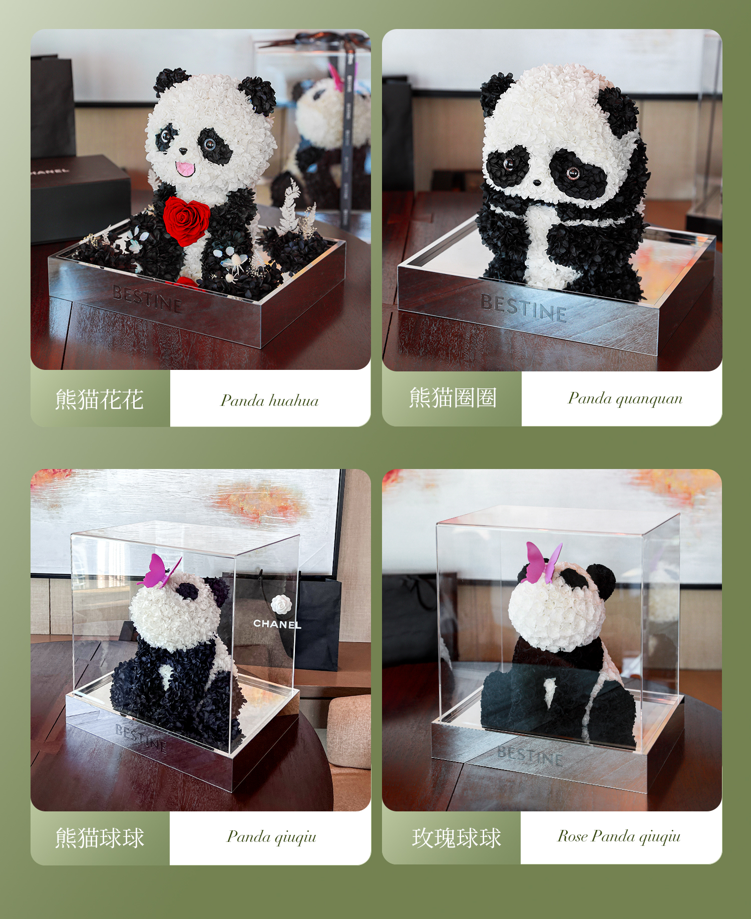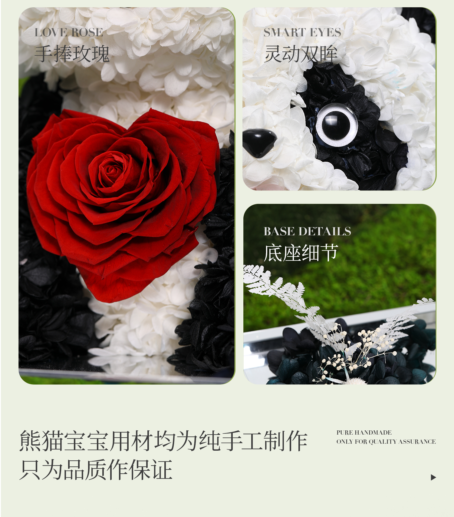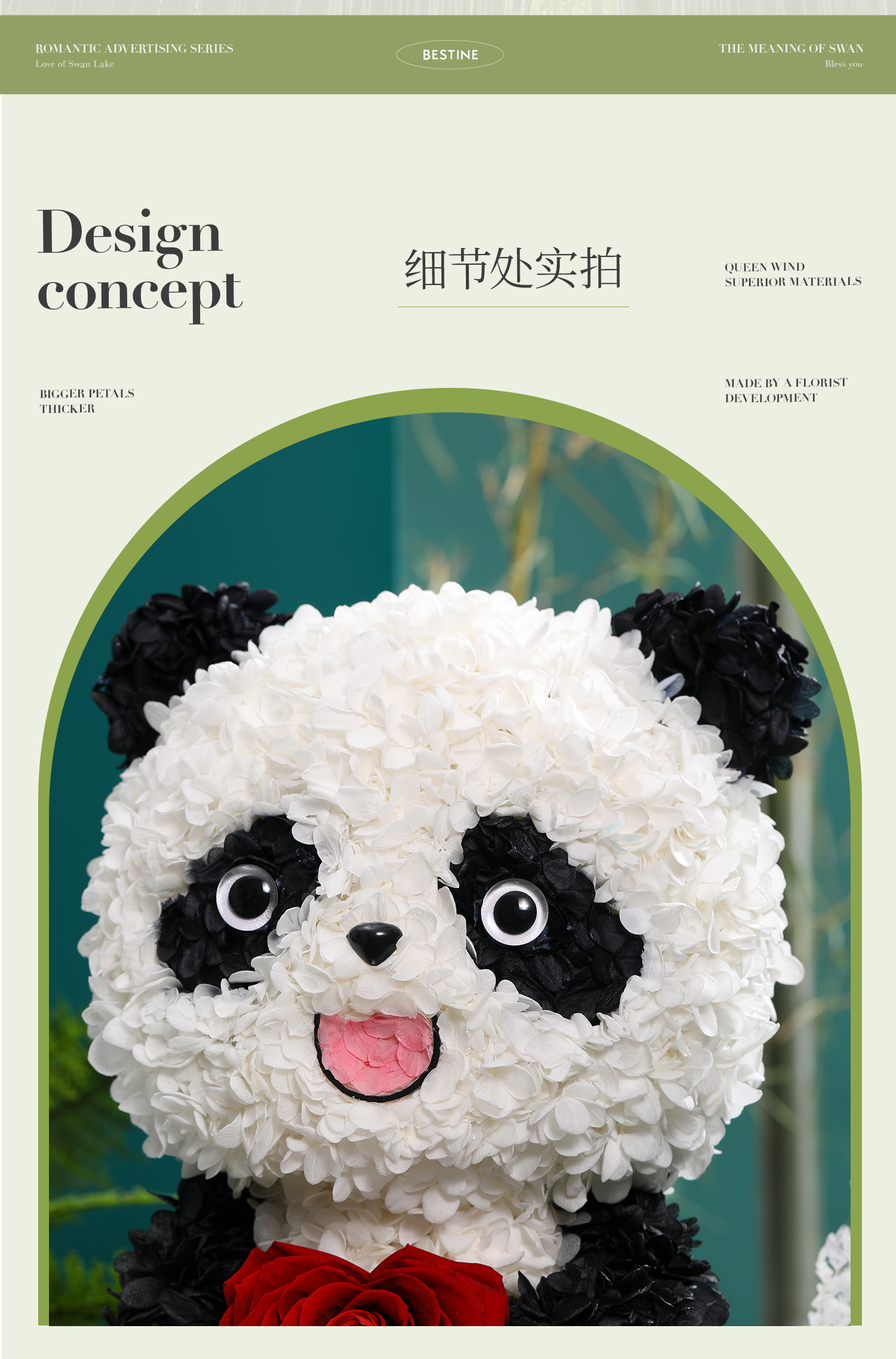 VBEINGS花语 永生花熊猫 玫瑰花绣球礼盒送男女友爱人表白生日礼物摆件