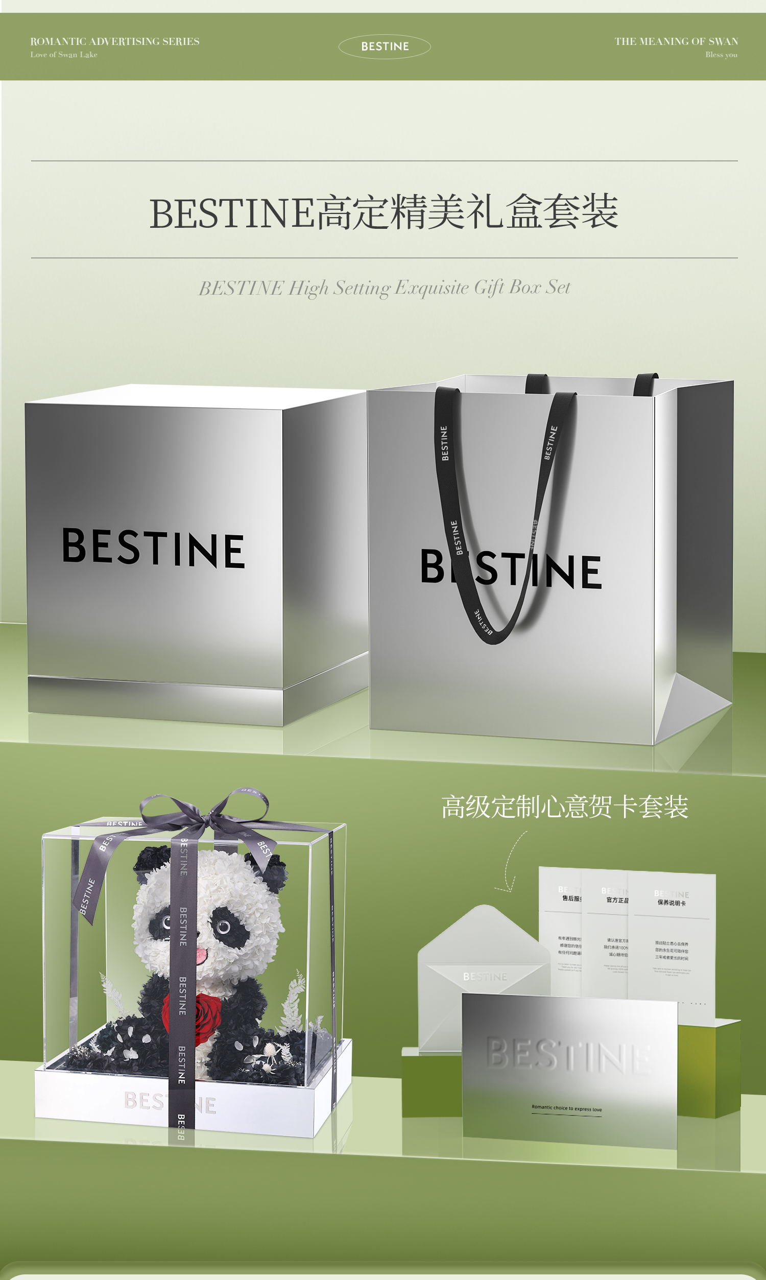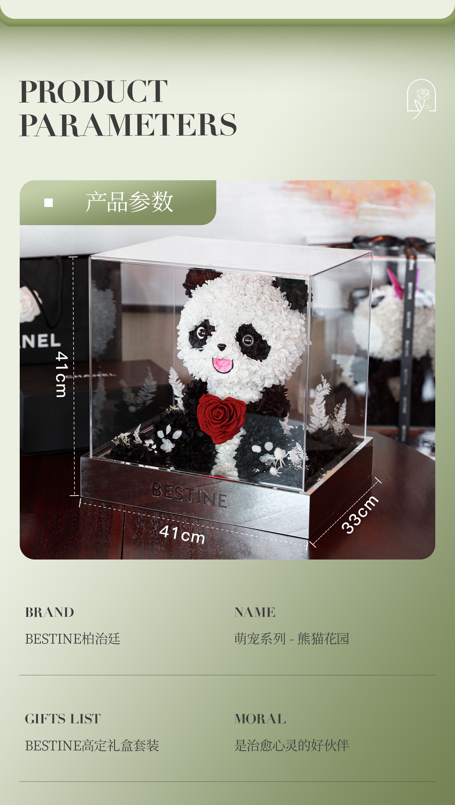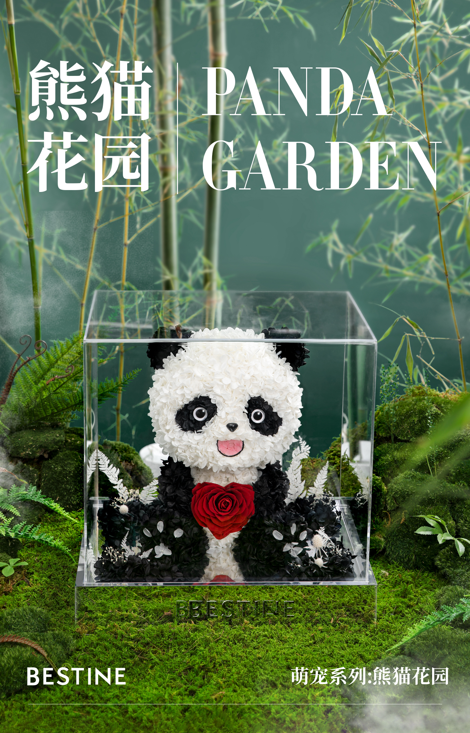 VBEINGS花语 永生花熊猫 玫瑰花绣球礼盒送男女友爱人表白生日礼物摆件