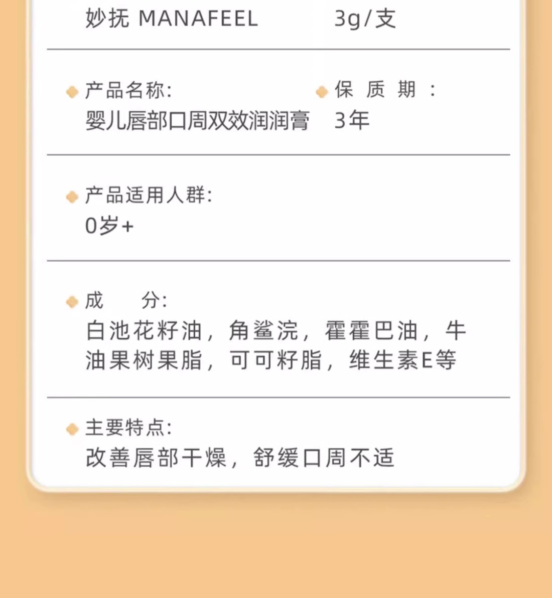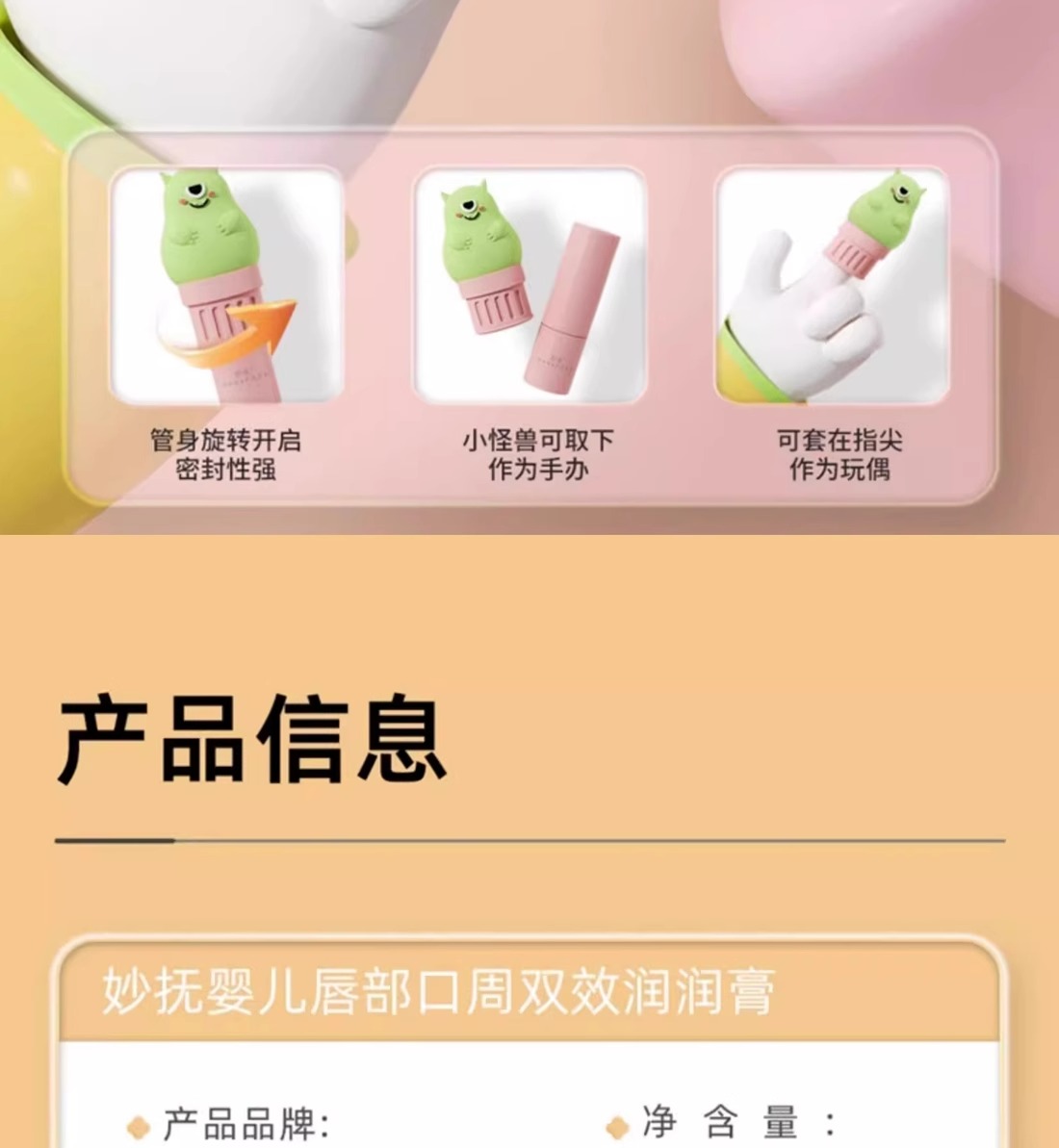 妙抚小怪兽婴儿唇部口周双效唇膏3g款式随机发(0岁+可用)