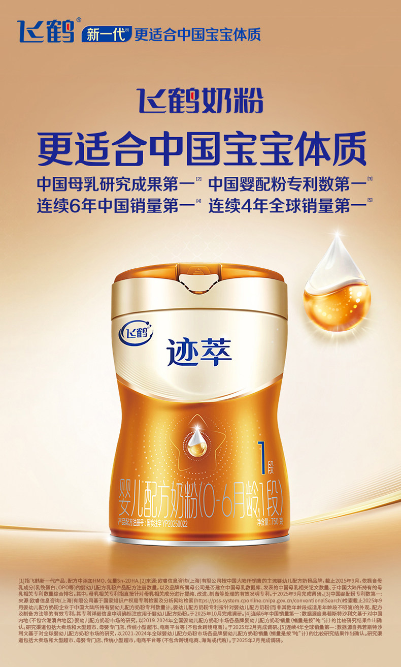 飞鹤迹萃婴儿配方奶粉听装1段750g
