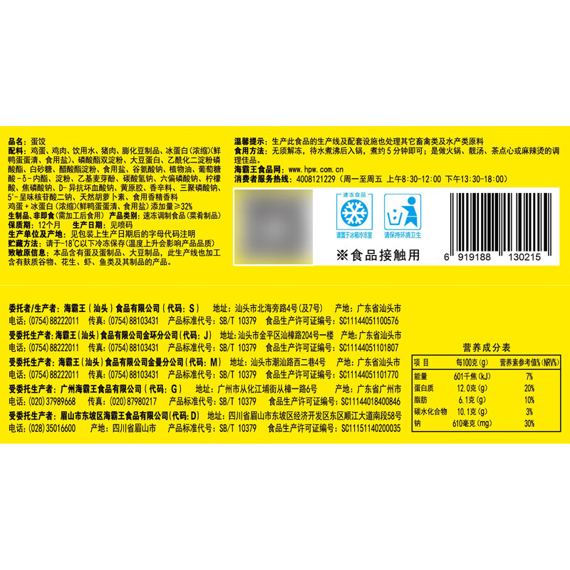 海霸王蛋饺138g