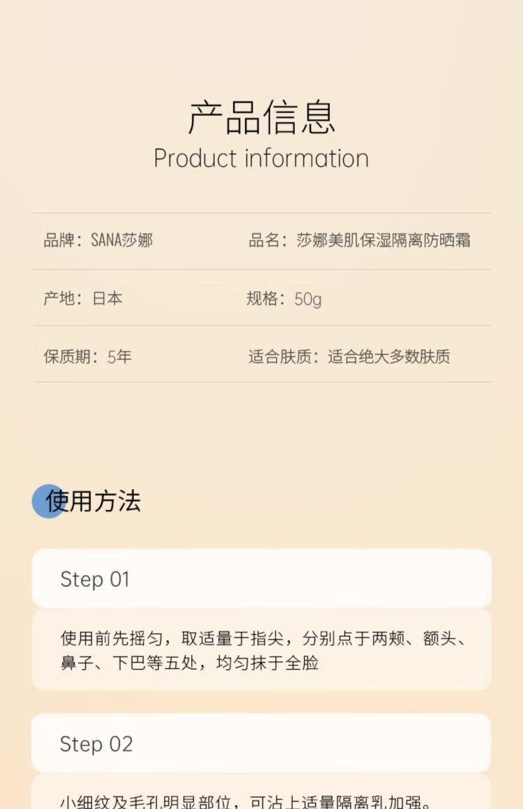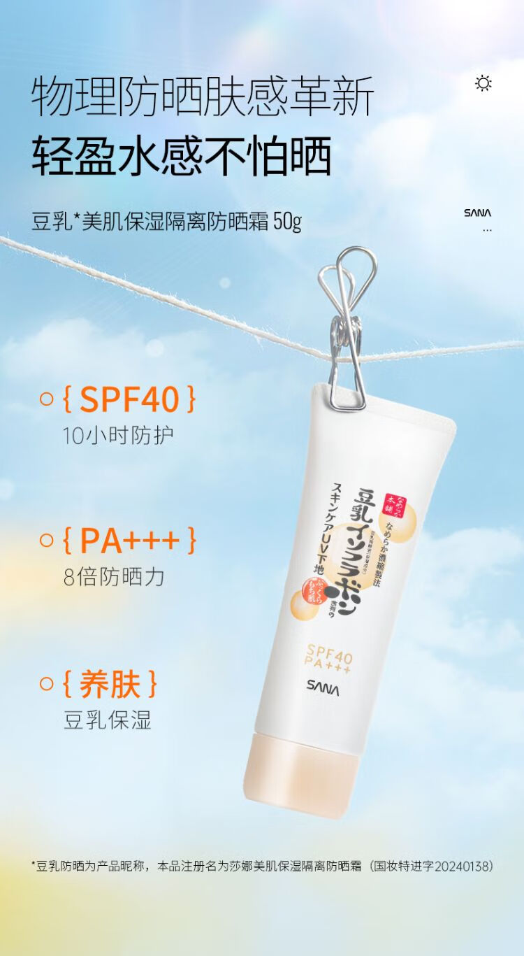 莎娜美肌保湿隔离防晒霜50g/瓶