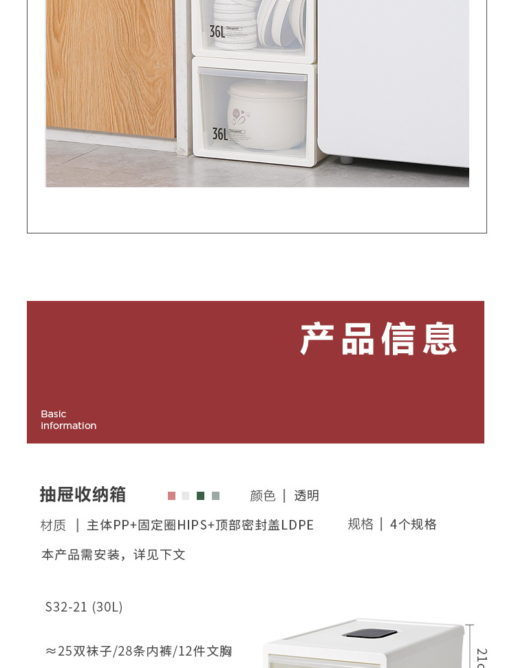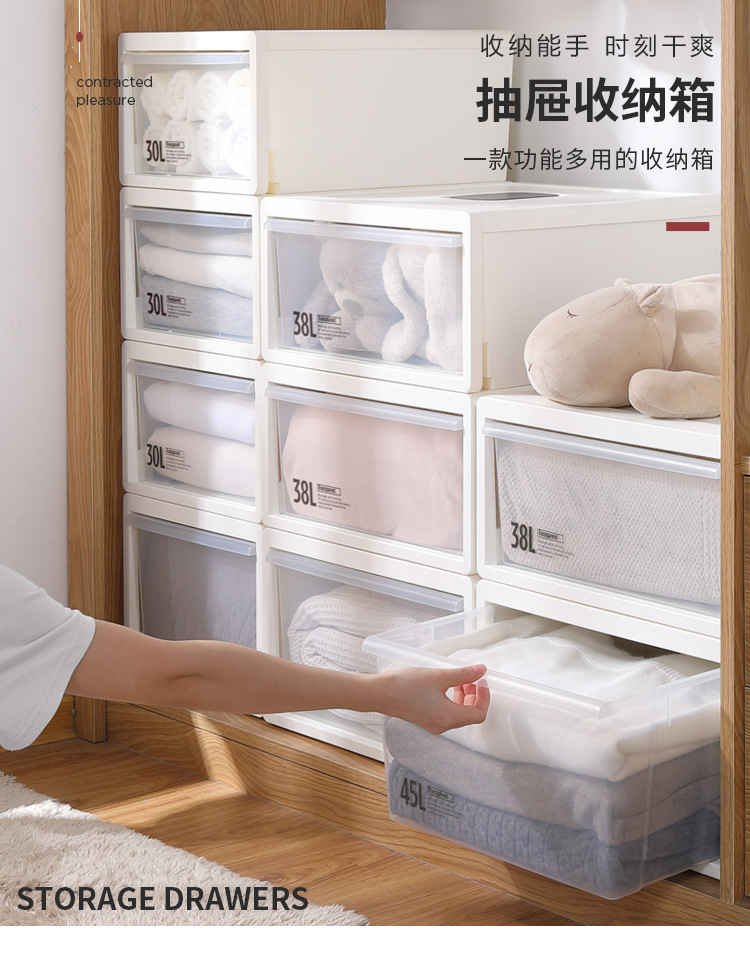 孙小美抽屉收纳箱抽屉式塑料家用透明衣物储物整理箱衣服收纳盒内衣收纳柜子