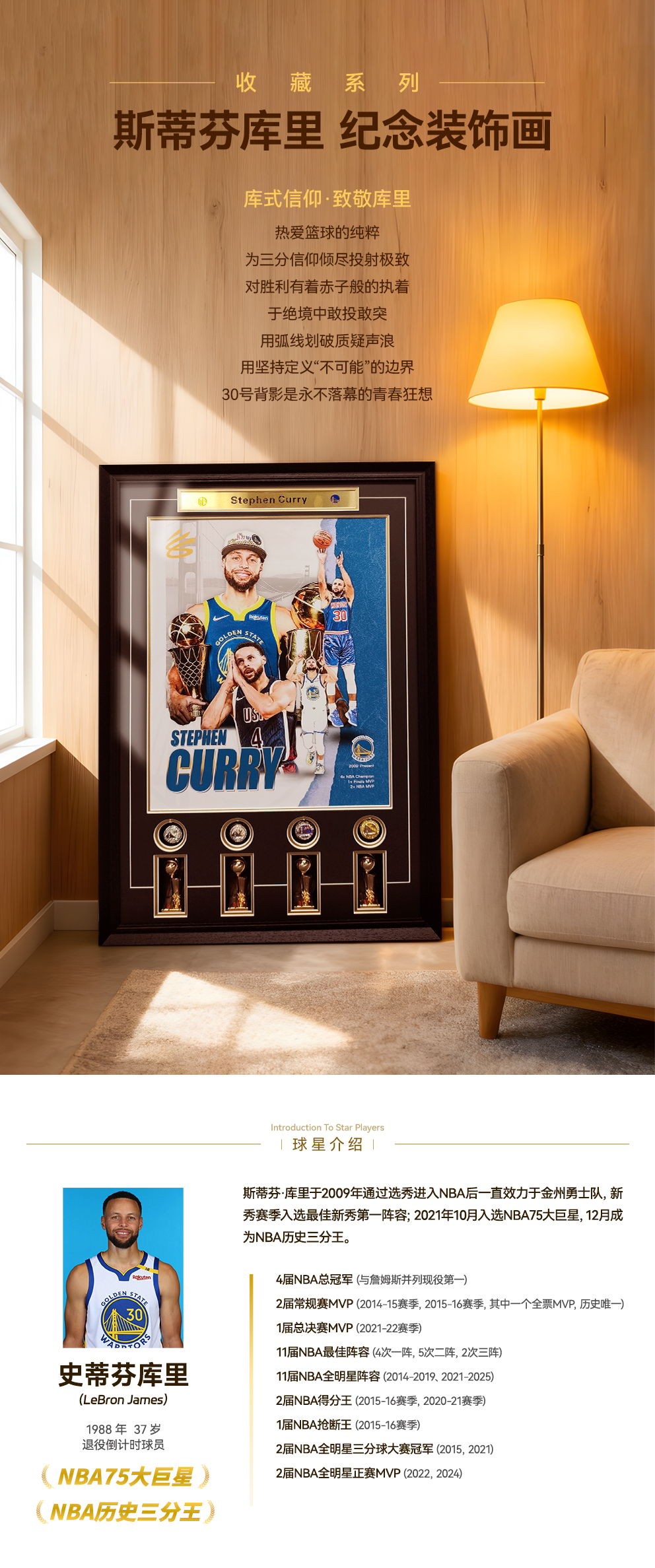 收藏系列 斯蒂芬库里 纪念装饰画 (非亲签)
