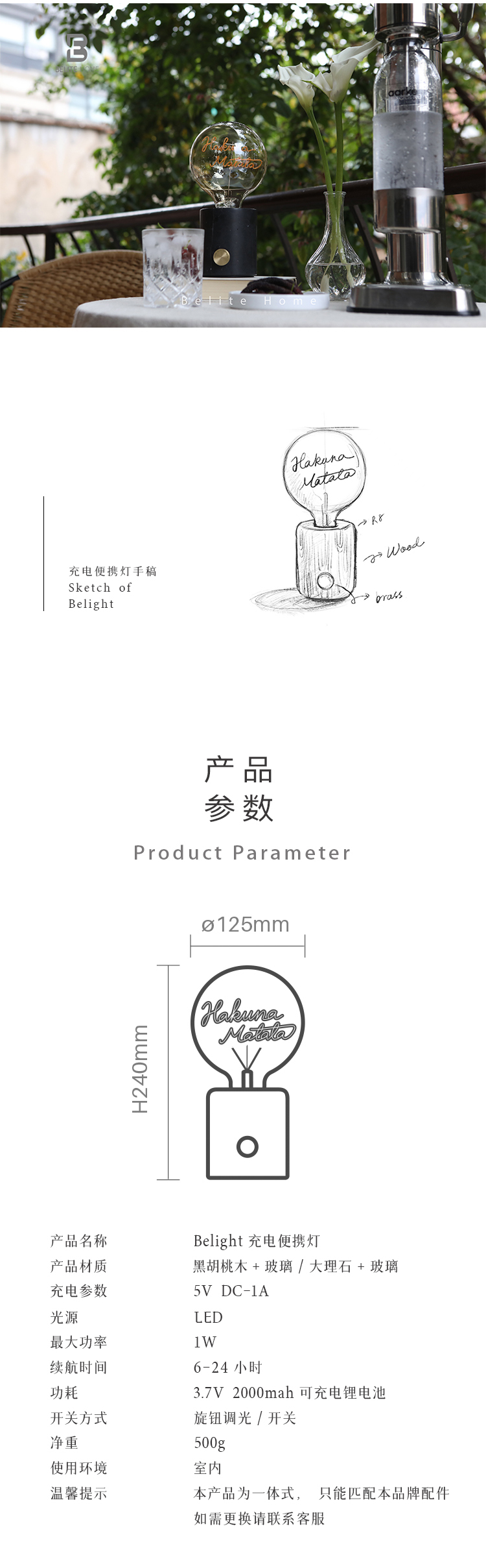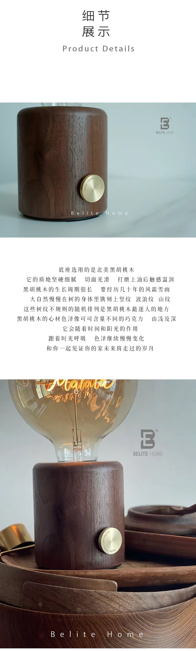 BELITE HOME 胡桃木礼盒装 充电便携台灯氛围灯家居摆件轻奢高端礼物