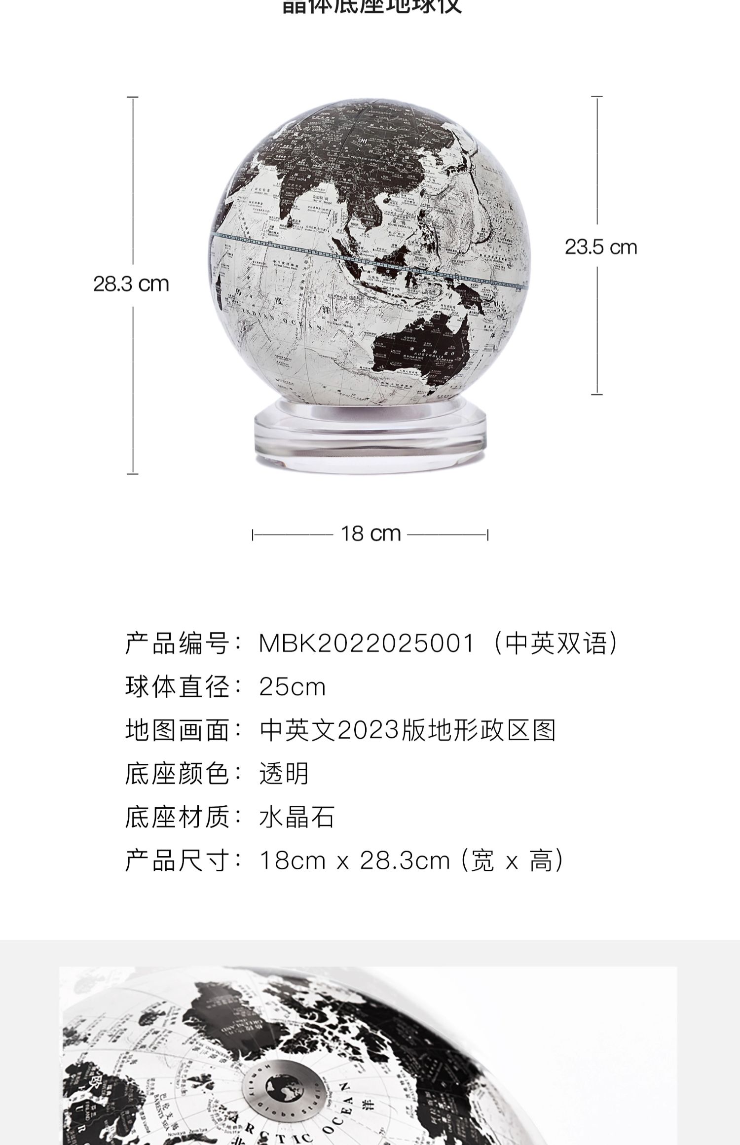 Homely Globe/宏微 水晶底座地球仪 25cm 地球仪客厅书房桌面装饰摆件生日节日礼物
