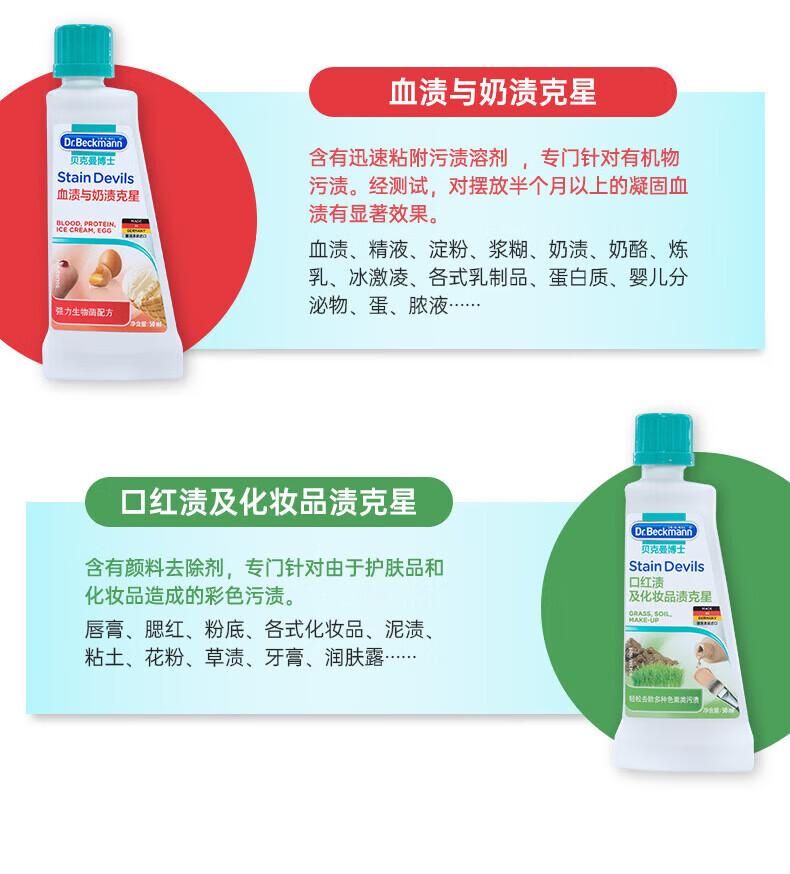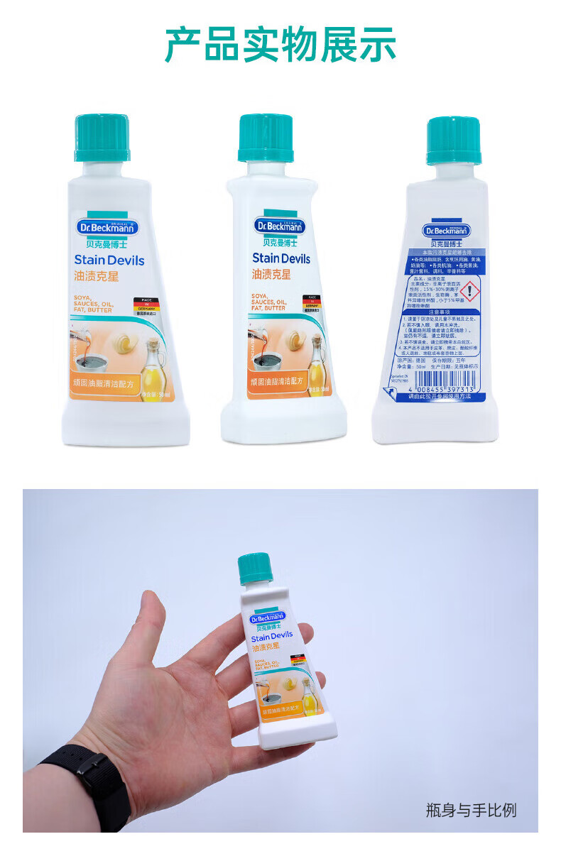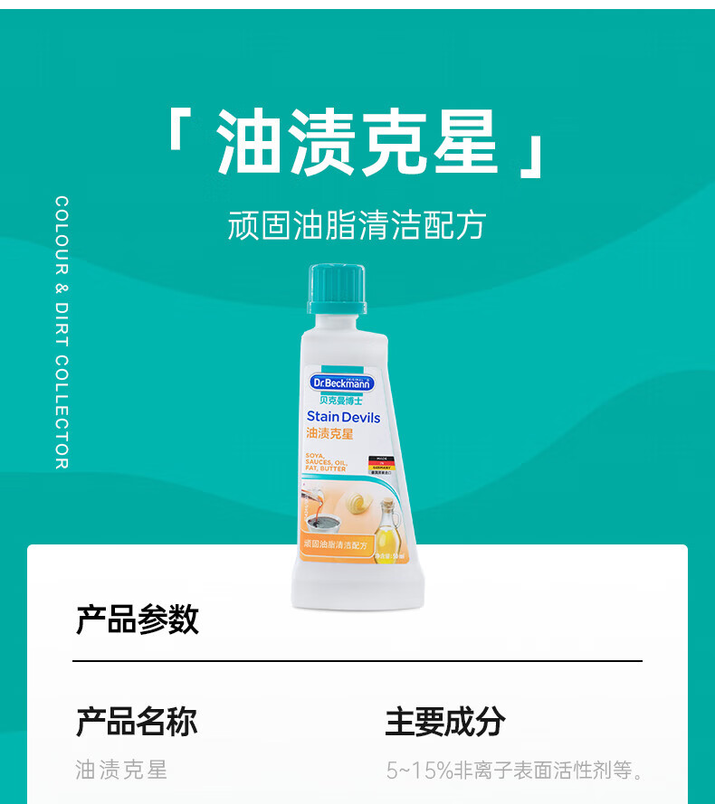 贝克曼油渍克星 衣物油脂污渍清洗剂 50ml