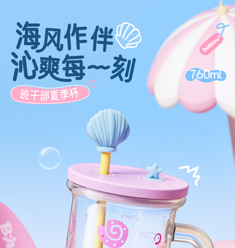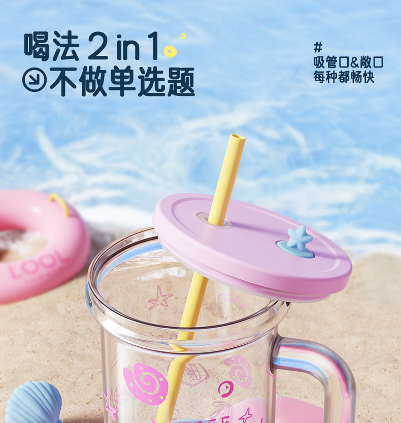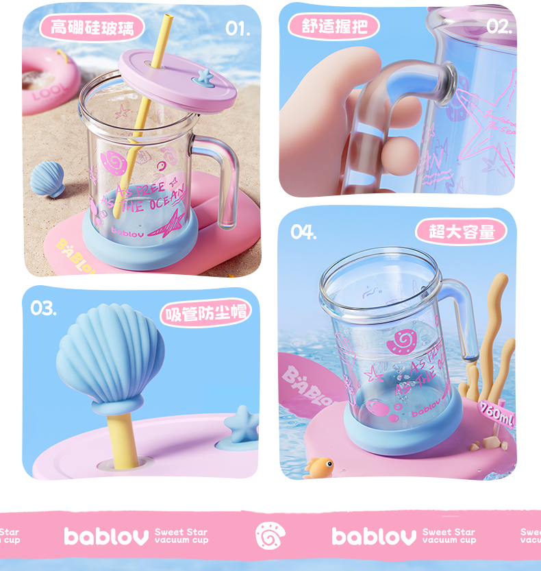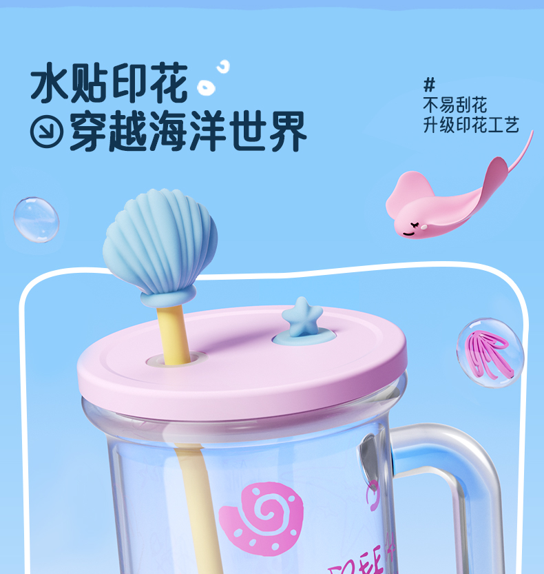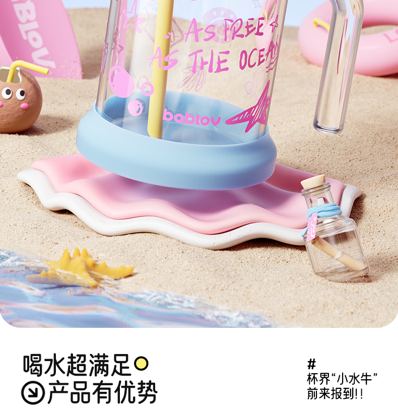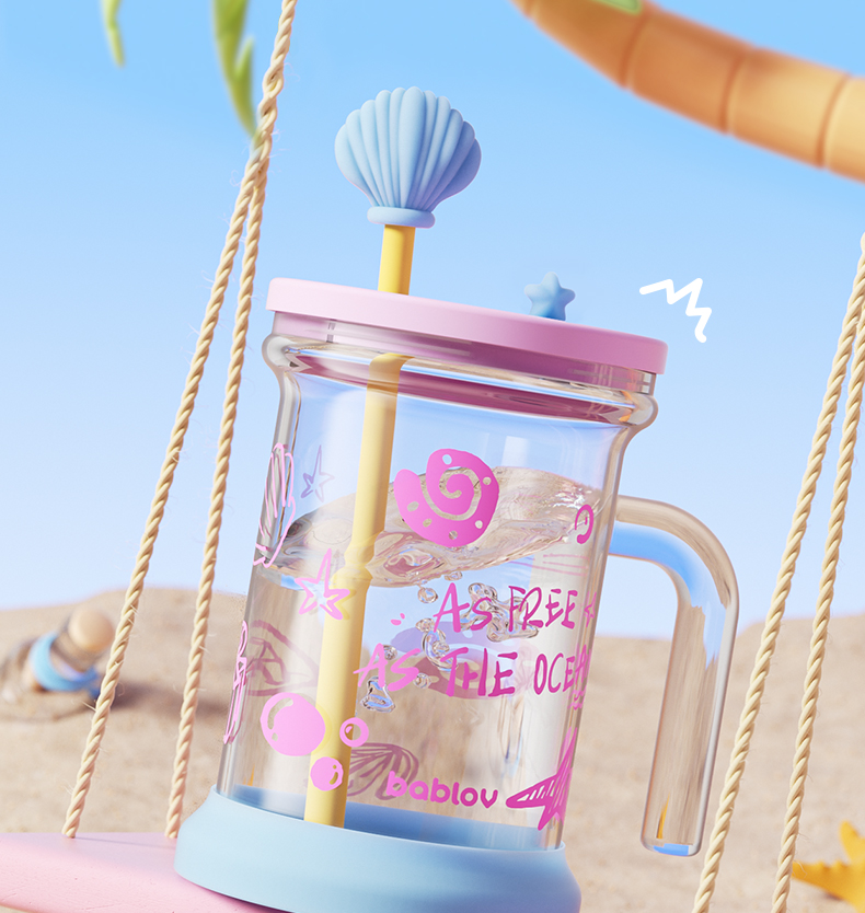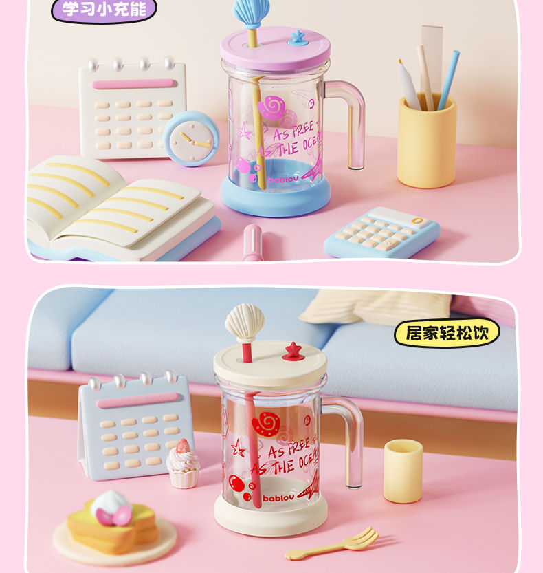 bablov玻璃杯女生高颜值家用杯子耐高温大容量办公室可爱吸管水杯