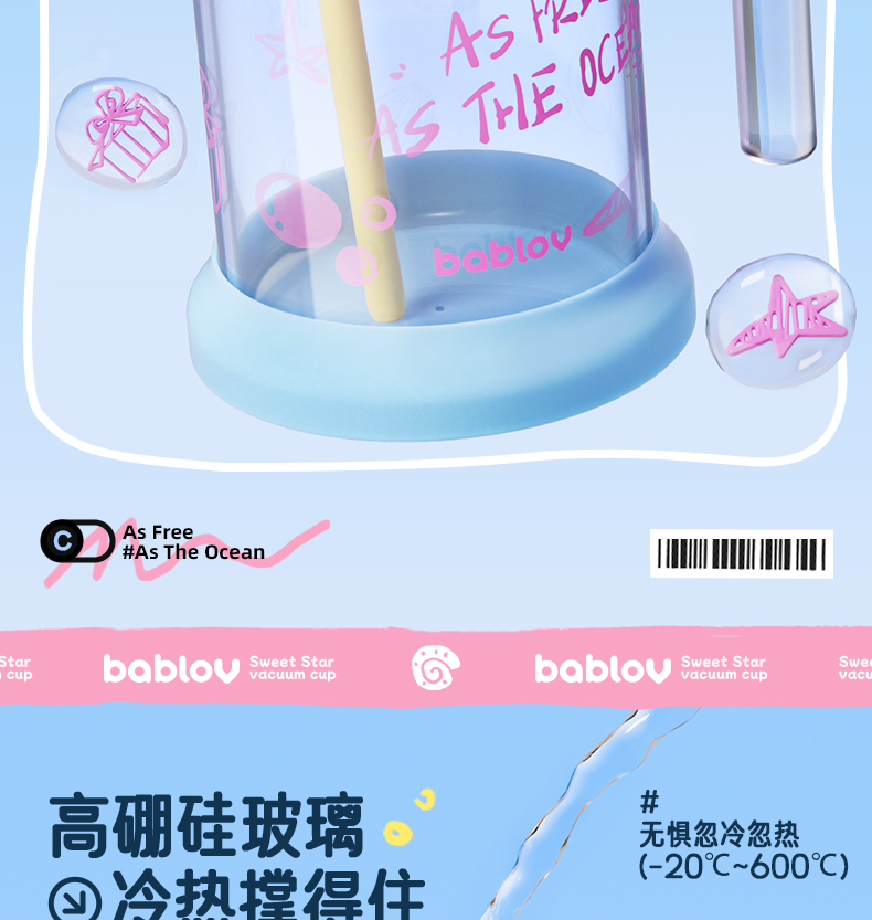 - BABLOV关注中国人的饮水健康,更不断探索未知可能性,专注于新生代自我个性表达,创造玩味新潮的产品体系。希望将水杯带入Z世代年轻人的生活,传递更多“饮”响力。