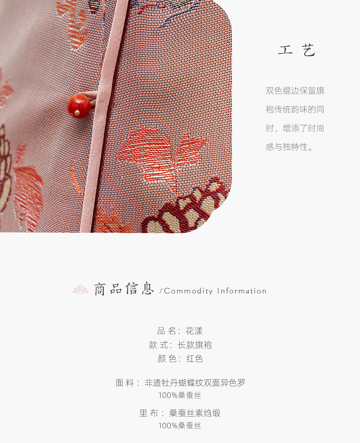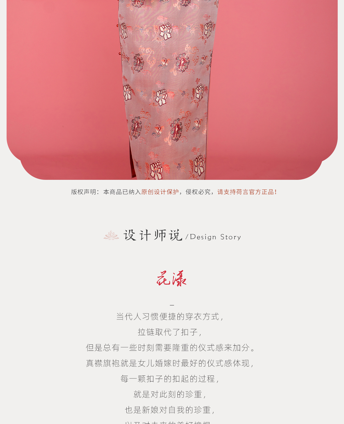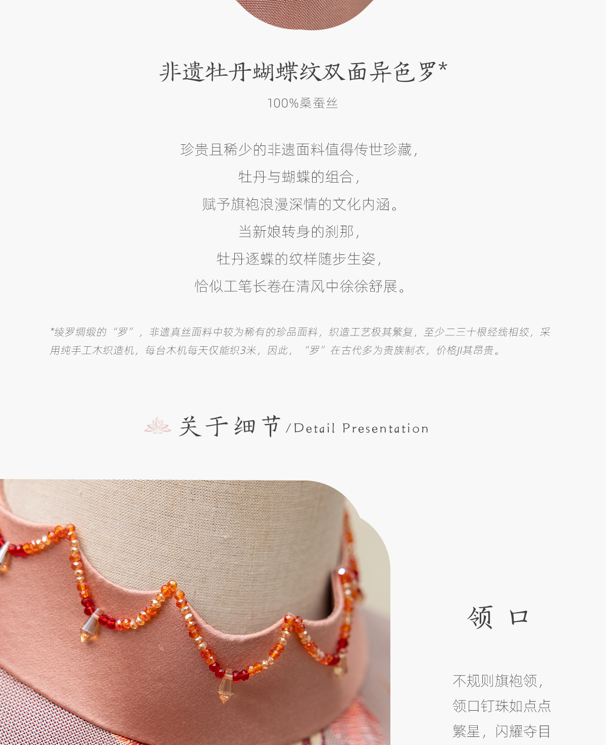 荷言HEYEN 花漾 非遗真丝牡丹纹双面异色罗新娘旗袍手工牡丹盘扣胸针高定系列