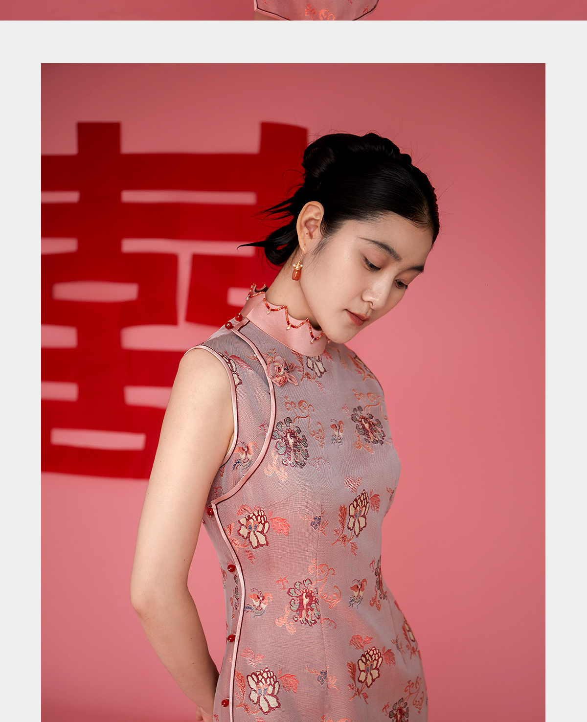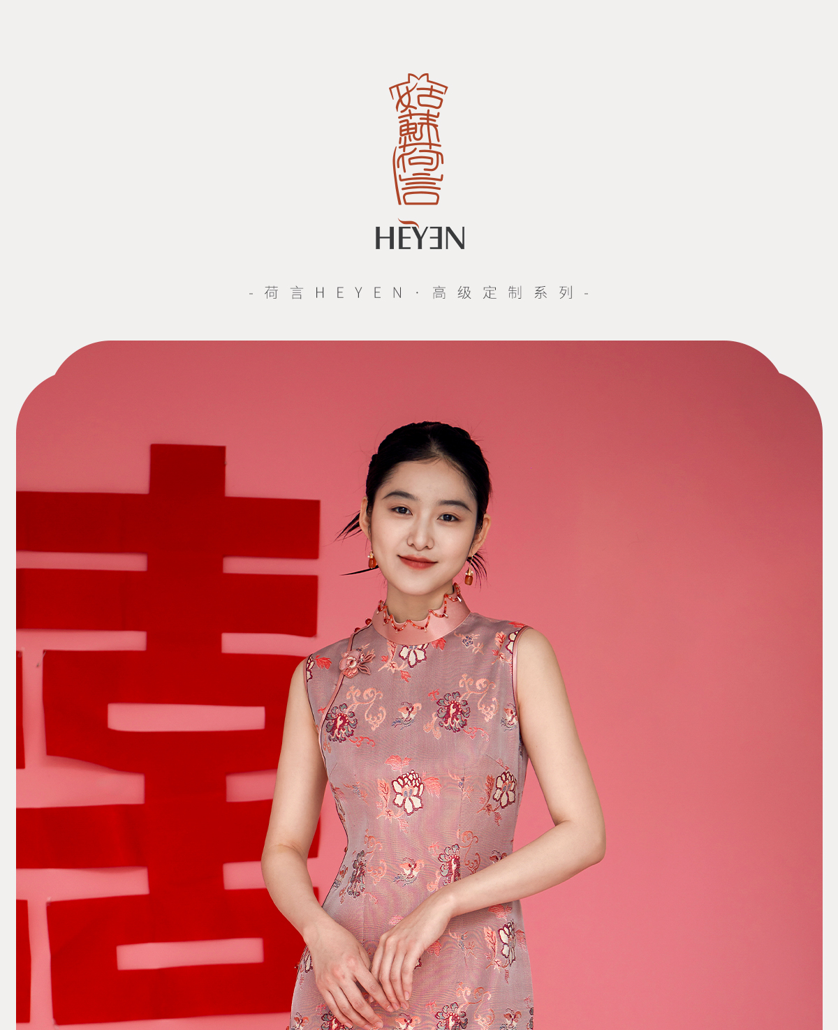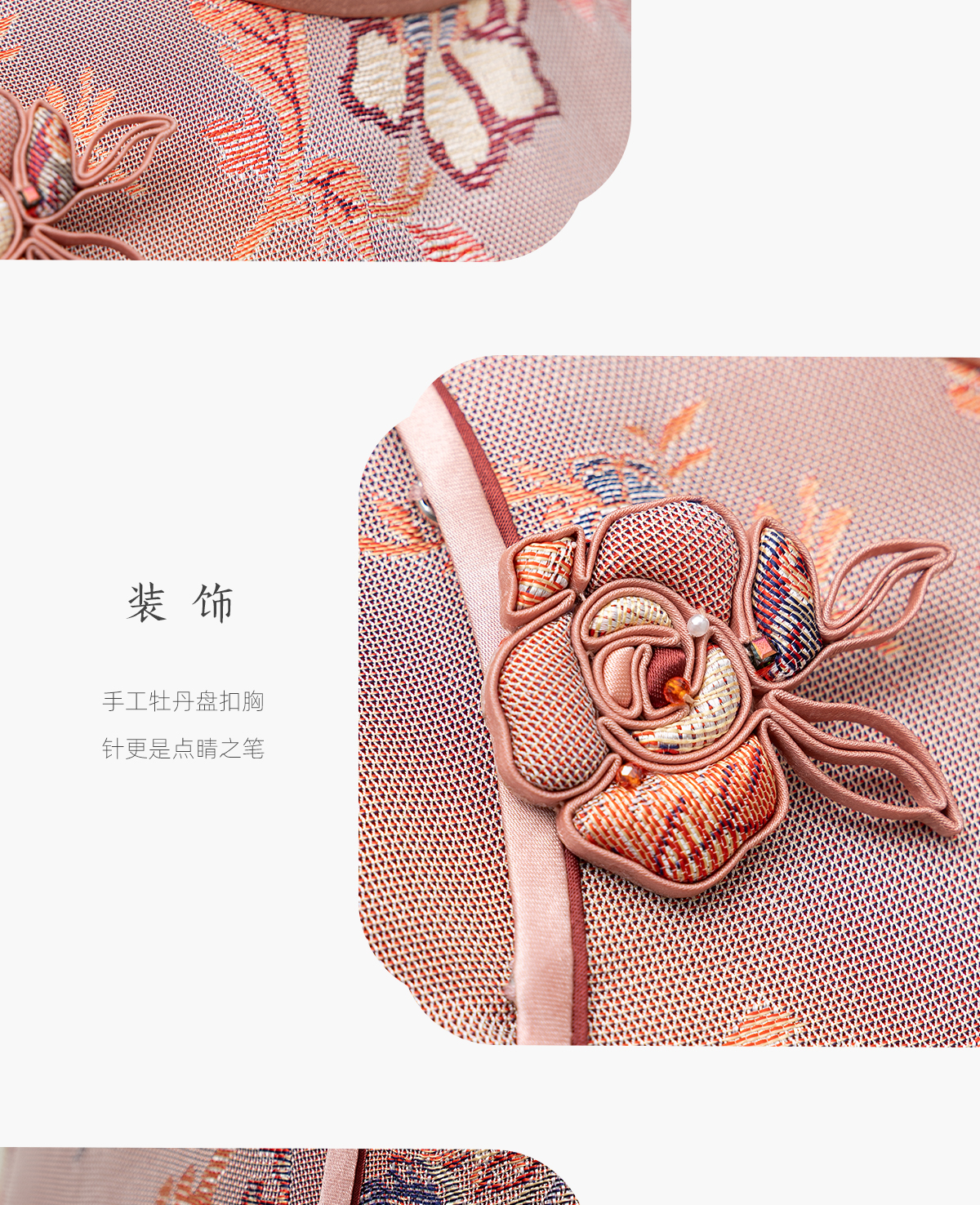 荷言HEYEN 花漾 非遗真丝牡丹纹双面异色罗新娘旗袍手工牡丹盘扣胸针高定系列