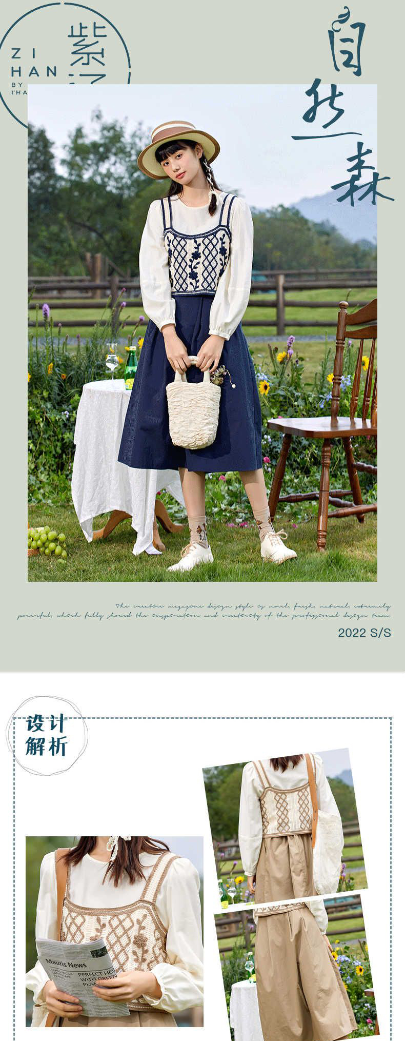 ZIHAN紫涵森系时尚裙子三件套女2022春新品针织背心纯色打底半身裙套装Z2Z01ZS523