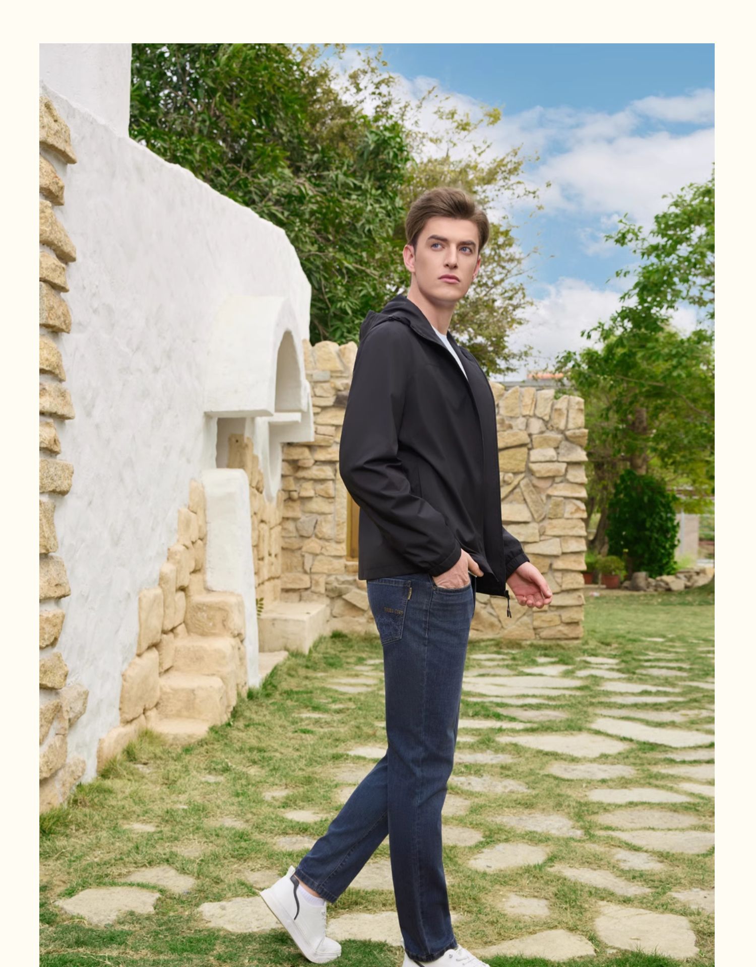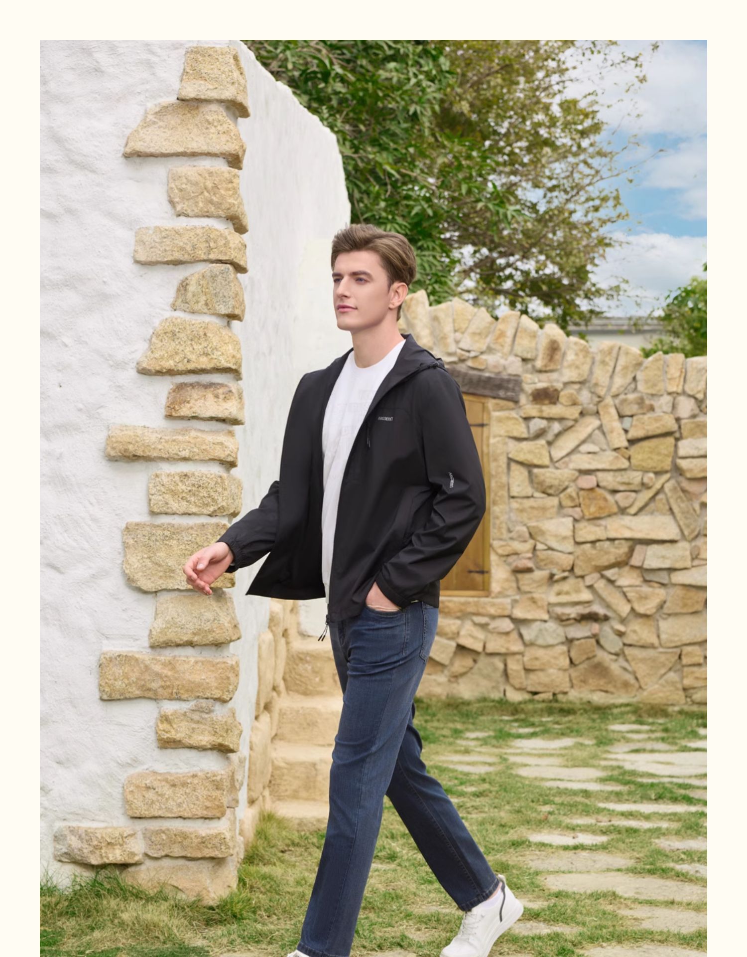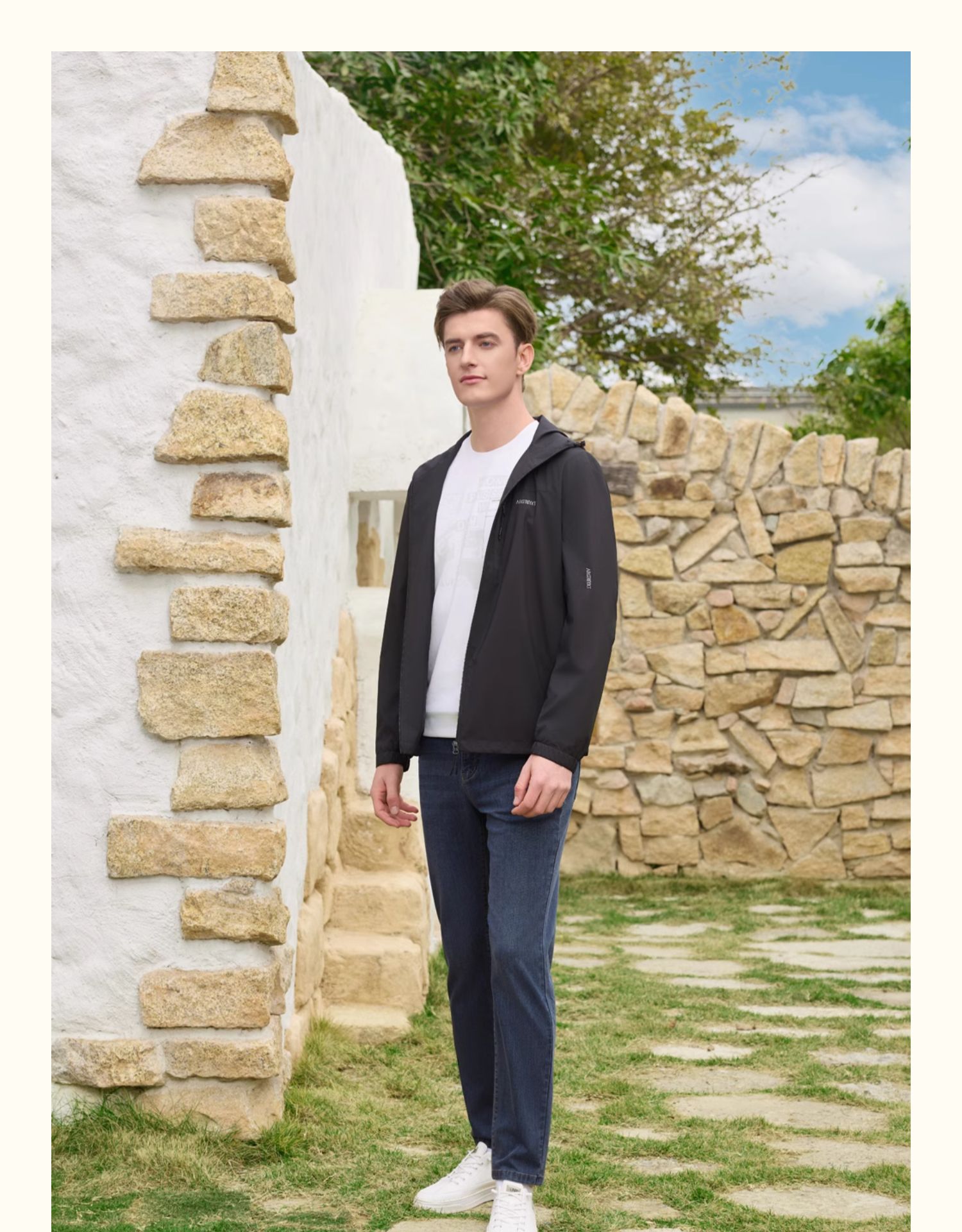 半身缘男装 秋季运动休闲黑色连帽夹克253112M01312032
